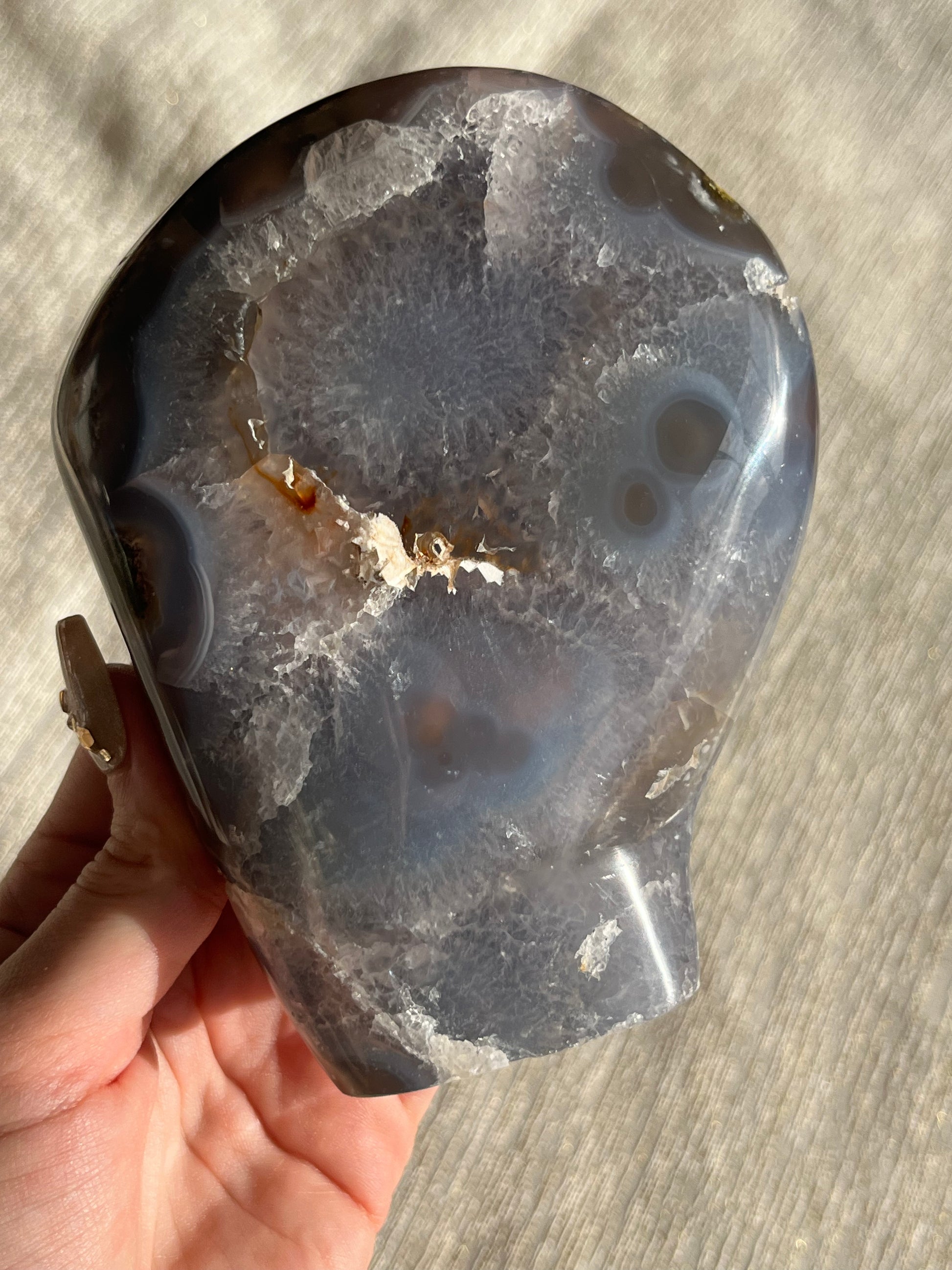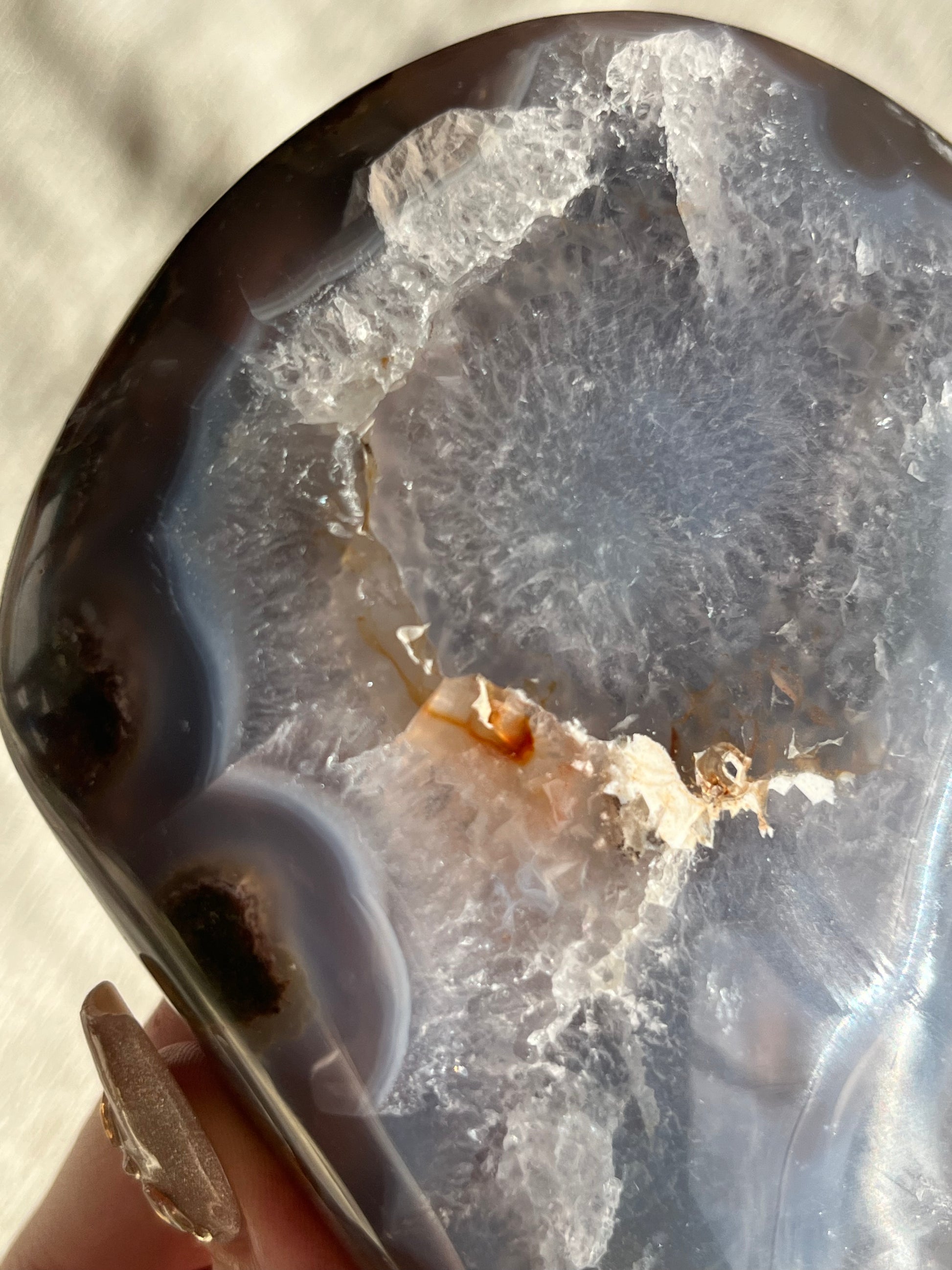 Nebula Agate introduces calm into your energetic field. In this calm state, you can self introspect in order to find out what it is that you really desire. With a regulated nervous system, you open yourself up to new possibilities and feel safe to explore your heart’s true passions.