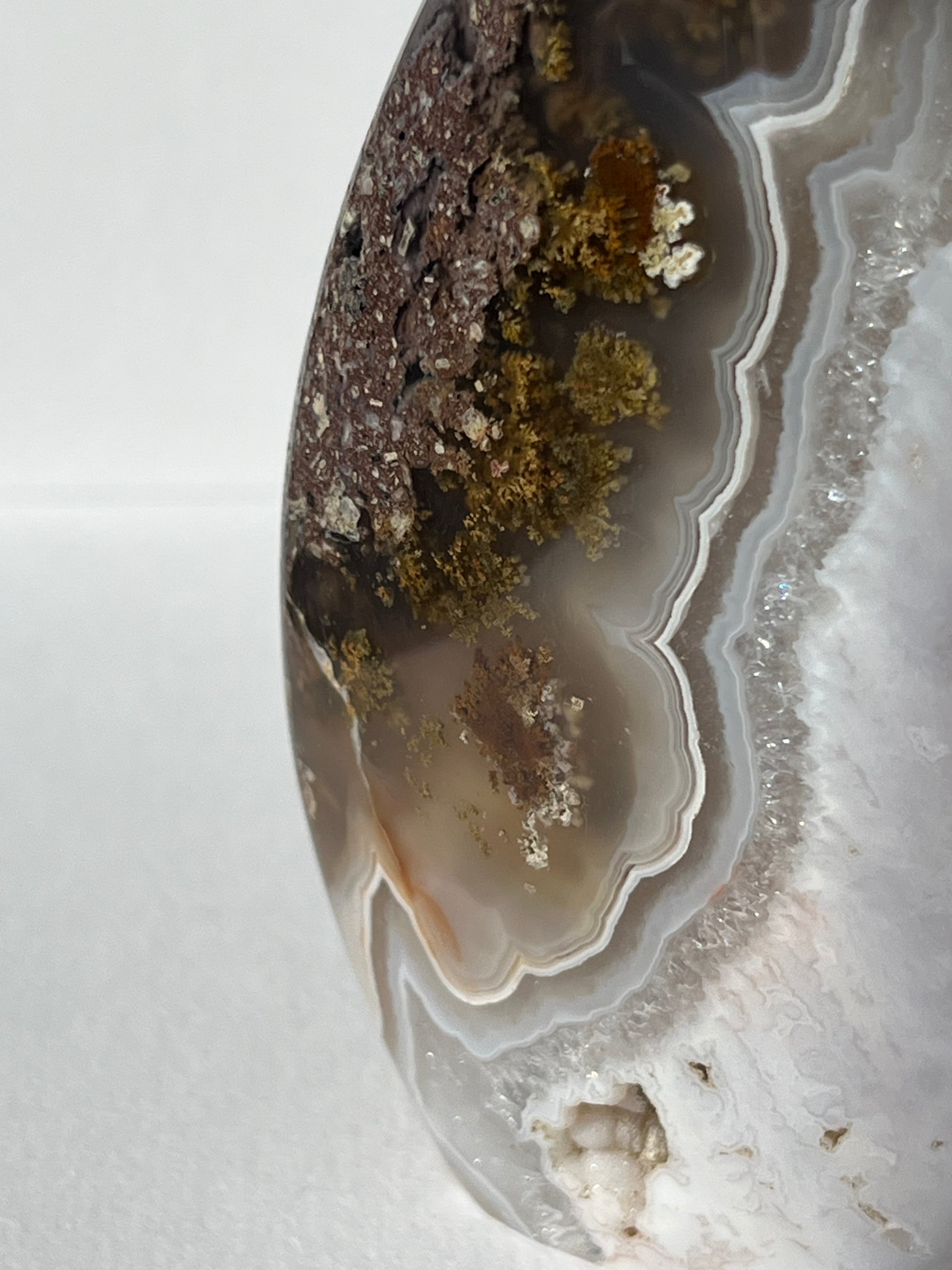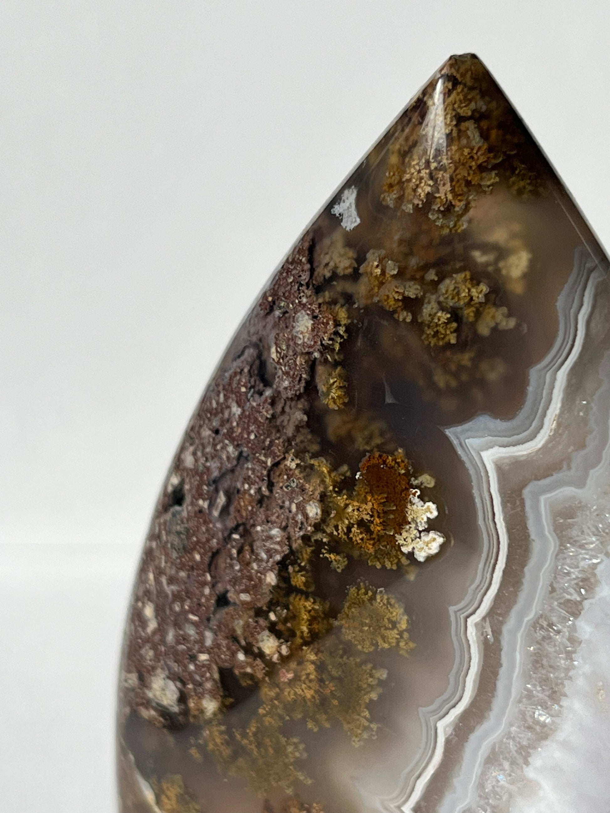Nebula Agate is a recent find from Indonesia first named by the founders of Priestess Crystals. With enchanting multicoloured moss and orbicular agate rings that pierce through translucent chalcedony.
