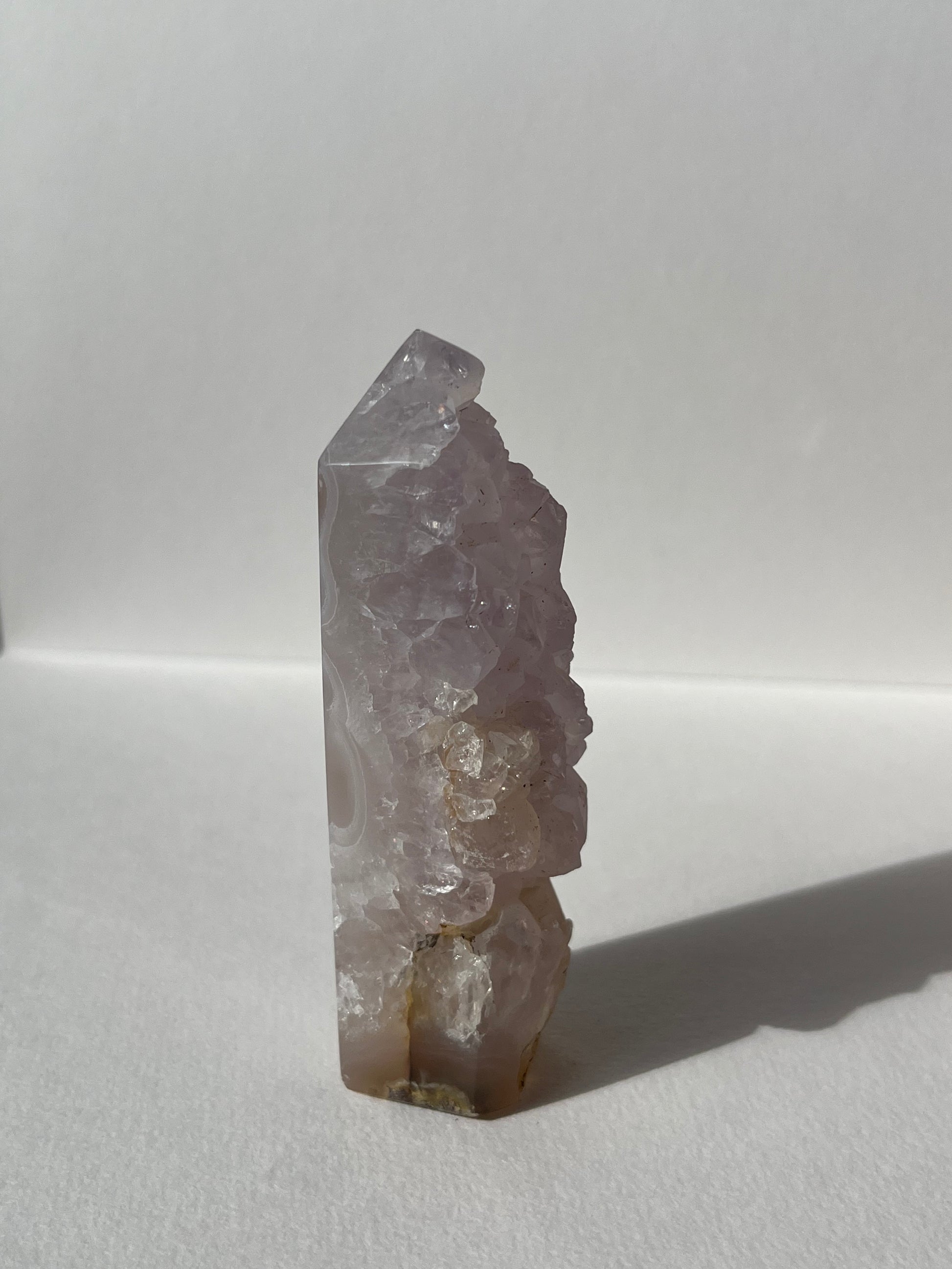 Orbicular Nebula Agate with Amethyst Geode and Dendrites Tower A