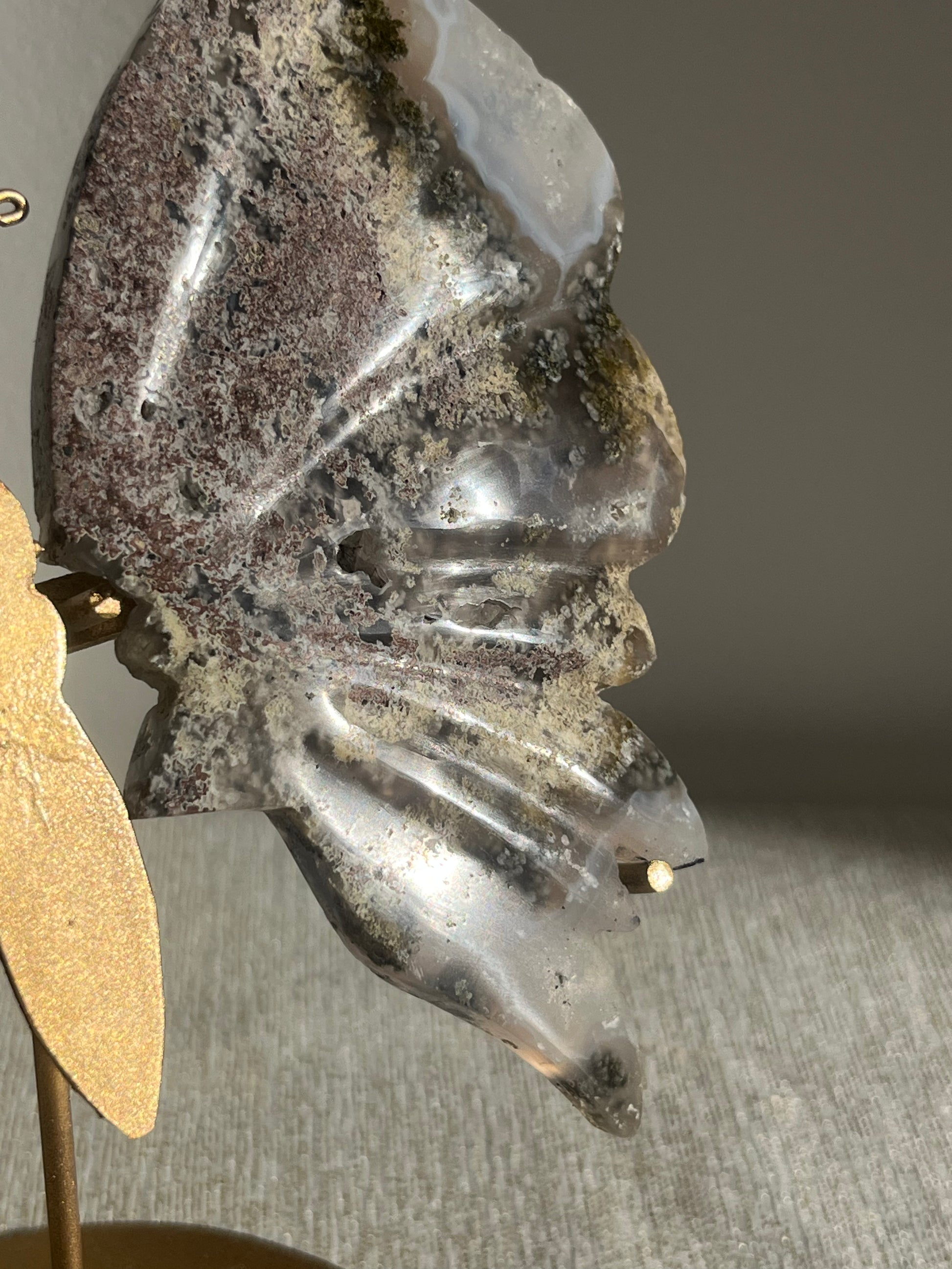 Nebula Agate with Scenic Moss Butterfly Wings on Stand C