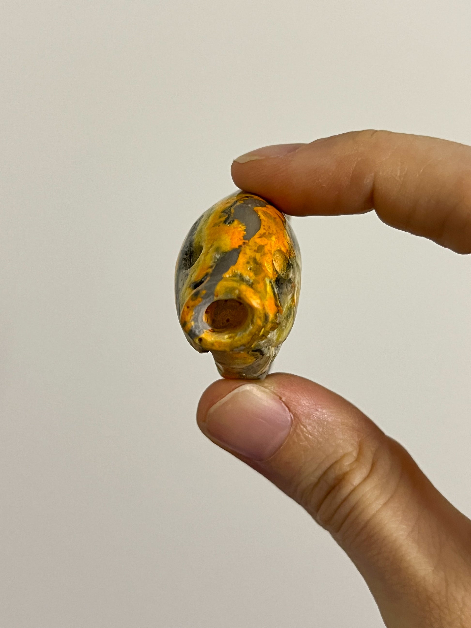 Bumblebee Jasper is formed as a result of volcanic activity in Mt Papandayan, Indonesia. The botryoidal formation (this polished orbicular piece) is old vein material which can be hard to come by. Very much a collector’s piece.
