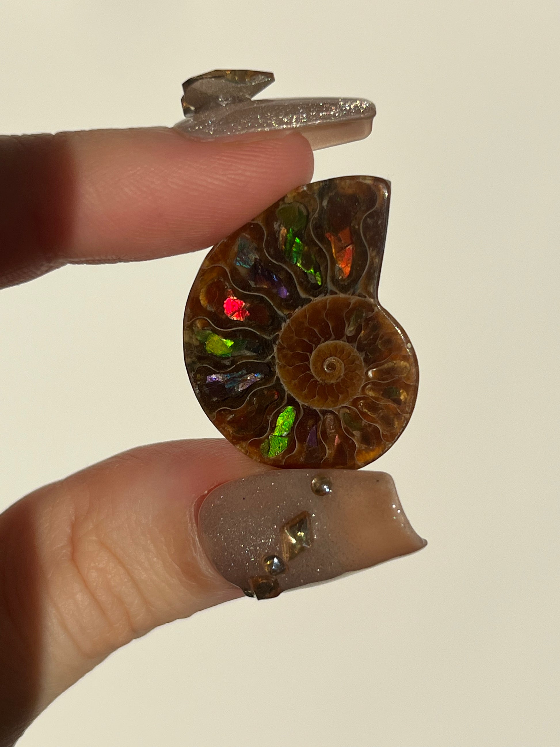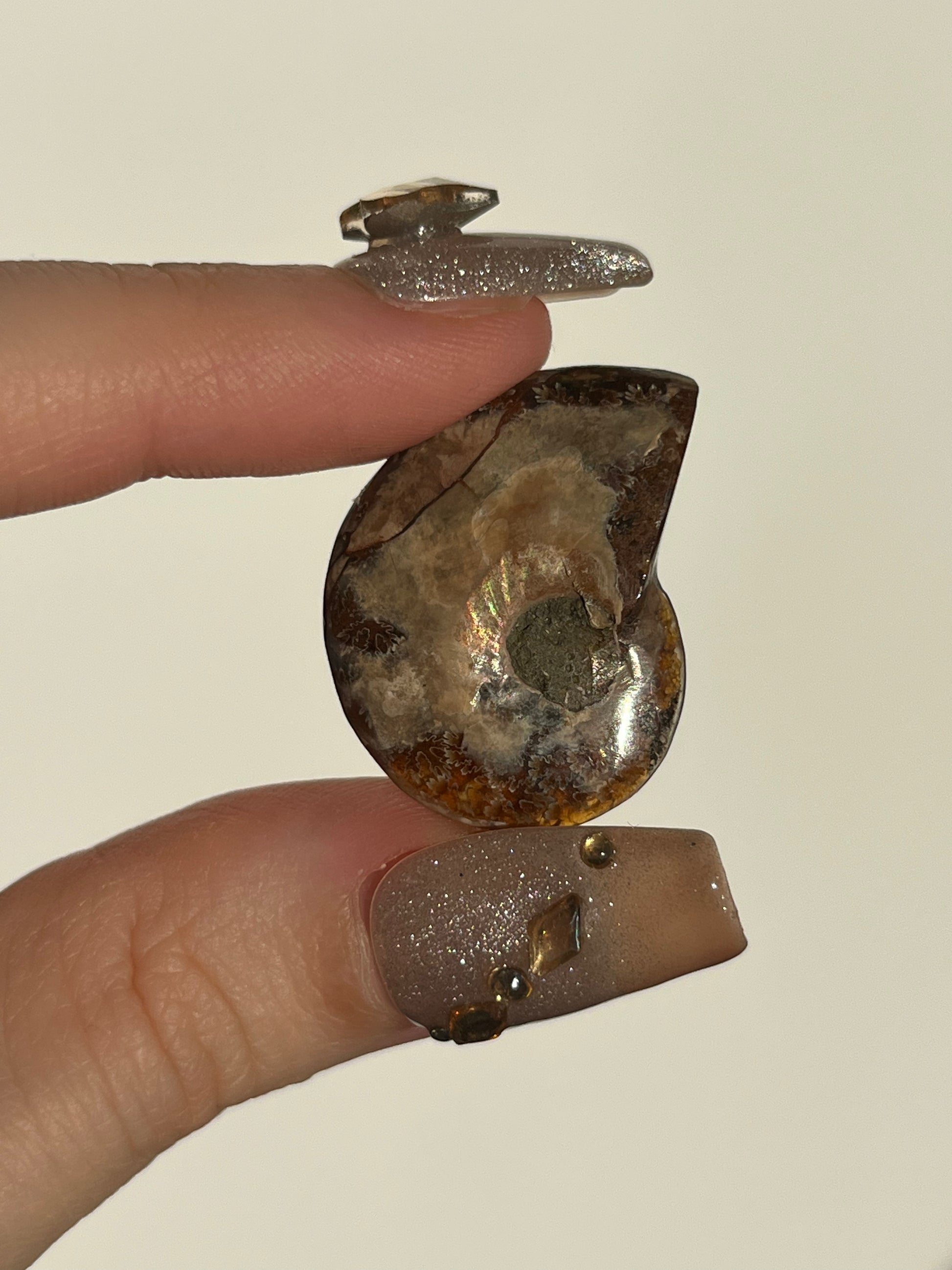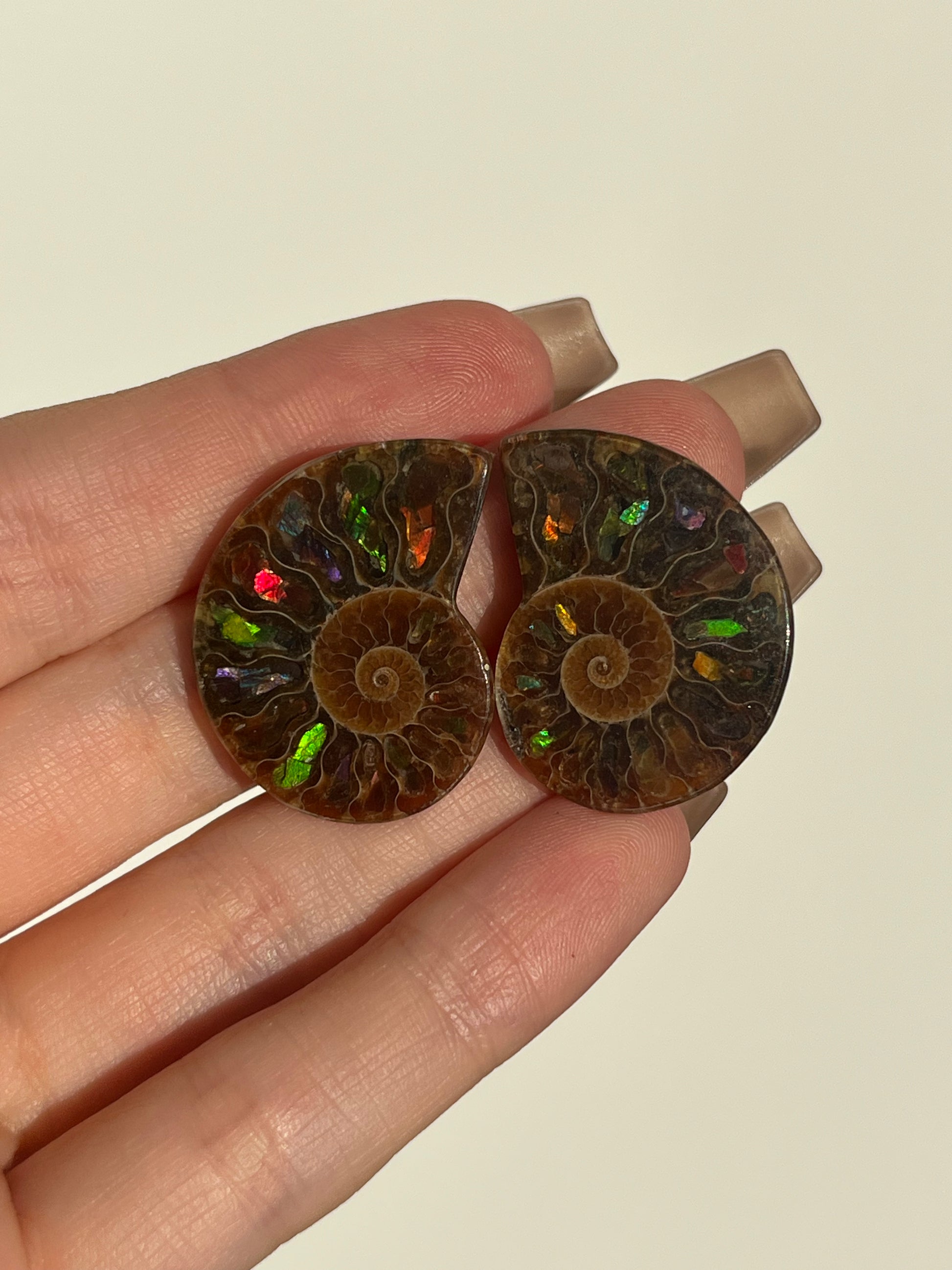 This Ammonite fossil pair has been intricately designed and custom made with ammolite inlay.