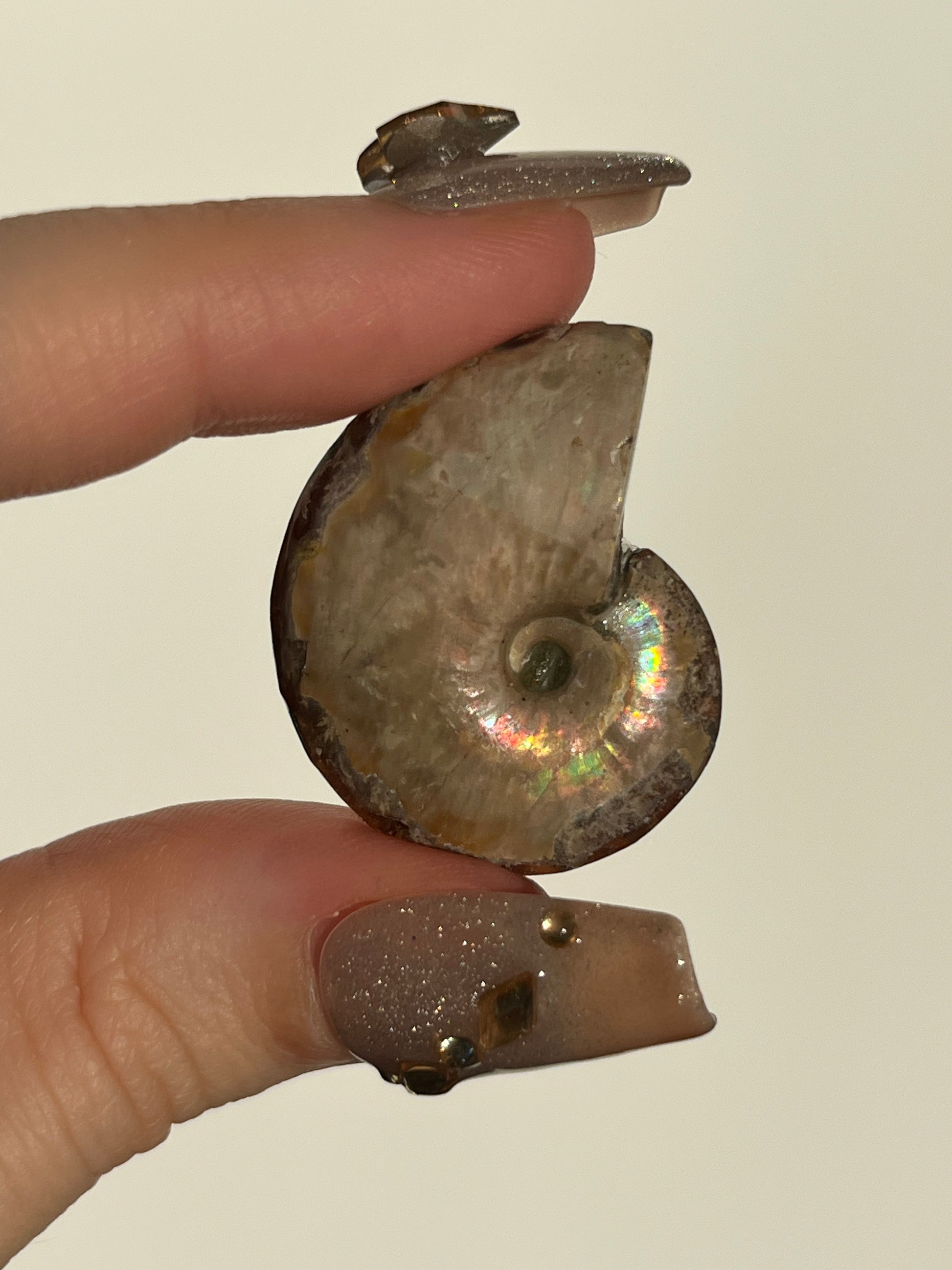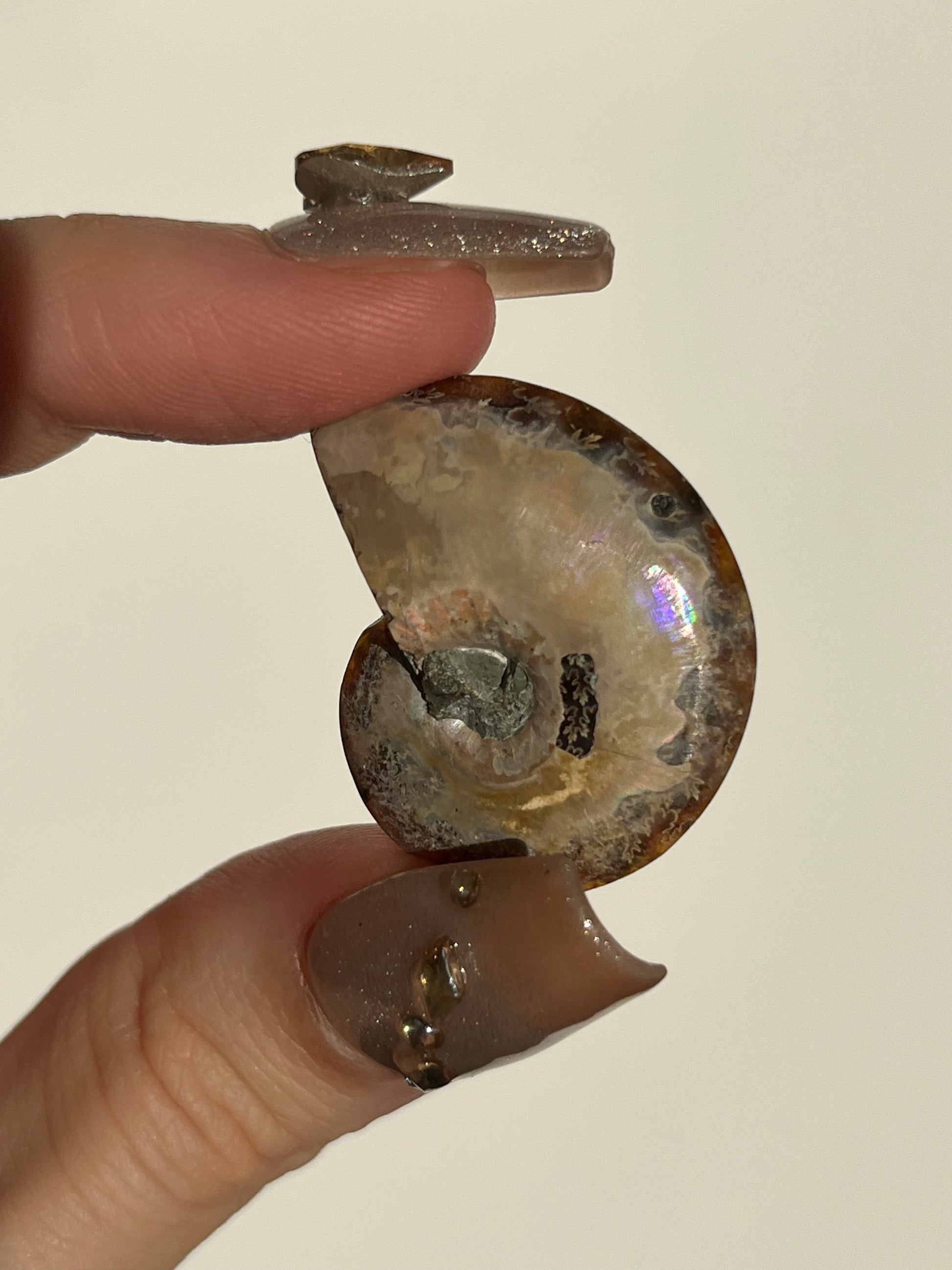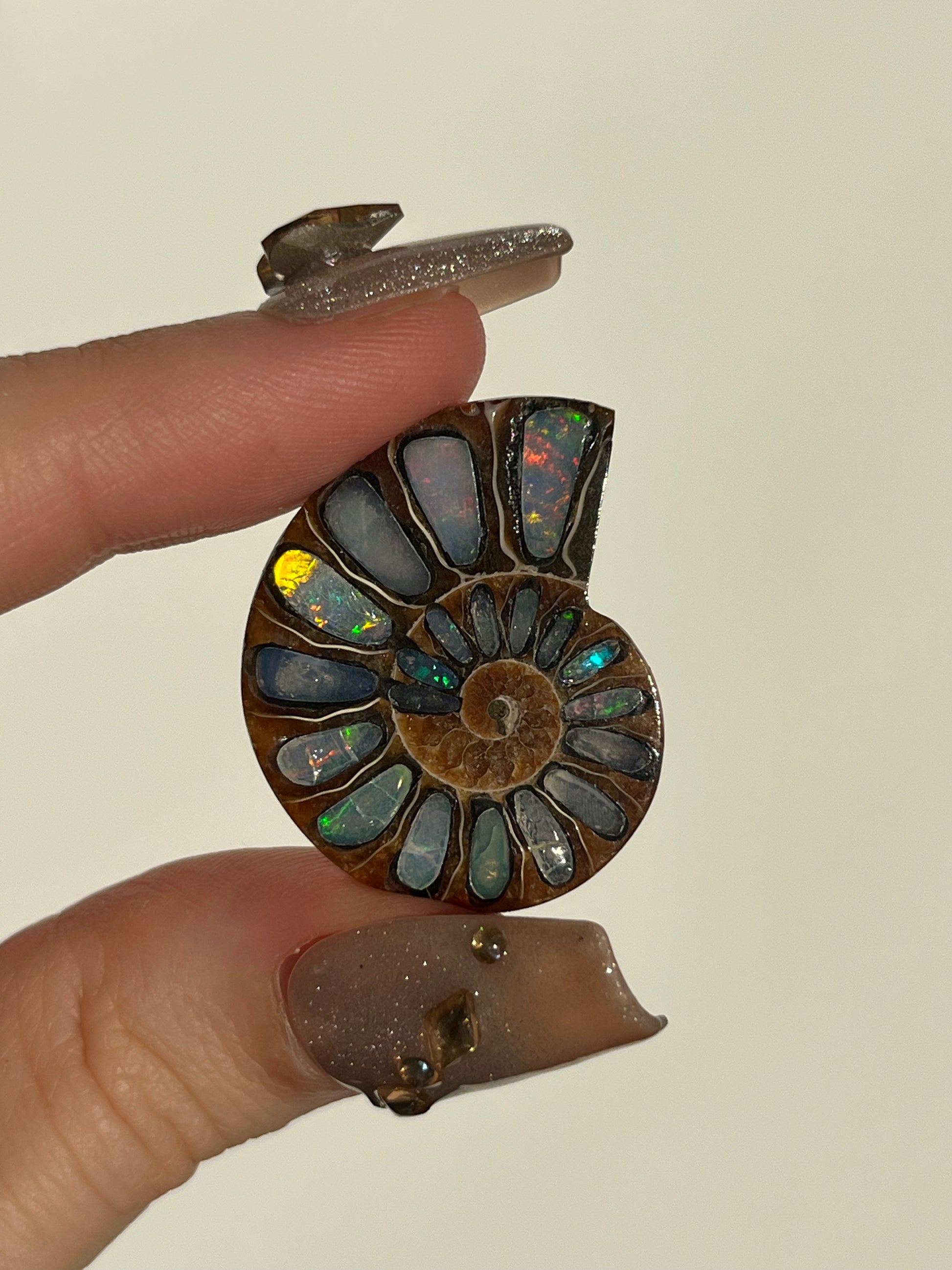 Opalised Ammonite Fossil Pair with Ethiopian Opal Inlay