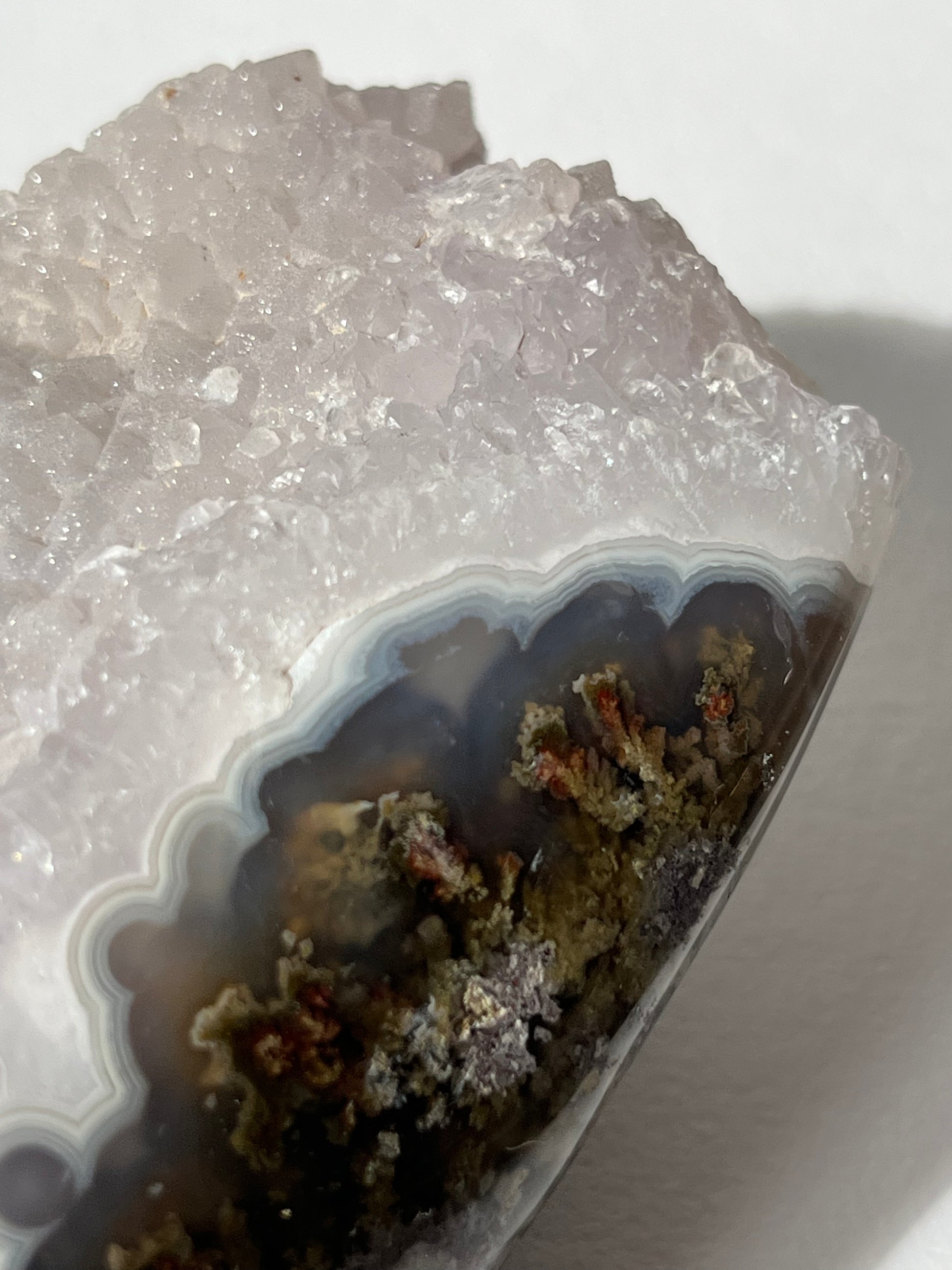 Nebula Agate is a recent find from Indonesia first named by the founders of Priestess Crystals. With enchanting multicoloured moss and orbicular agate rings that pierce through translucent chalcedony.