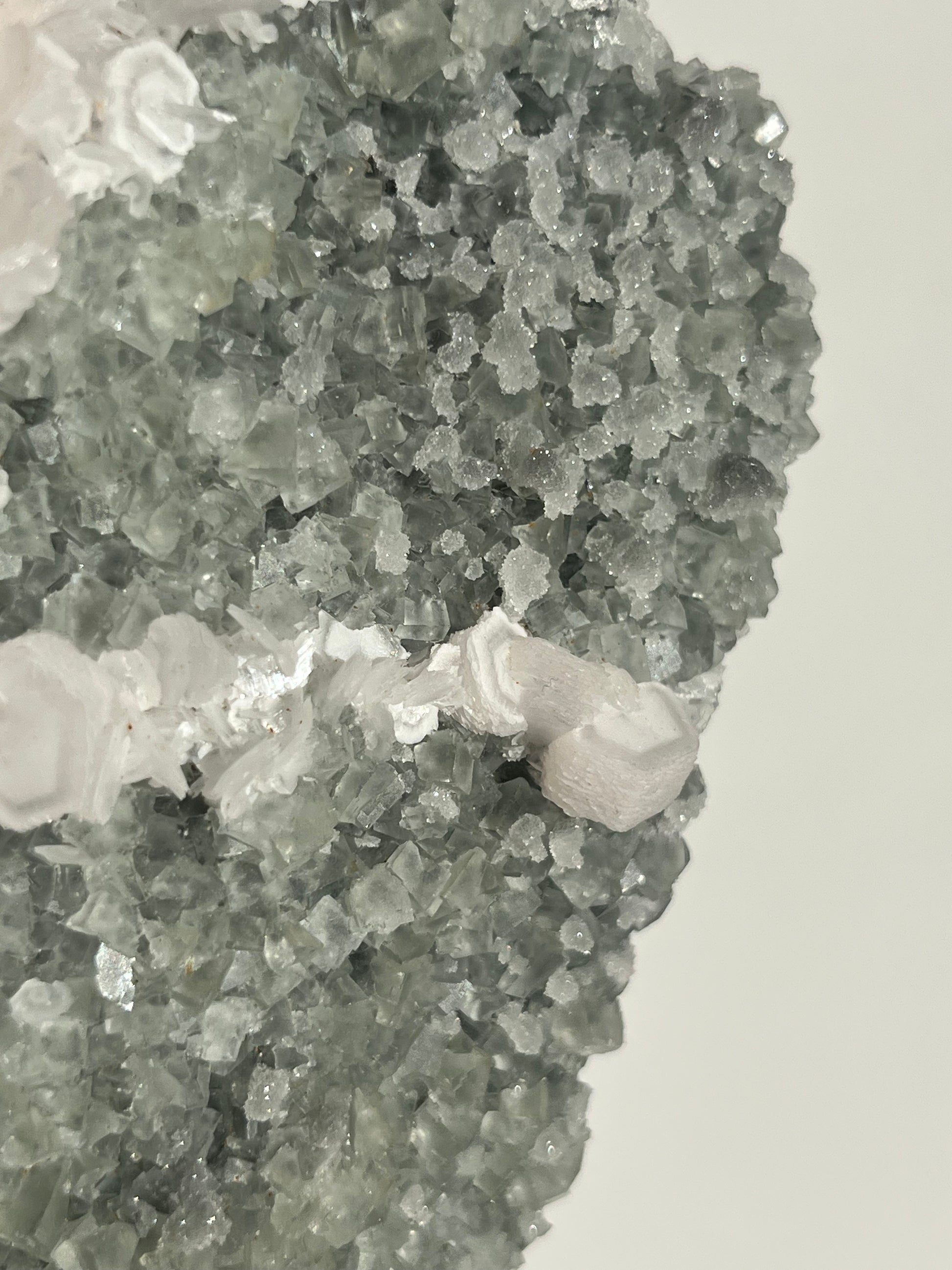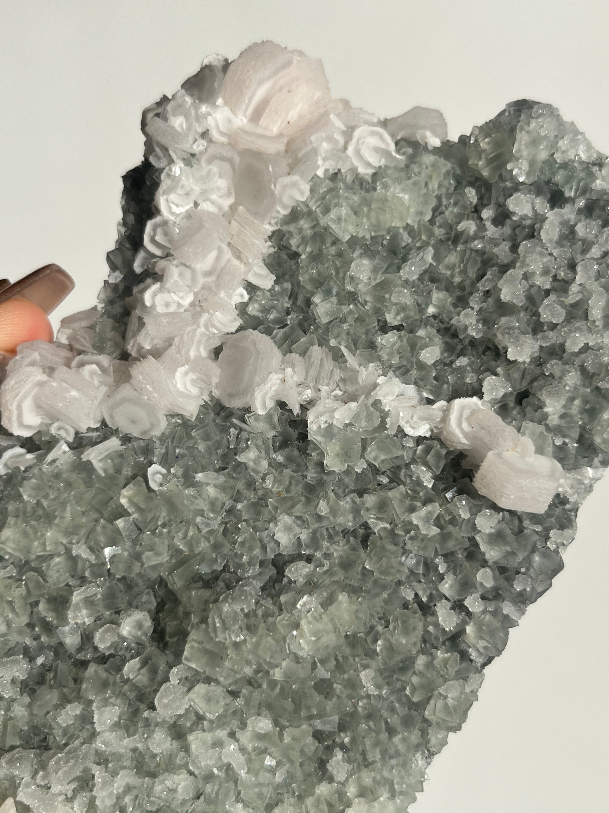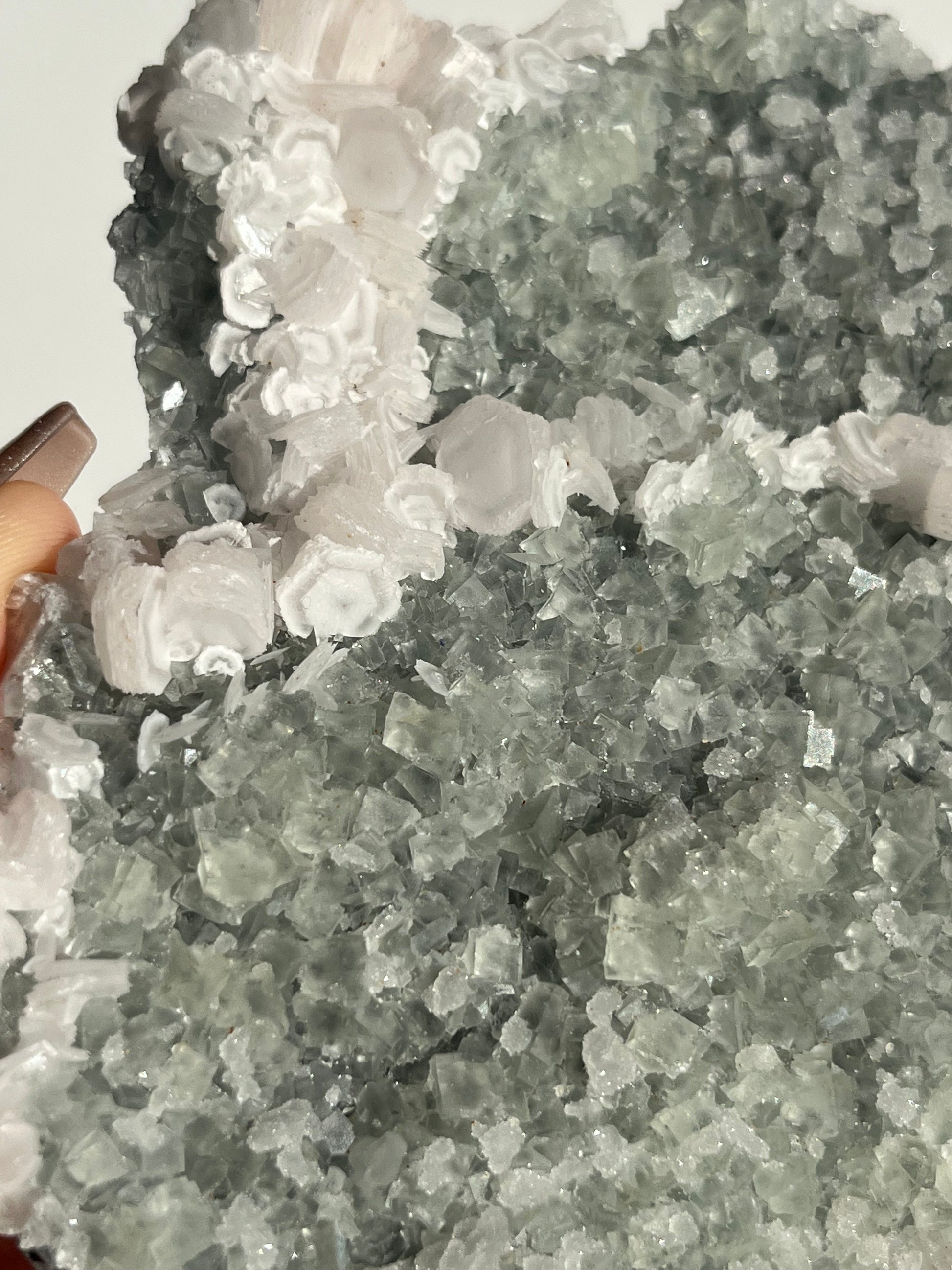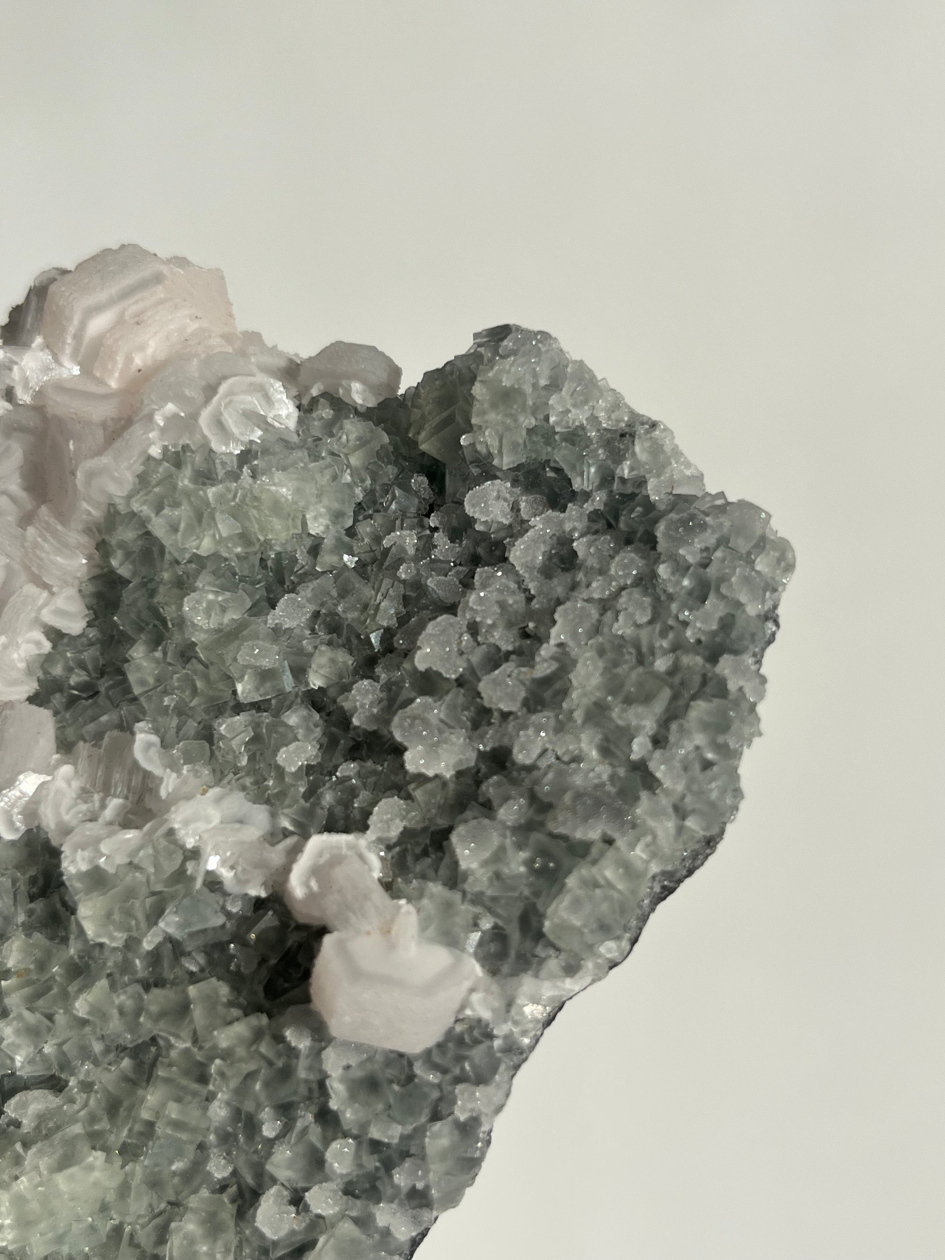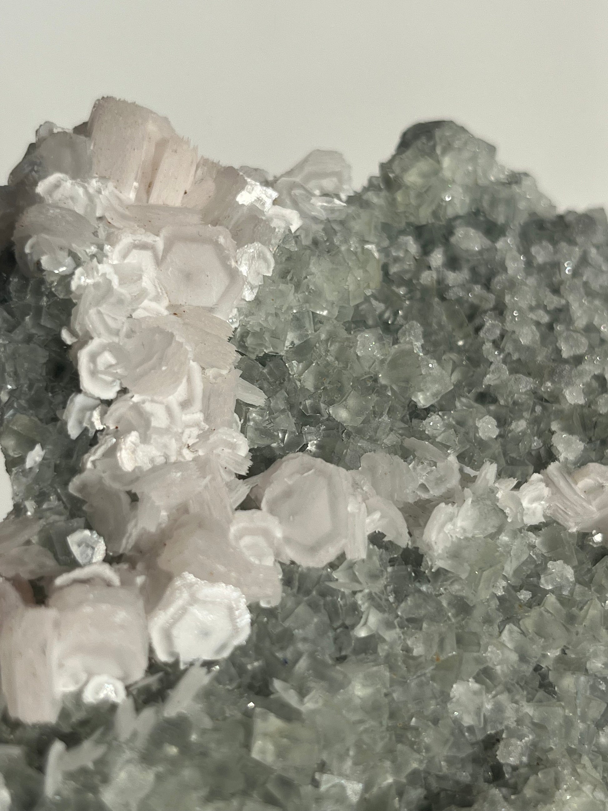 Pink Coin Calcite, Green Fluorite and Quartz Specimen I