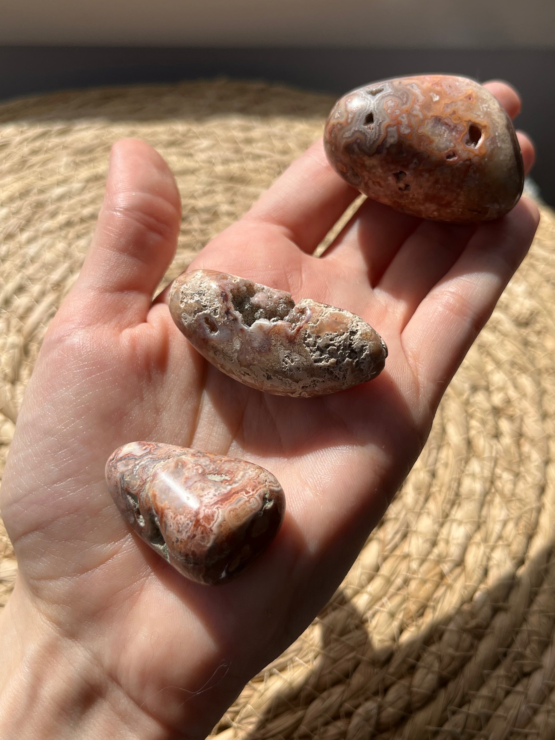 Crazy Lace es una piedra de apoyo y equilibrio. Aquí para recordarte que debes mantenerte firme para que puedas disfrutar cada momento.
