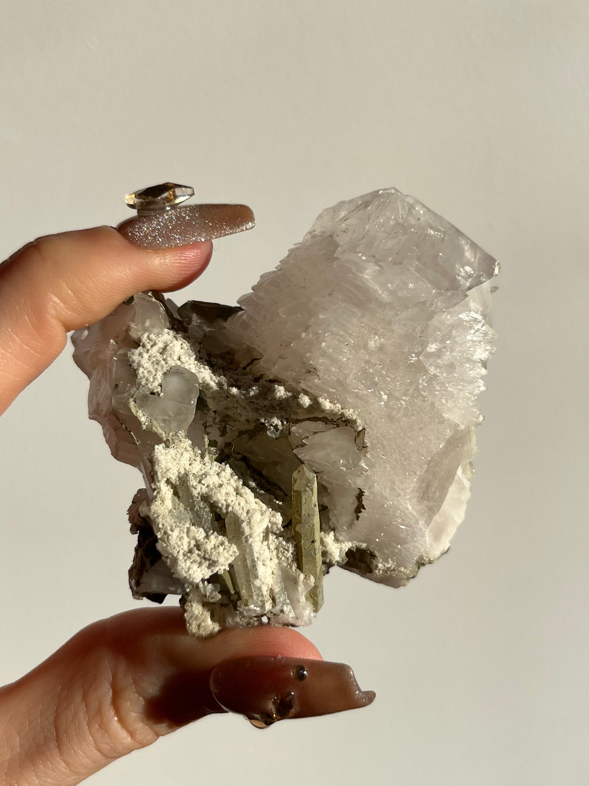 Pink Pagoda Calcite and Chlorite Coated Quartz Specimen E