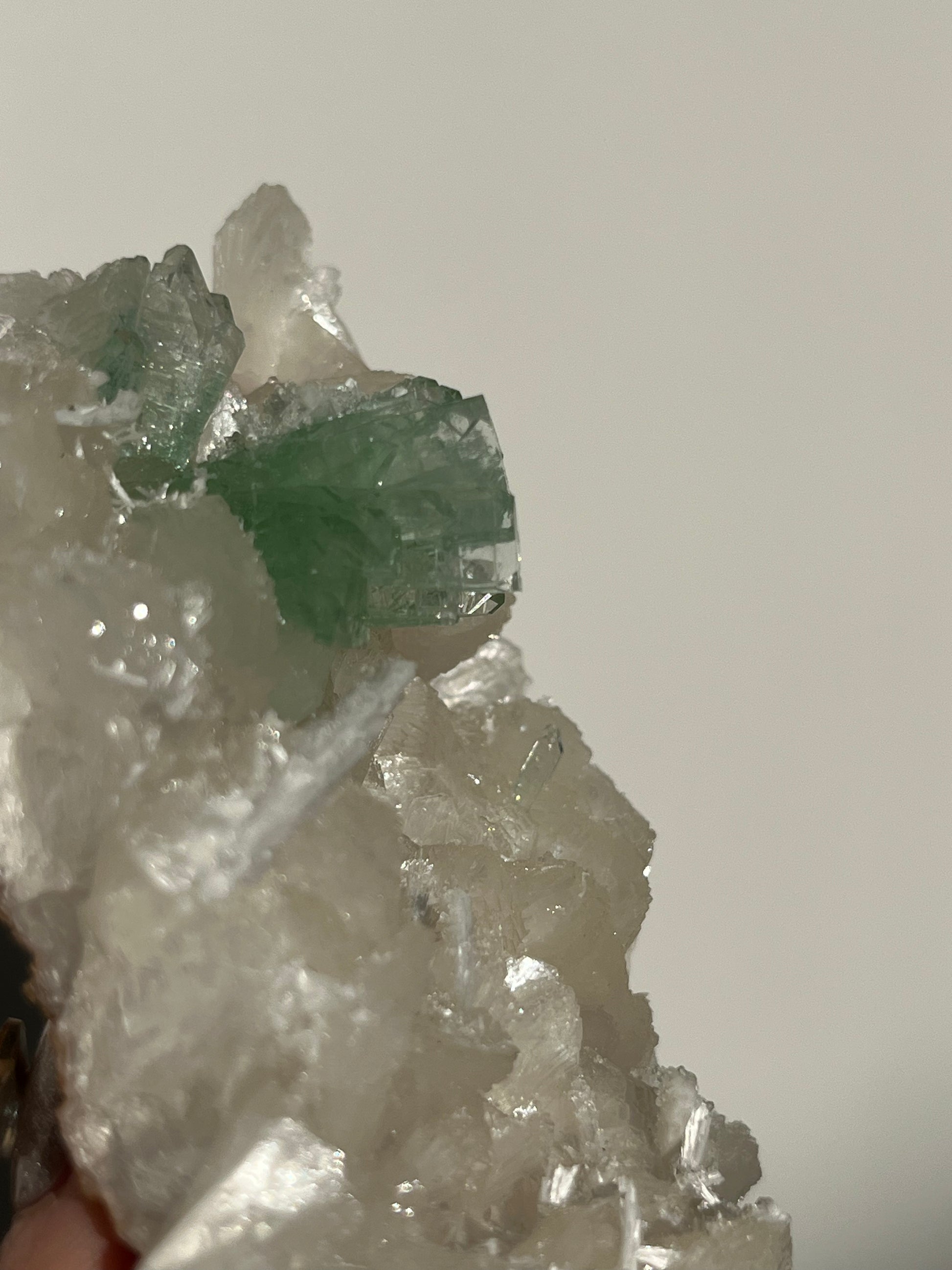 Green Apophyllite awakens the heart and clears energy with vibrant, high-frequency light, while Stilbite adds softness, comfort, and gentle guidance. Together, they balance clarity with compassion, grounding spiritual insight into everyday life.