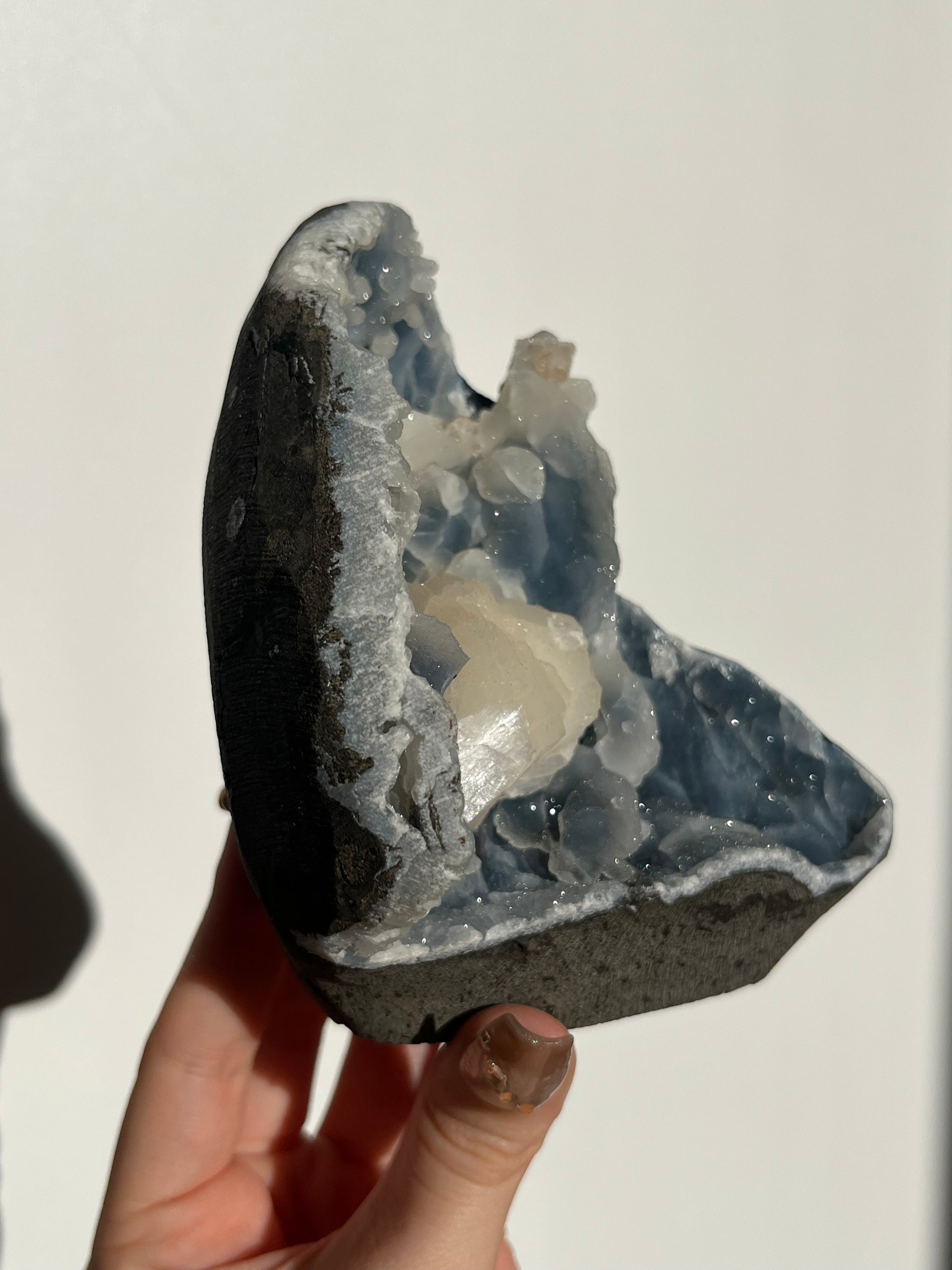 Blue Chalcedony radiates calm, clarity, and gentle communication. Its soft blue tones soothe the spirit, ease stress, and encourage honest self-expression.