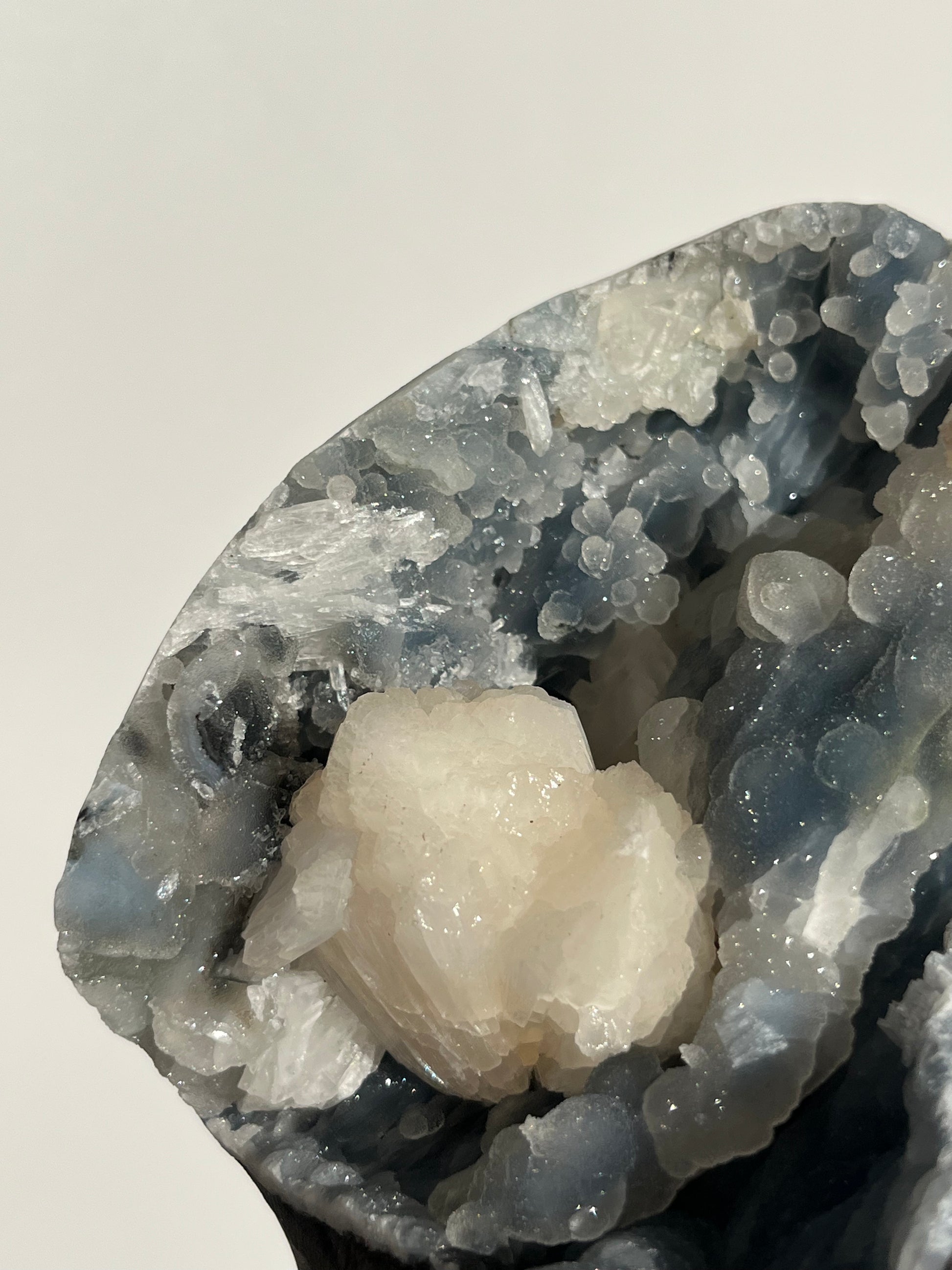 Pseudostalactitic Blue Chalcedony and Peach Stilbite Specimen Q