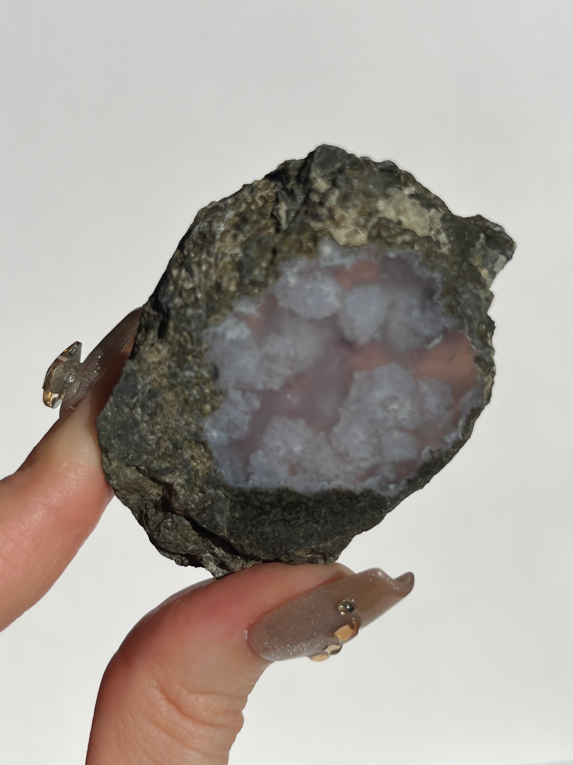 Purple Chalcedony with Green Moss blends calm intuition with grounded renewal. The soft lavender chalcedony soothes the mind and enhances inner clarity, while moss-like inclusions symbolise growth, resilience, and connection to Earth. This stone supports balanced perspective, emotional harmony, and steady transformation.