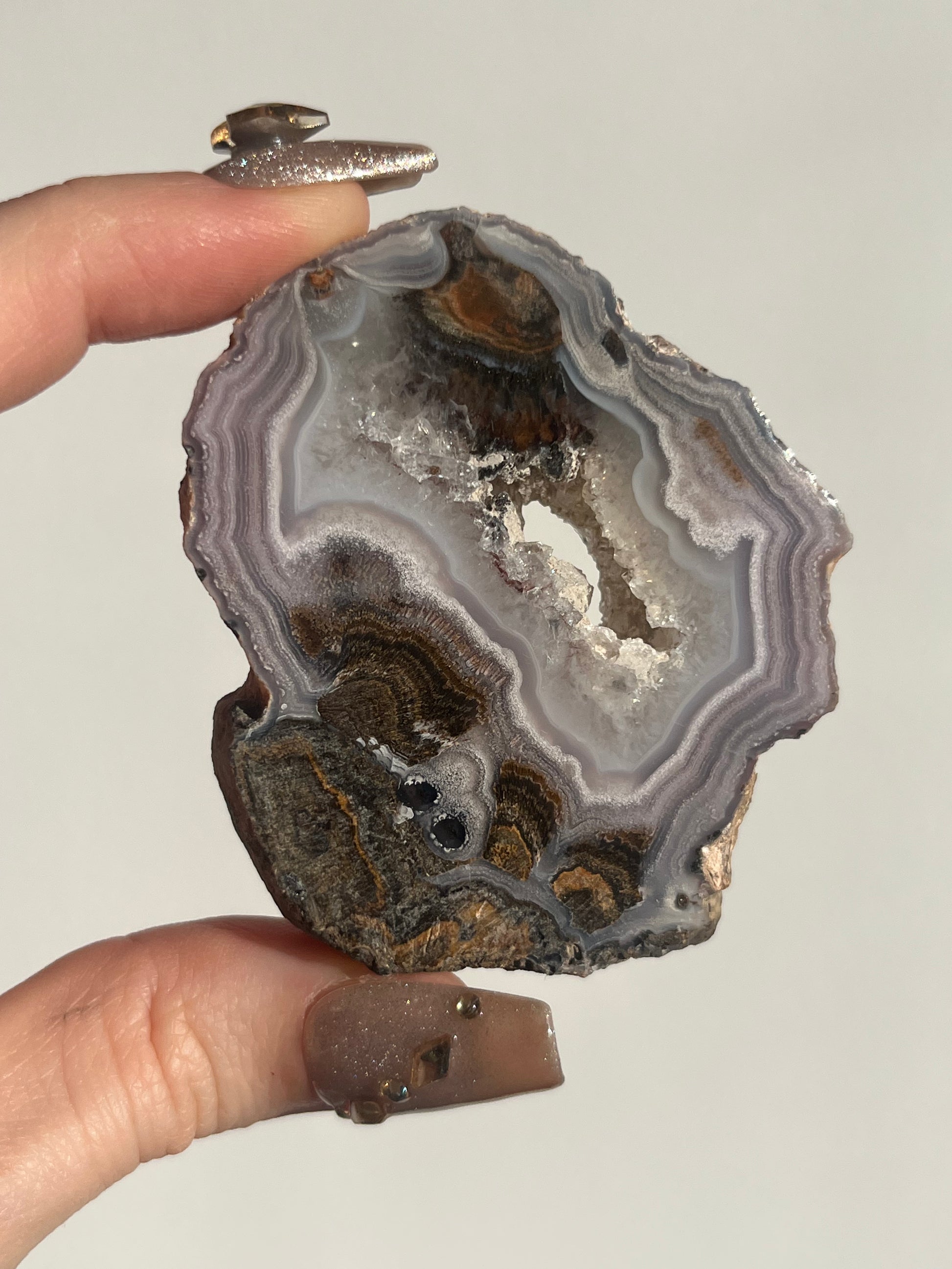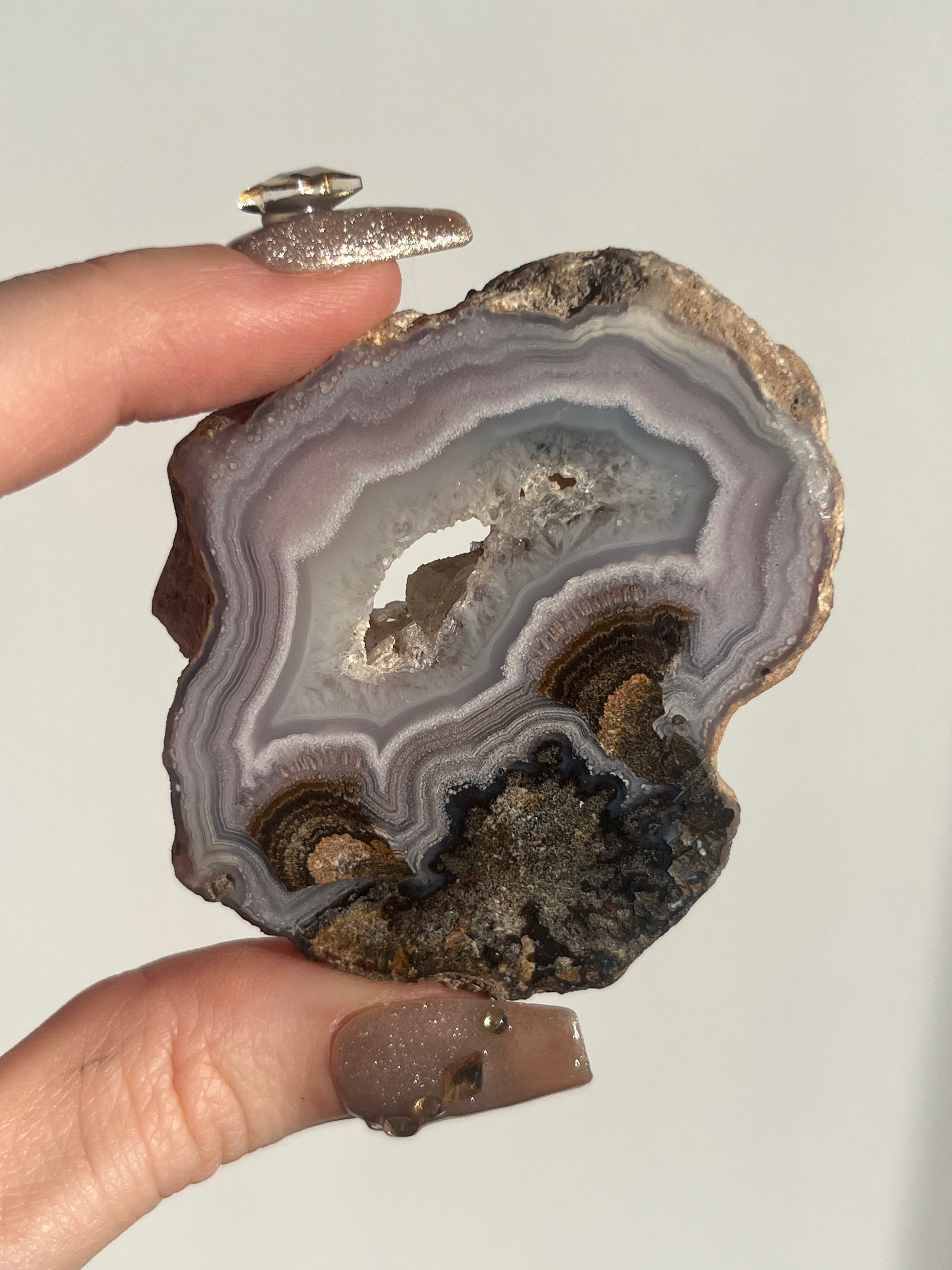 Purple Laguna Agate Slice with Sagenite Inclusions and Parallax Effect E