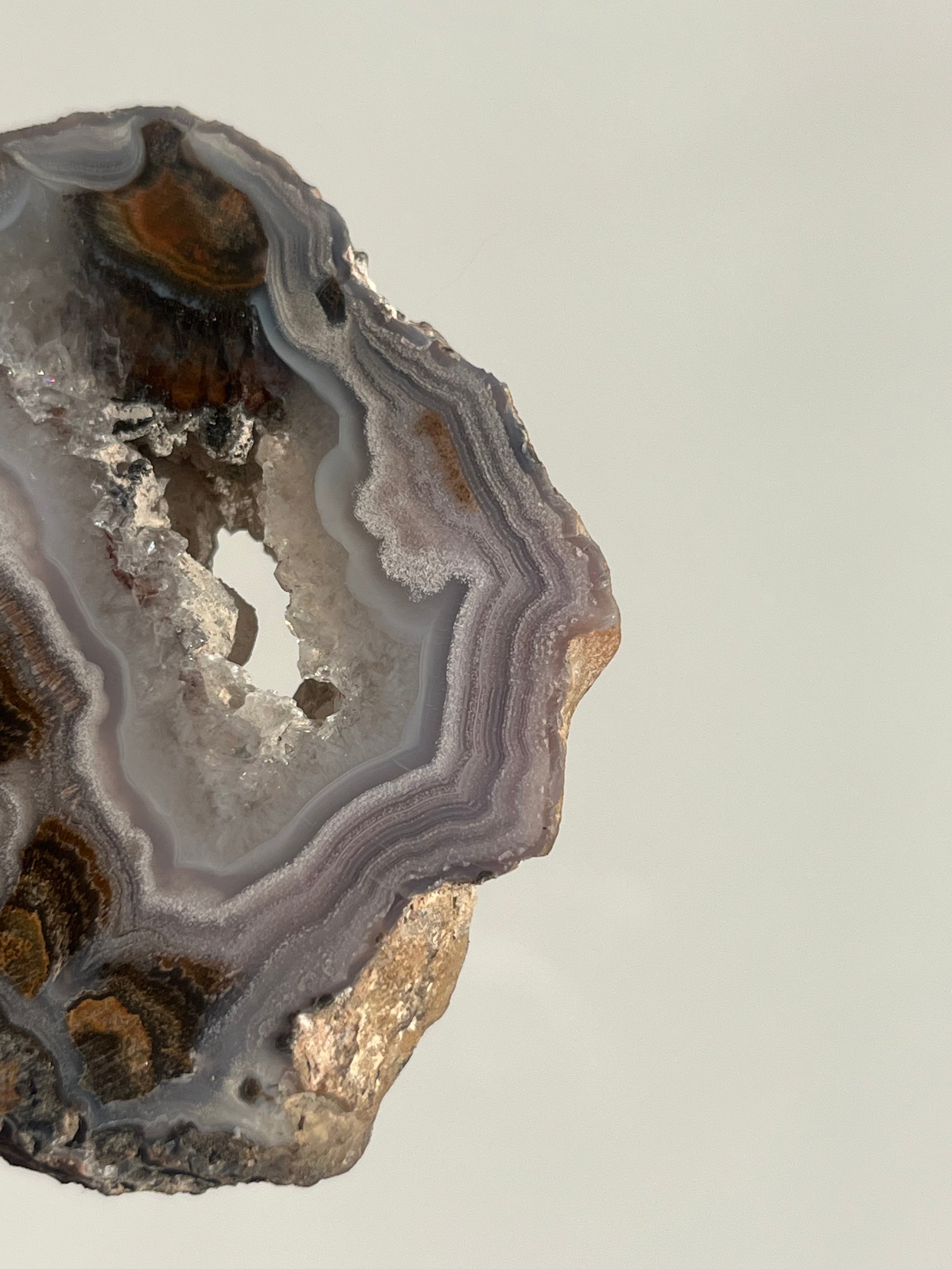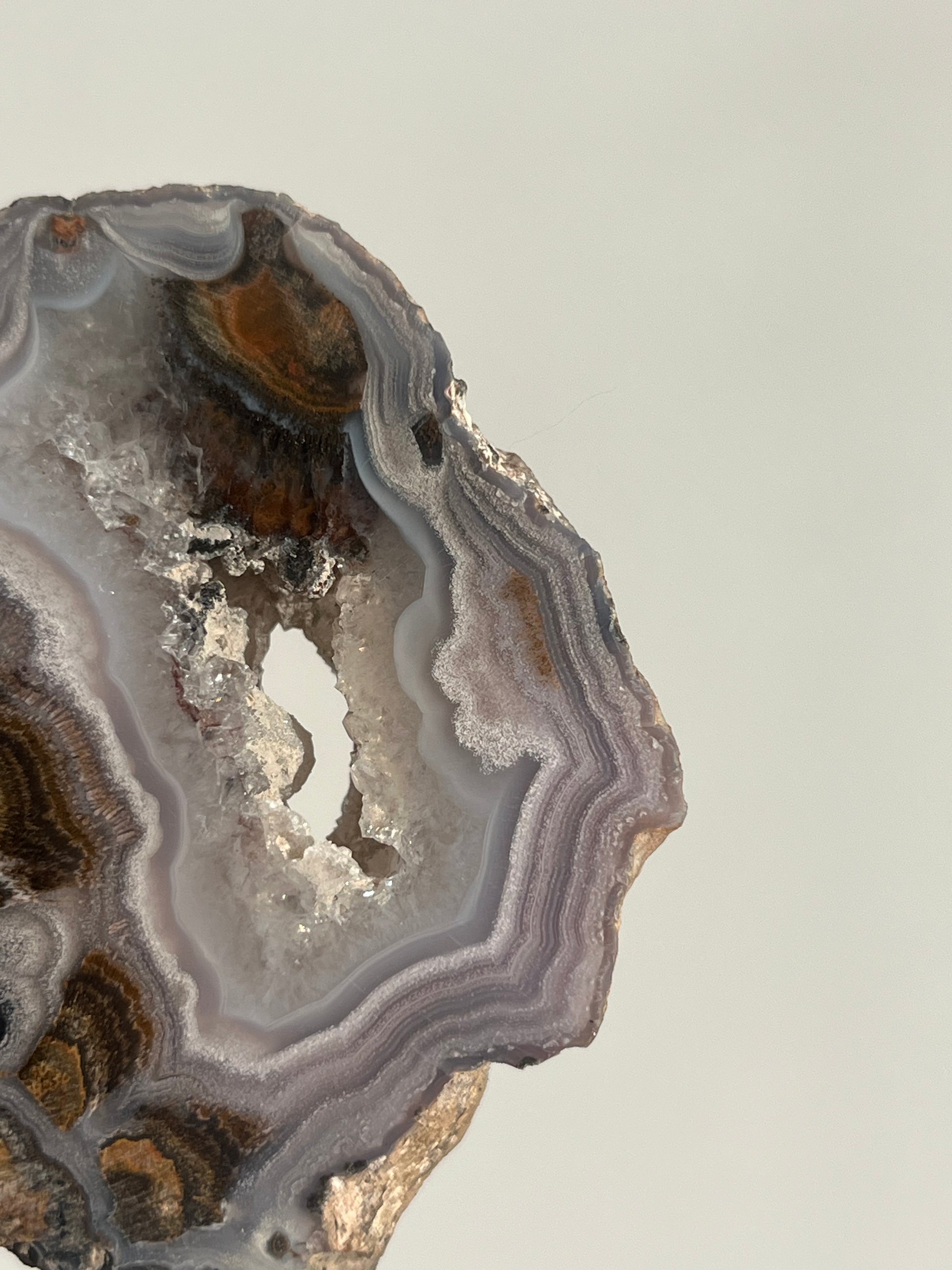 A discerningly beautiful variety of agate (cryptocrystalline quartz), Laguna Agates have captivated international collectors for their breathtaking banding and vibrant colours. So much so, that they are considered to be the most colourful banded agates in the world. Their exquisite, banded chalcedony formations range from lace to orbicular.