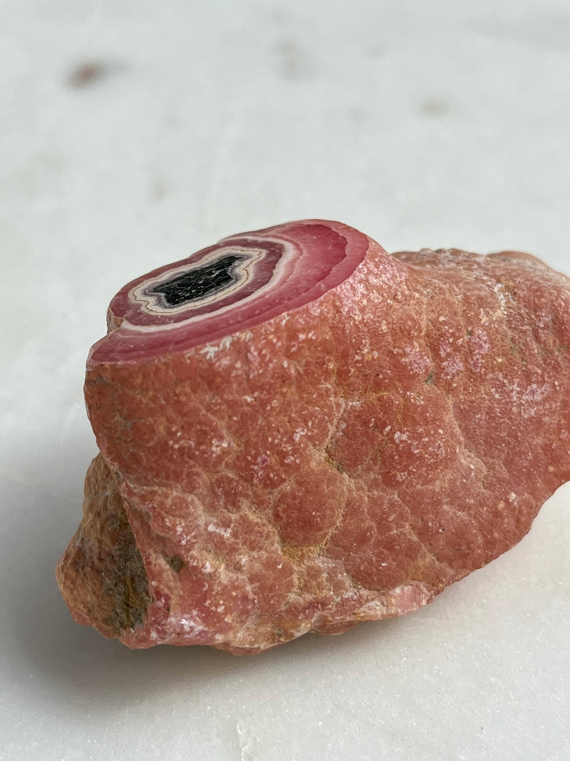 Raro espécimen de rodocrosita de la década de 1980 con núcleo de manganeso oxidado #48