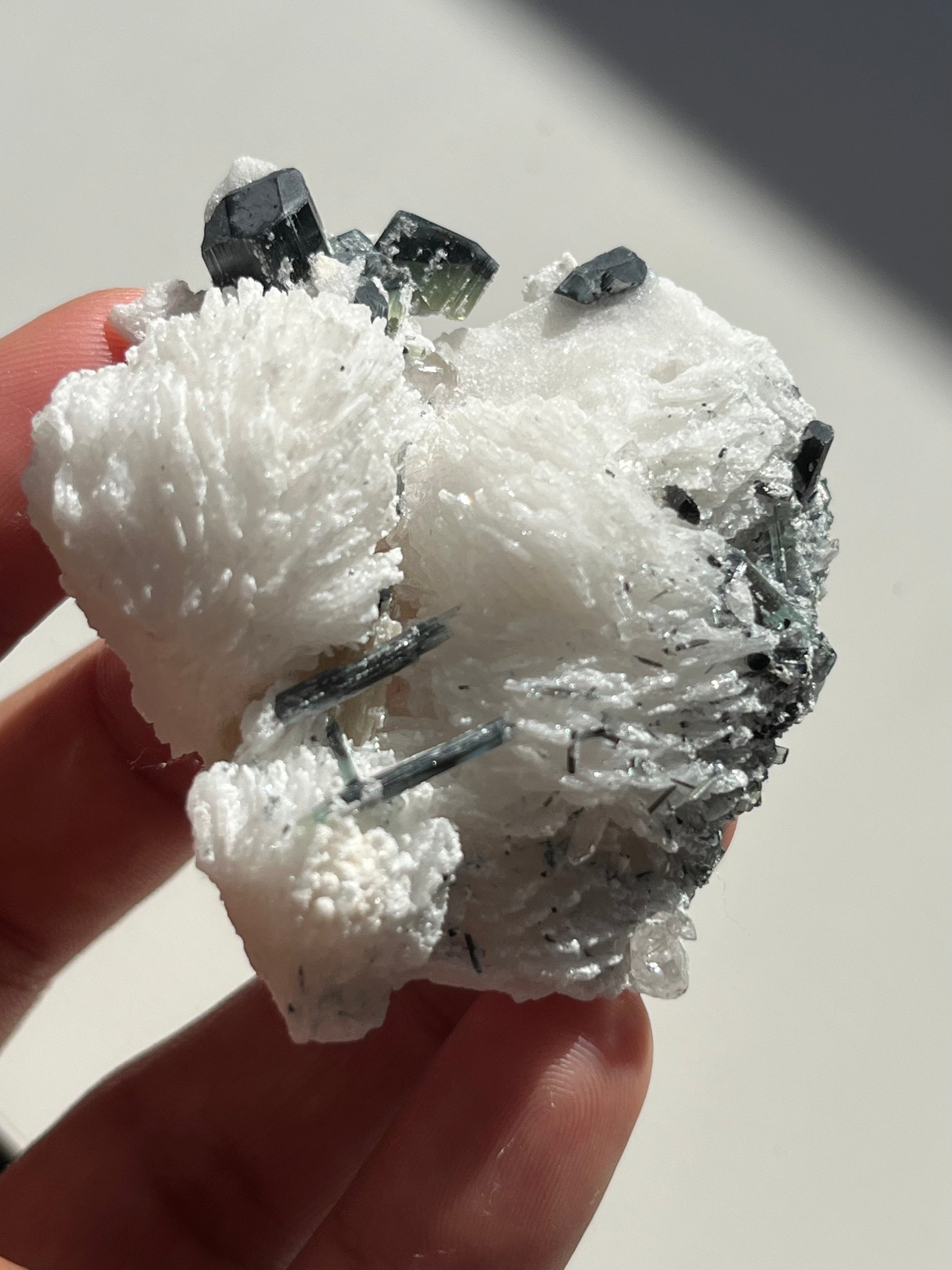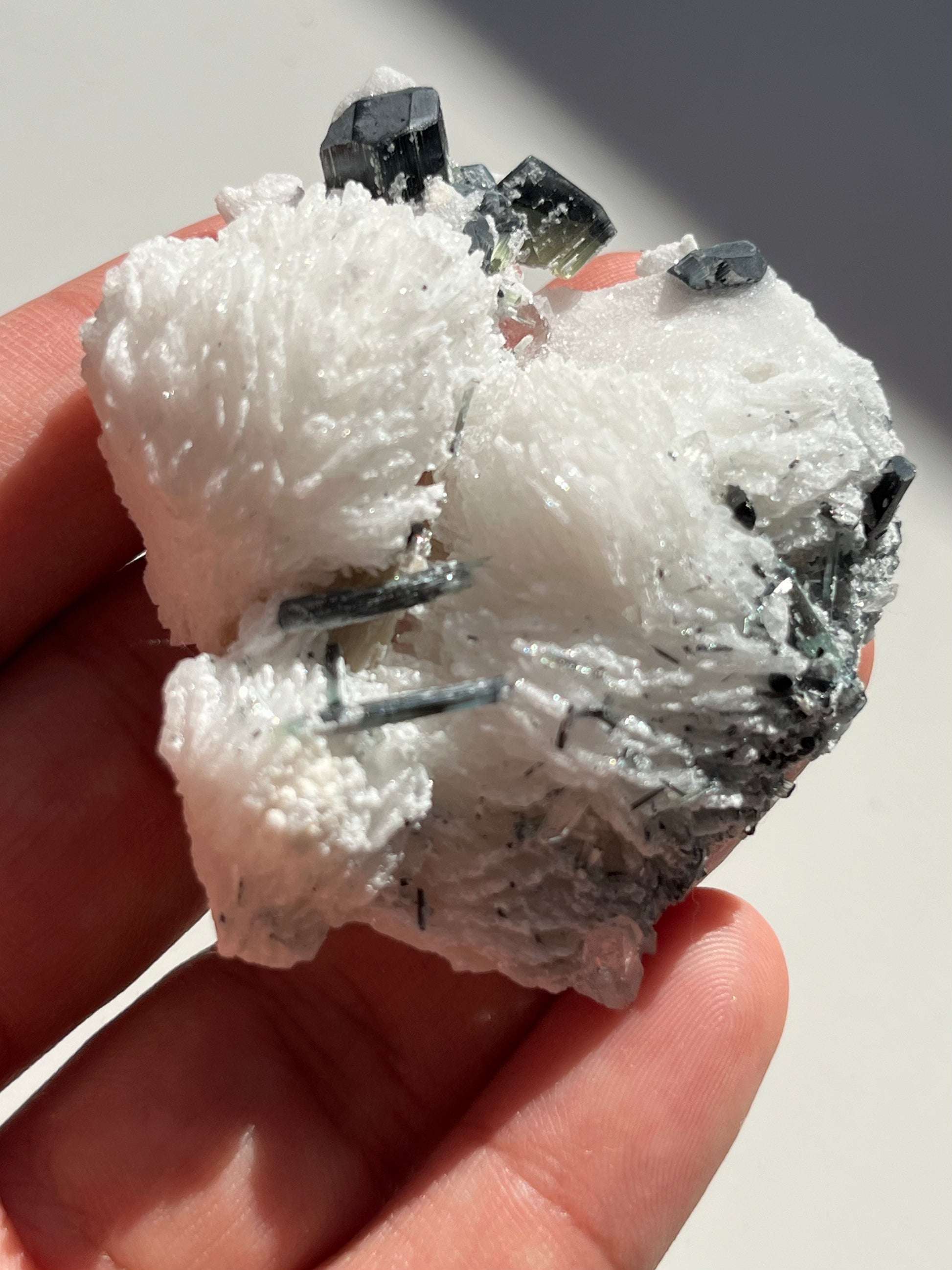 Rare Clear Terminated Topaz in Albite Specimen with Black Schorl Tourmaline & Blue Tourmaline (Indicolite) #D