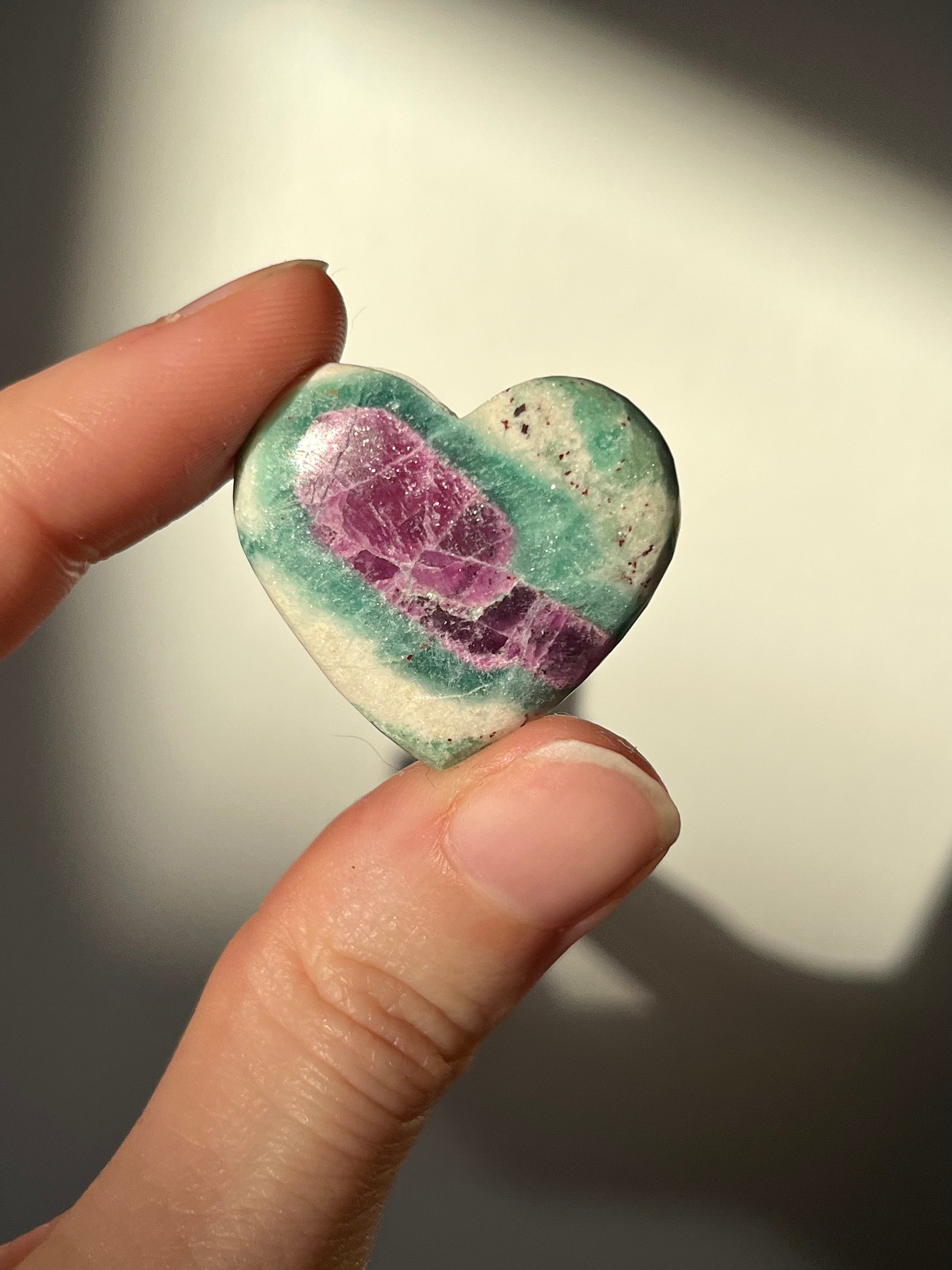 Ruby in Fuschite Heart Carving