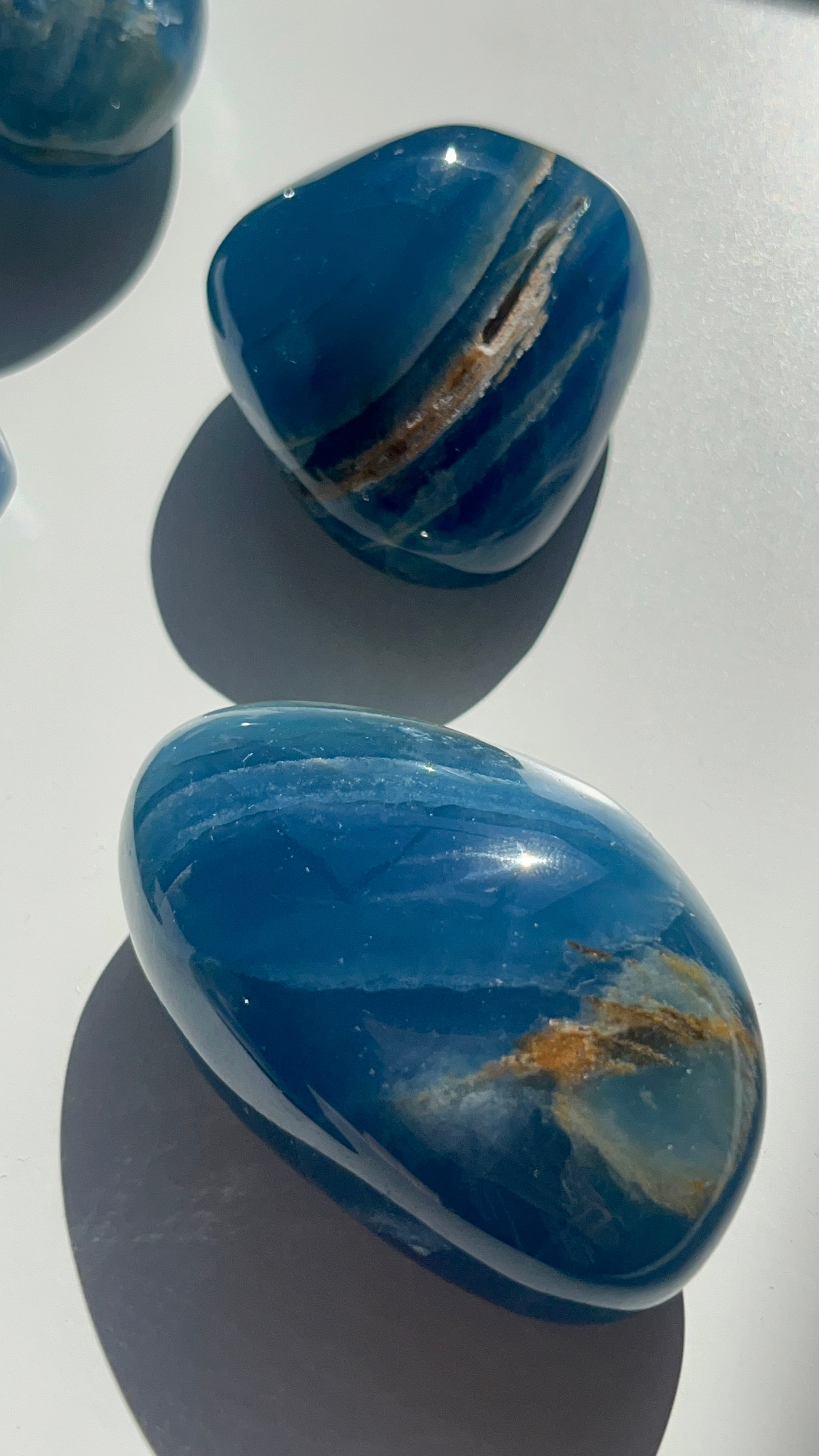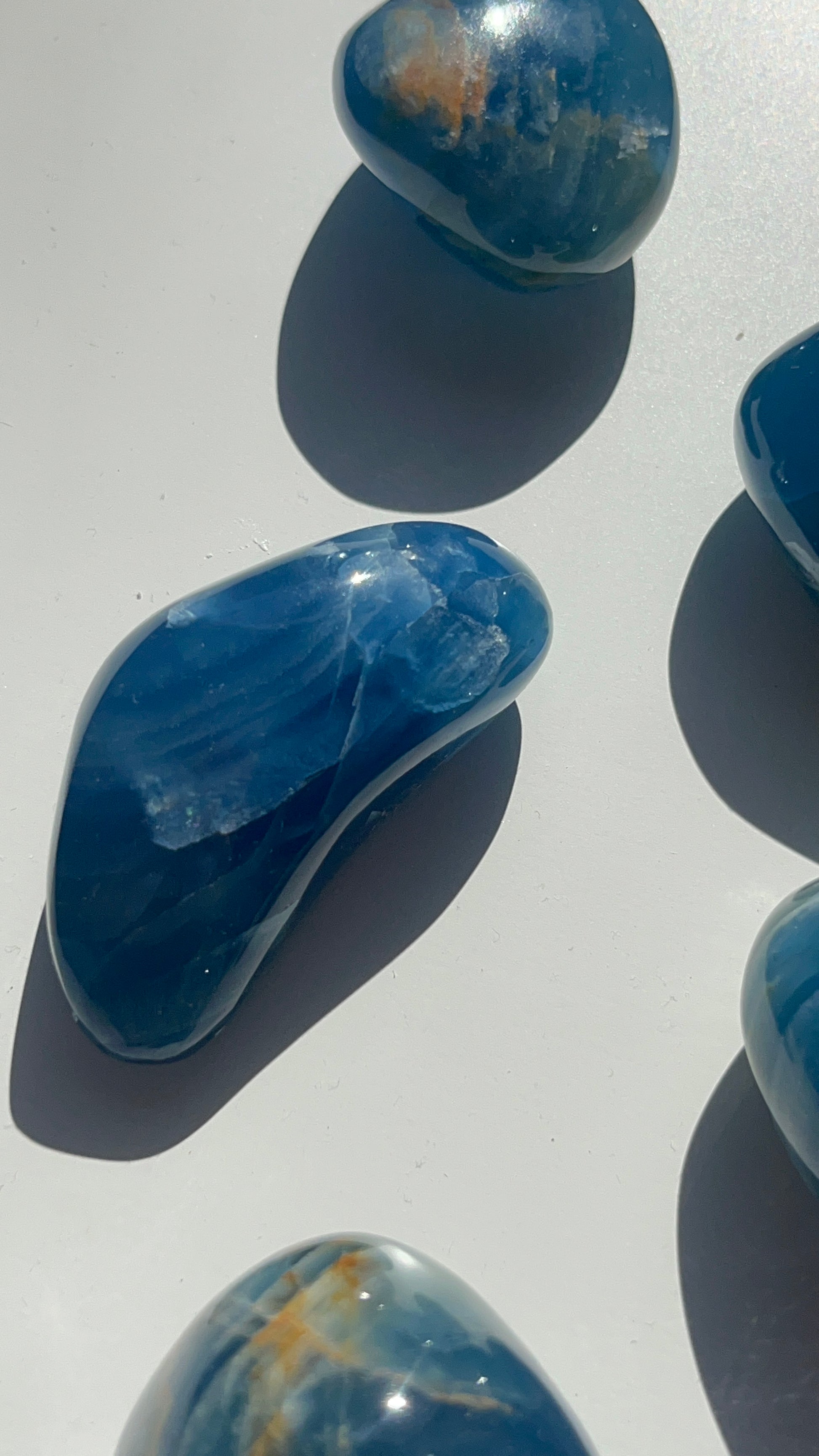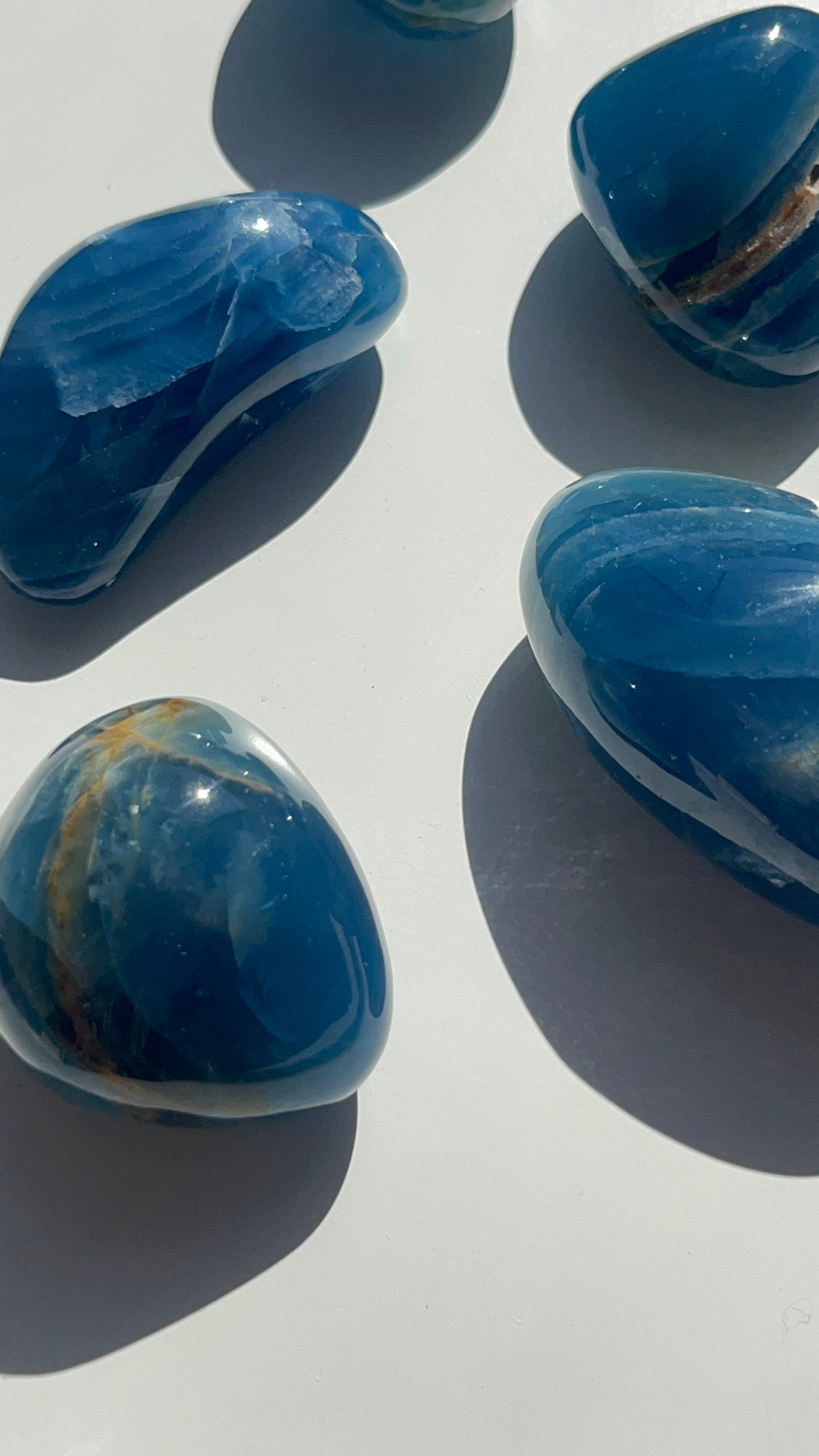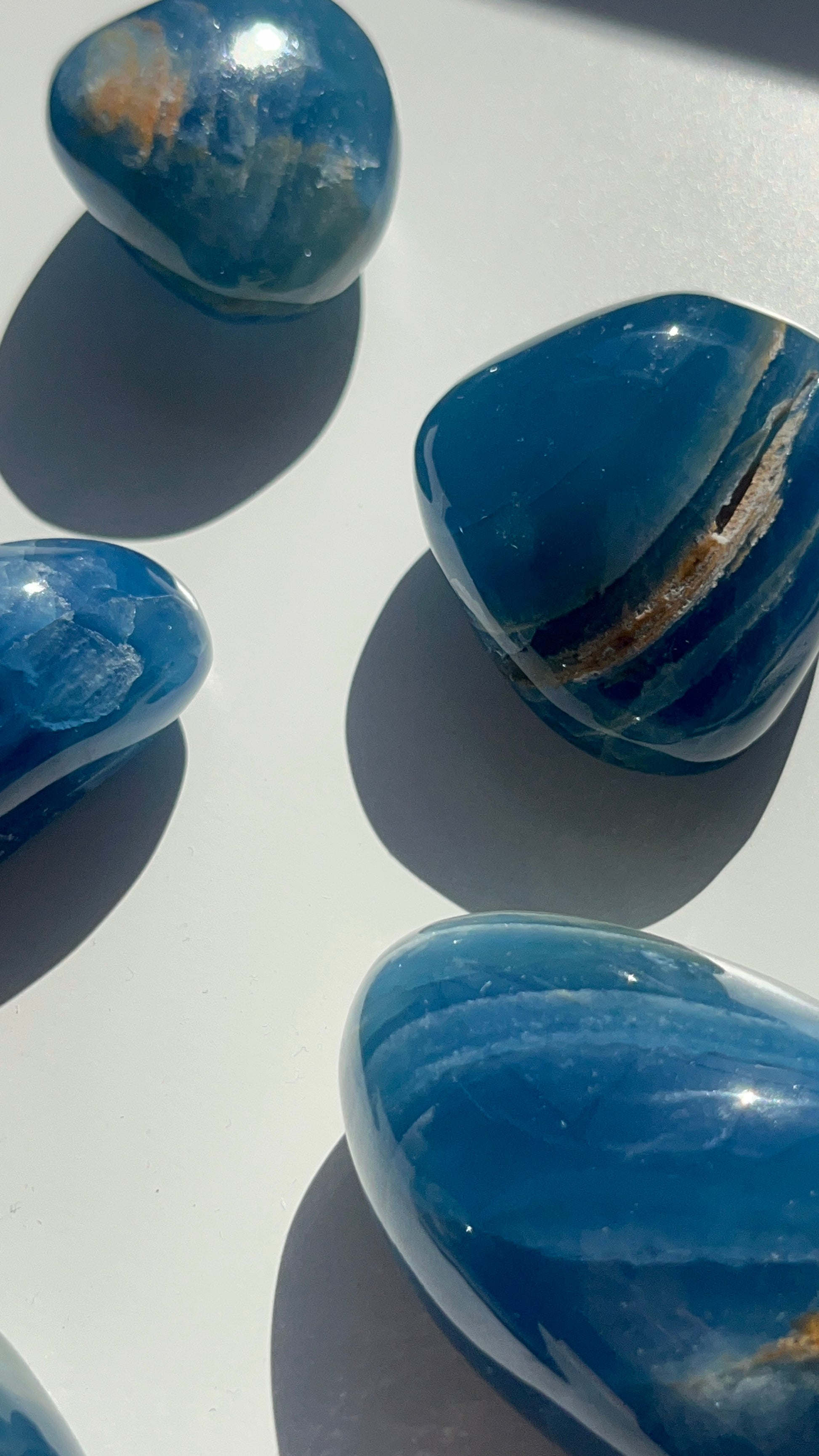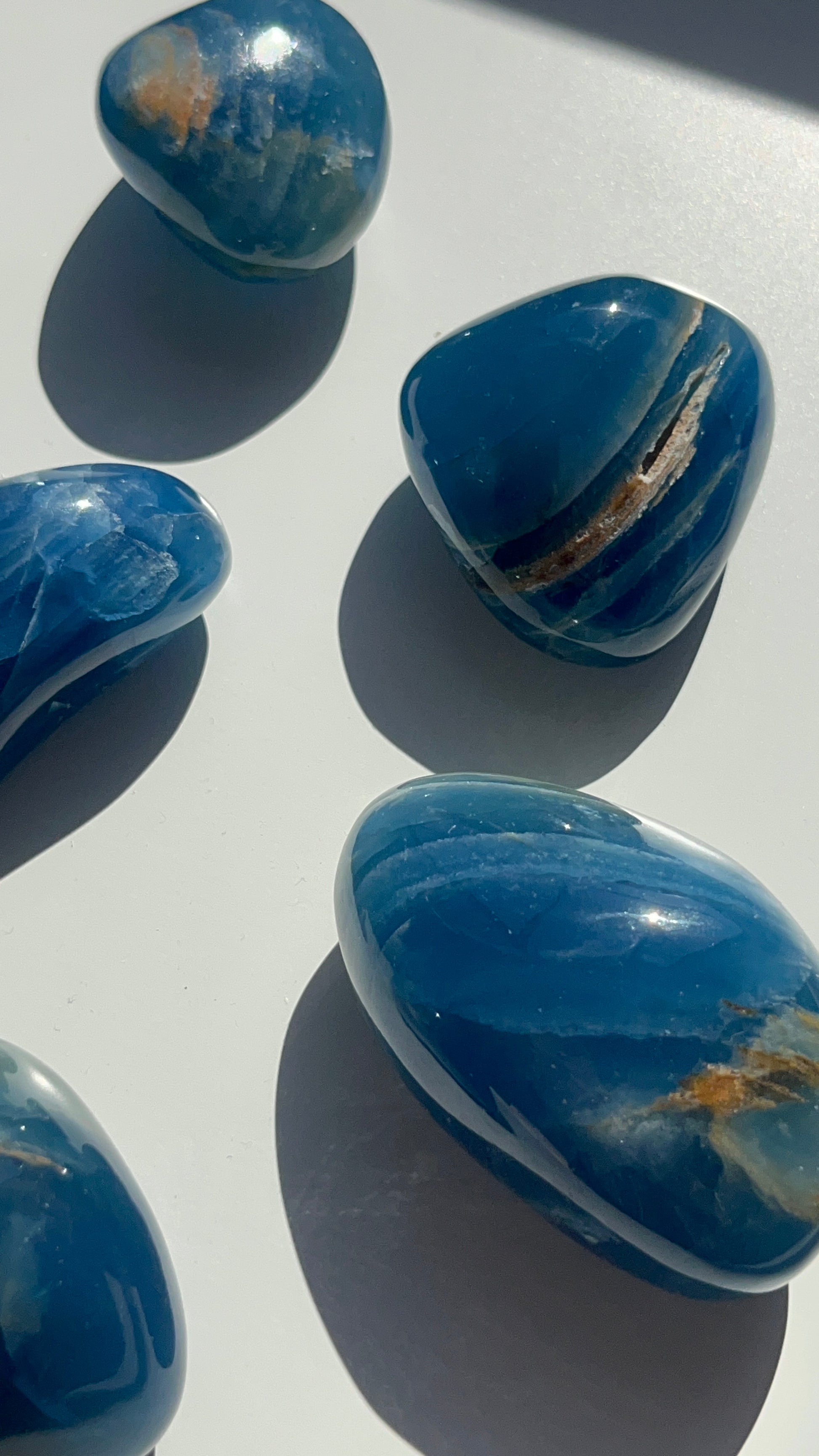 Lemurian Blue Aquatine Calcite is a form of blue banded calcite from Argentina that helps open up your Throat Chakra to speak and embody the truth that is deep within you.