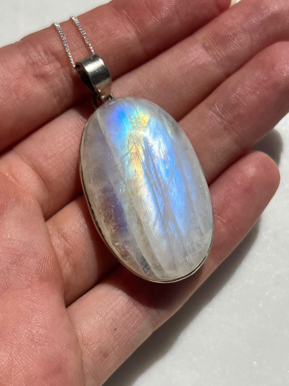 AA Grade Moonstone Pendant & Chain (925 Sterling Silver)