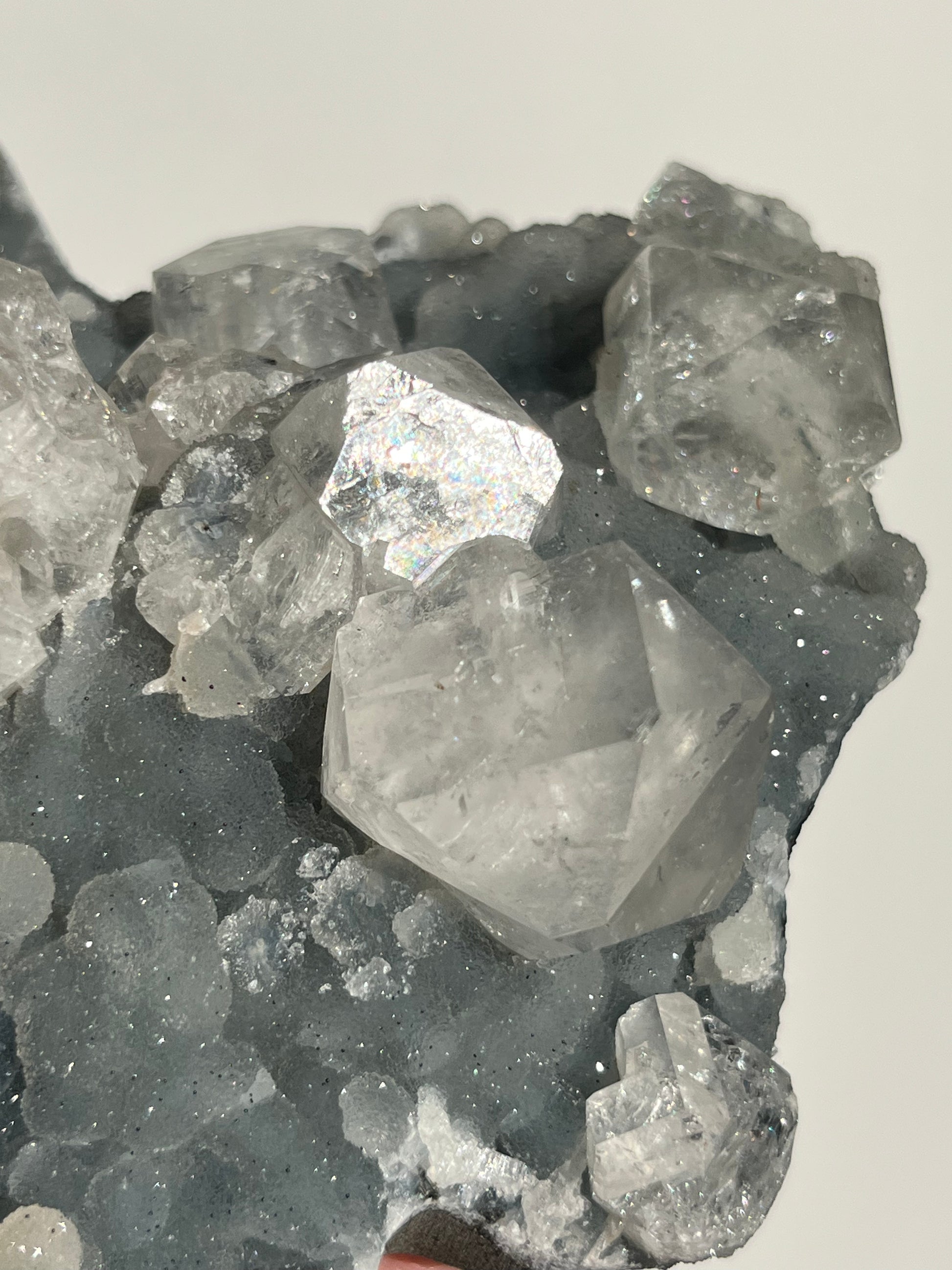Heart Shaped Blue Chalcedony and Apophyllite with Stilbite Specimen S