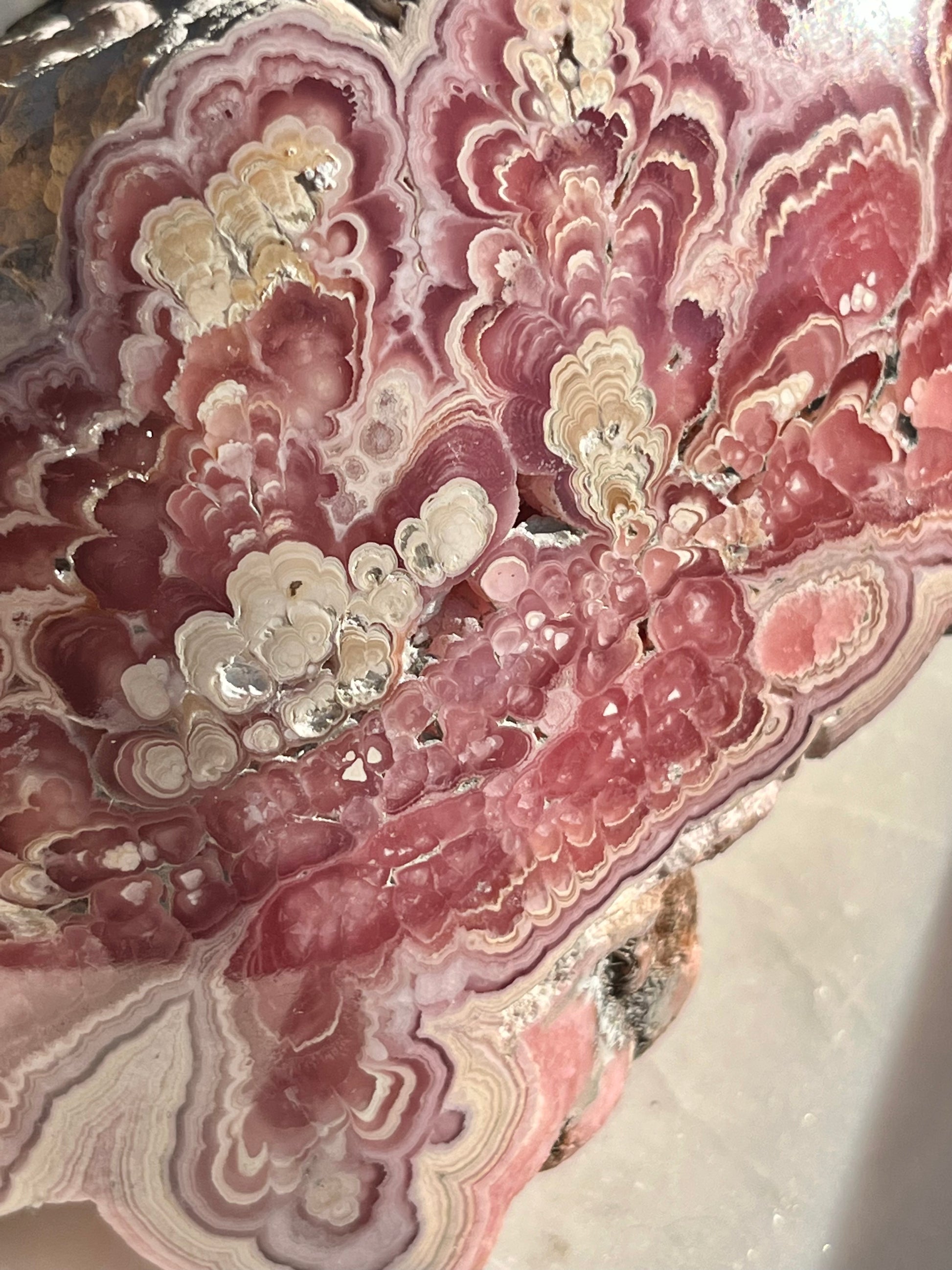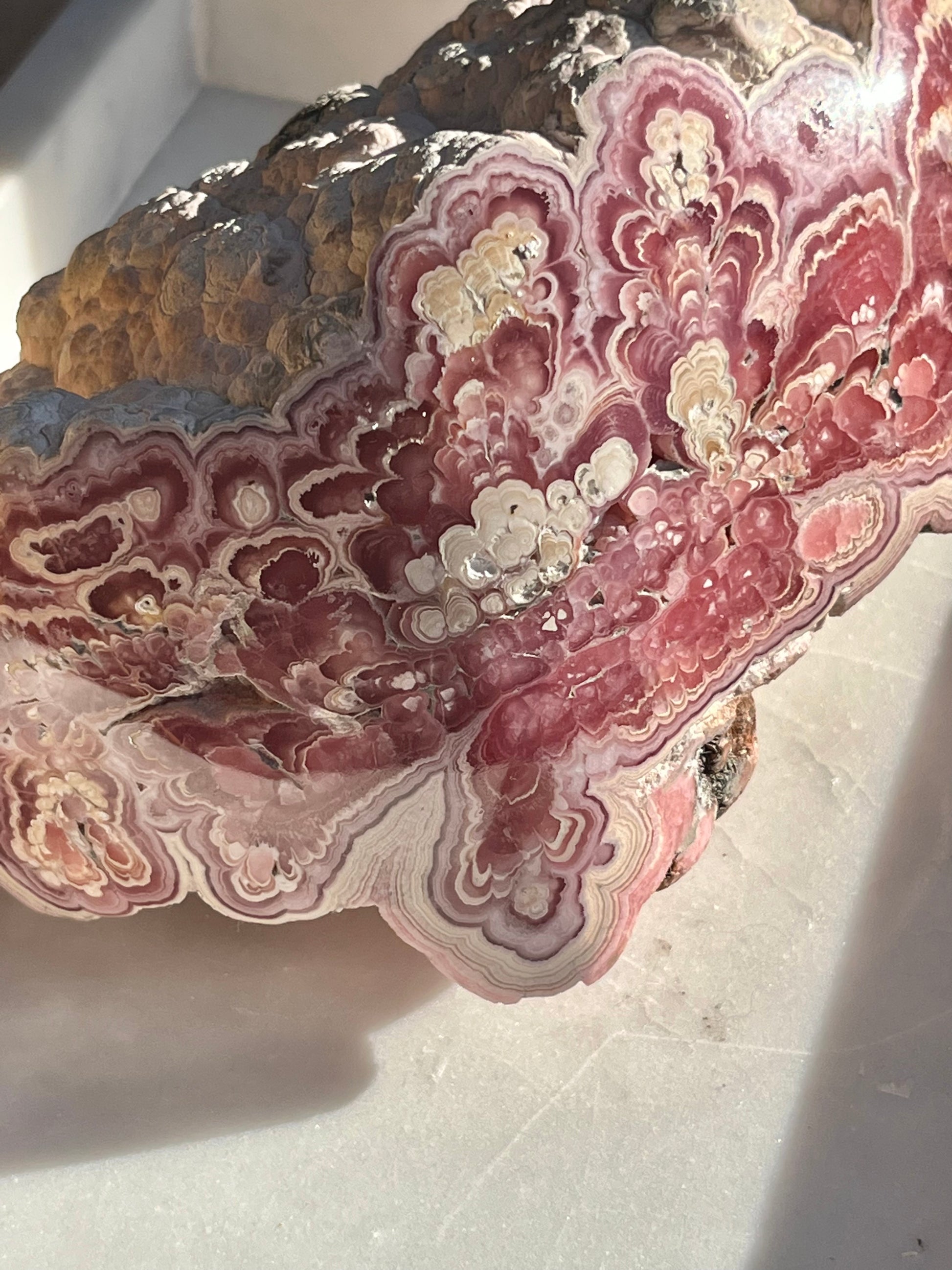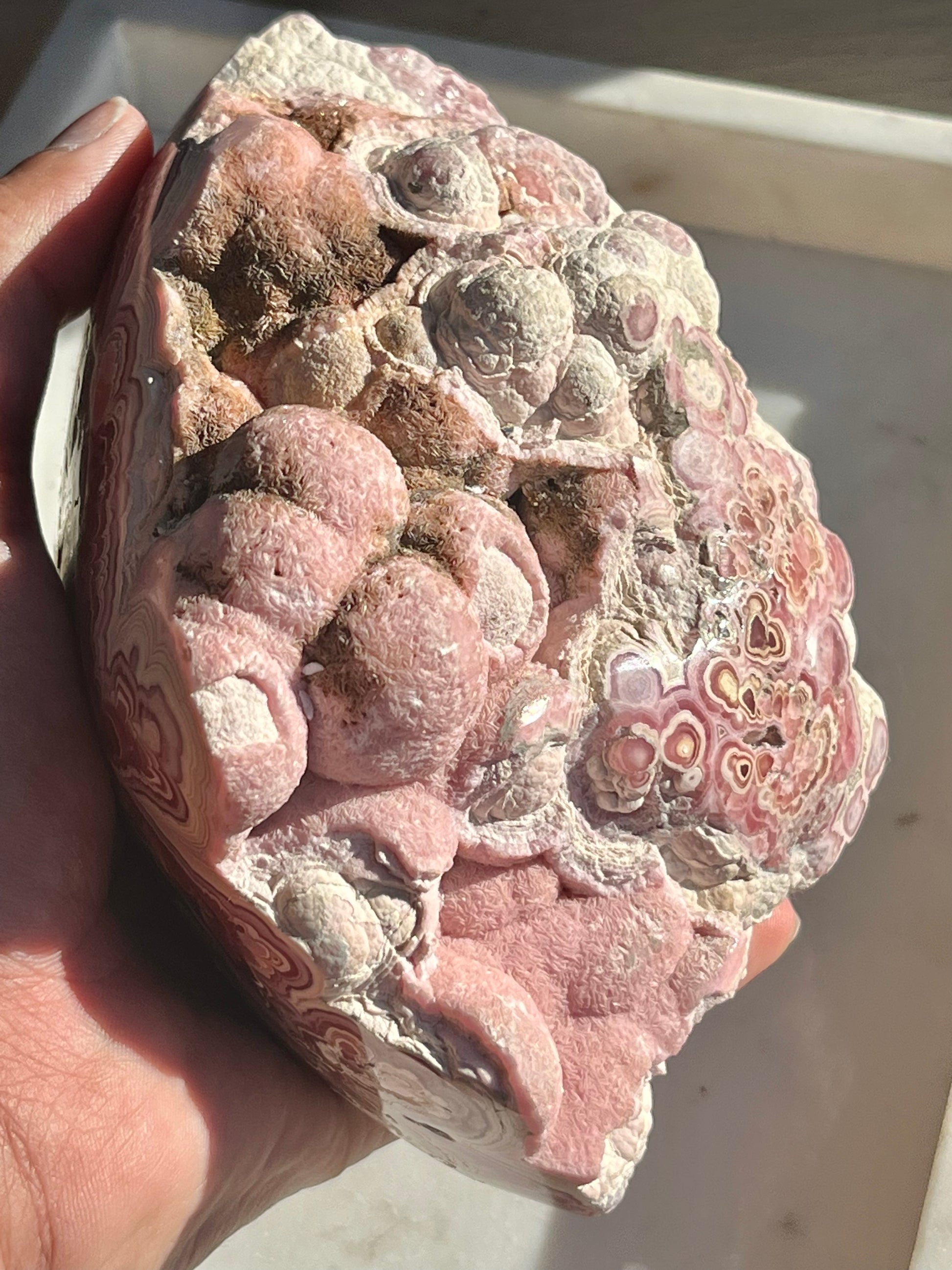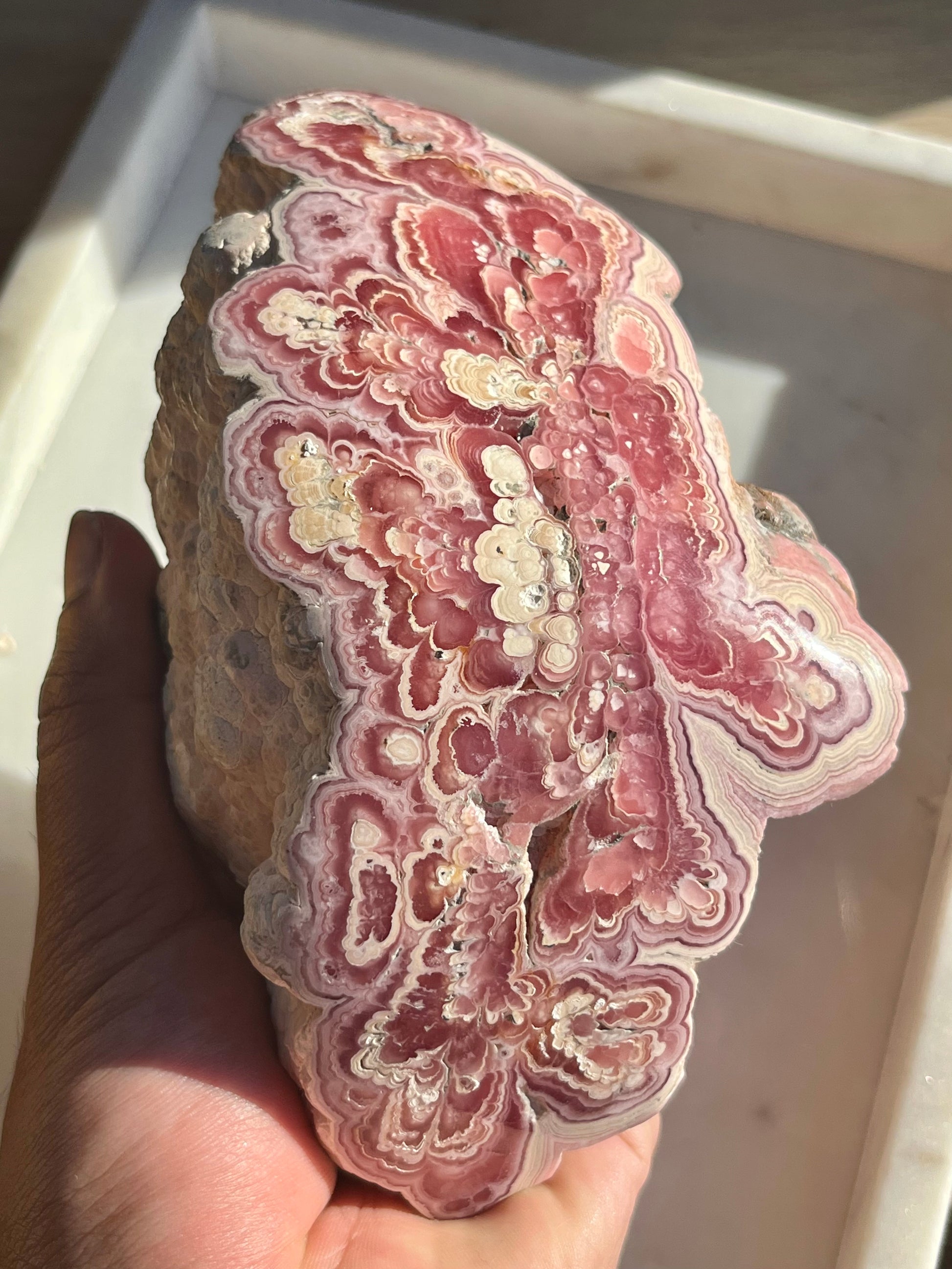 Half Polished Botryoidal Floral Pattern Rhodochrosite Freeform #12