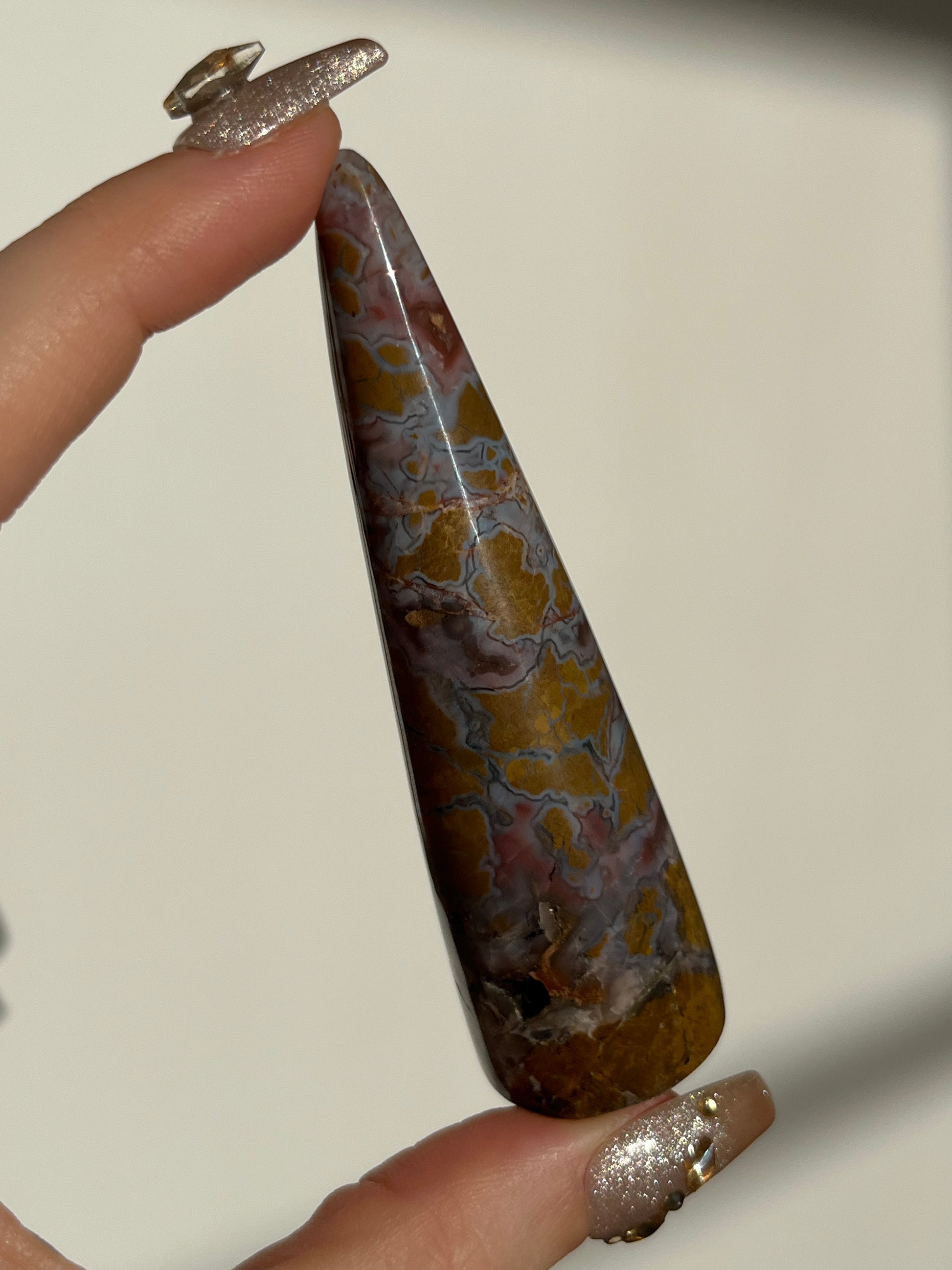 This crystal is known informally among Indonesian locals as Cotton Candy Agate or Canyon Jasper. It is a type of brecciated Jasper in chalcedony that originates from South East Indonesia.