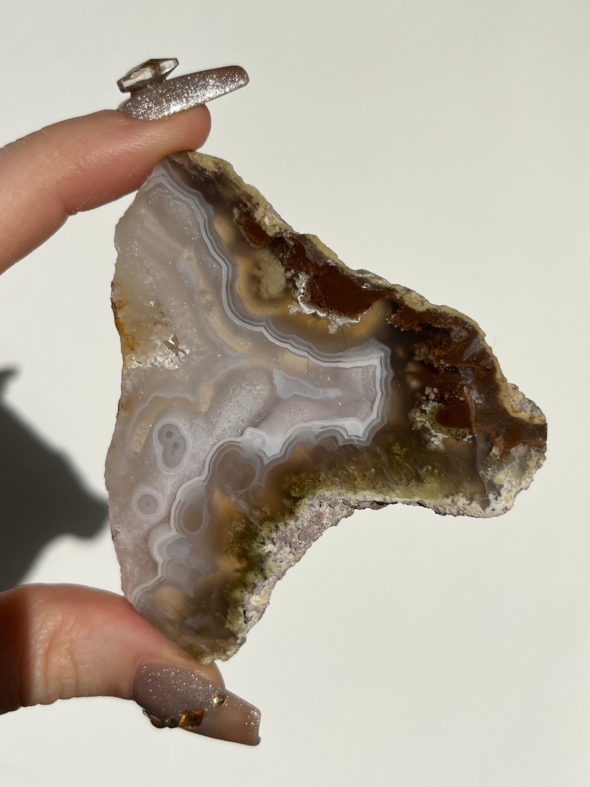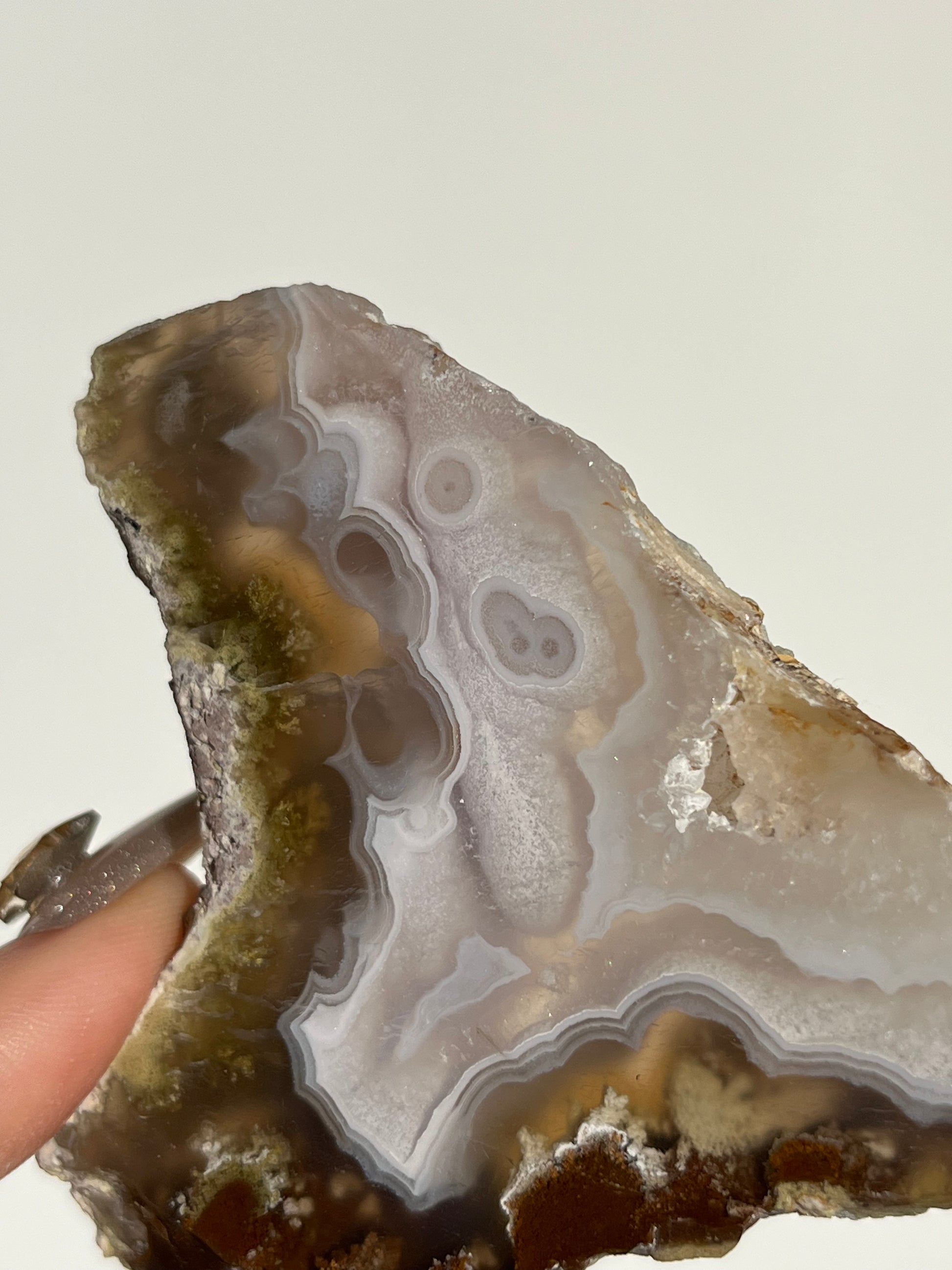 Nebula Agate is a new find from Indonesia first named by the founders of Priestess Crystals. With enchanting orbicular agate rings that pierce through a translucent chalcedony. Depending on how the stone is carved, multicoloured moss & dendritic inclusions can be present.