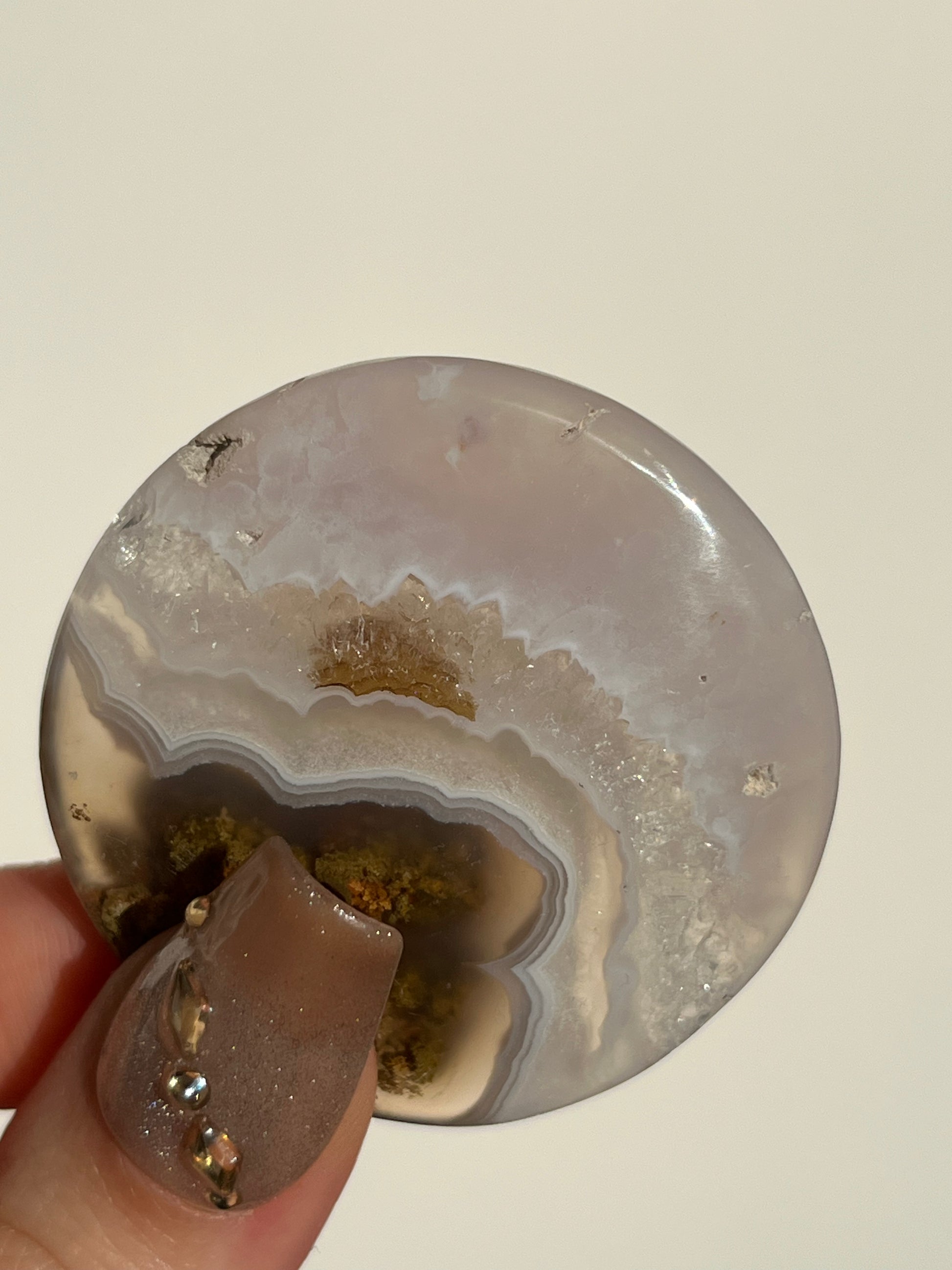Nebula Agate is a recent find from Indonesia first named by the founders of Priestess Crystals. With enchanting multicoloured moss and orbicular agate rings that pierce through a translucent chalcedony.