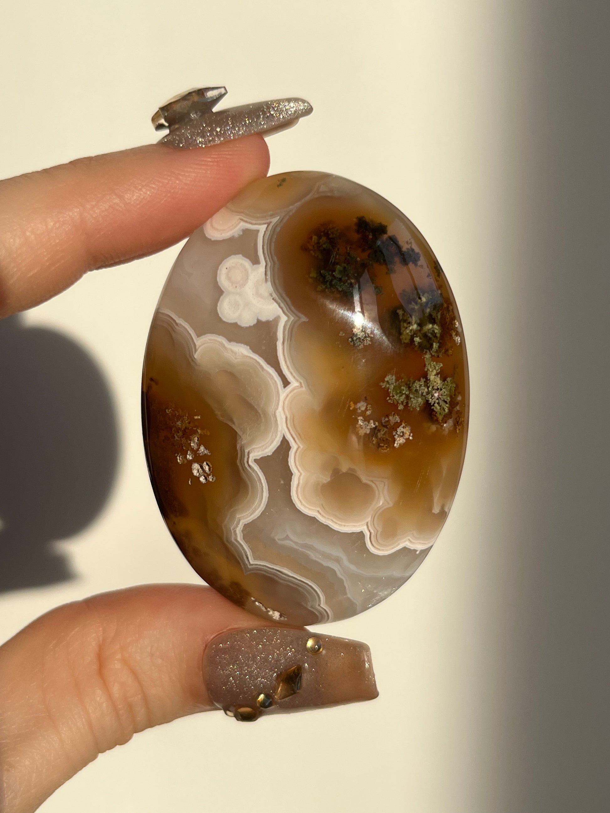 Nebula Agate and Multicoloured Scenic Moss Palmstone H