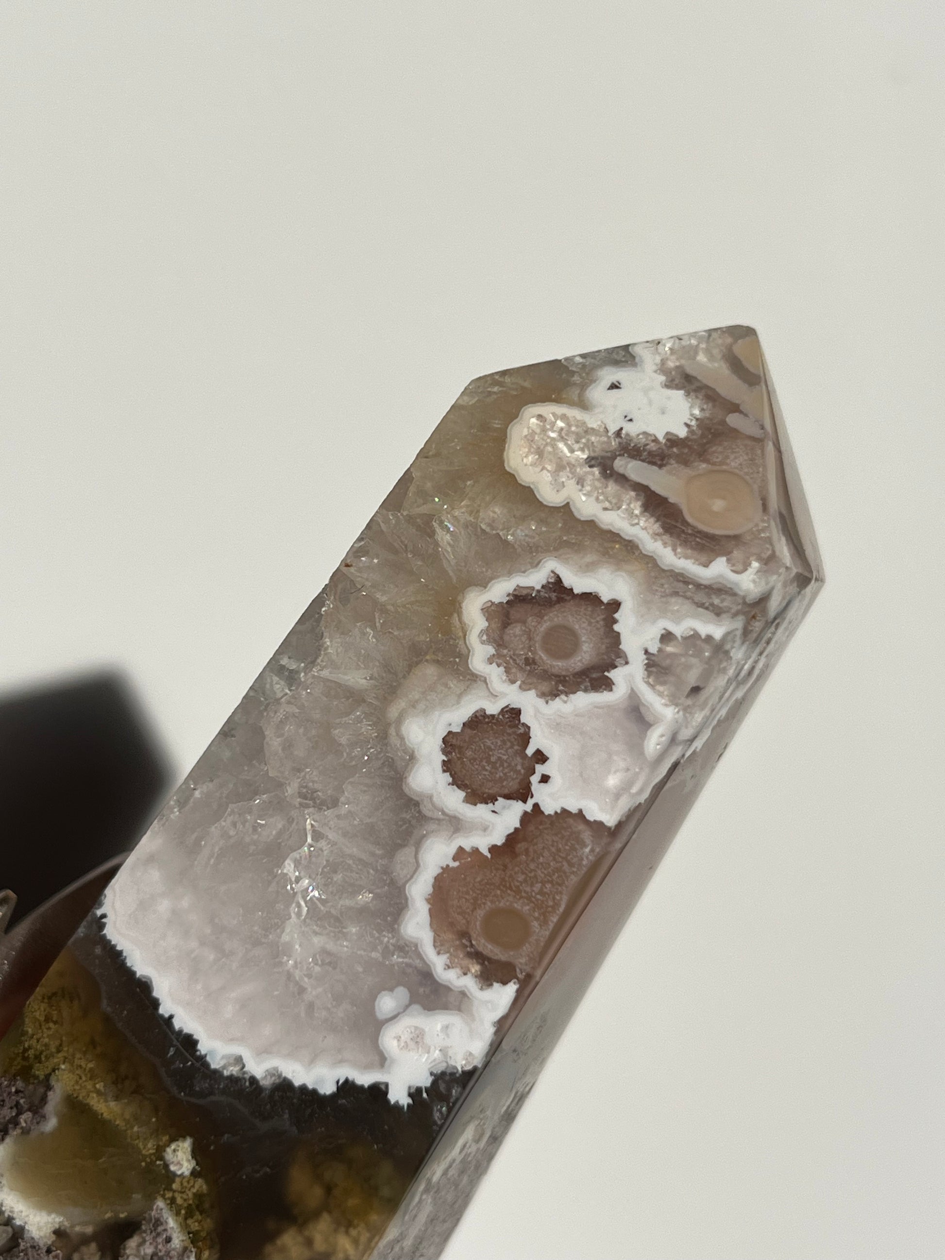 Nebula Agate is a recent find from Indonesia first named by the founders of Priestess Crystals. With enchanting multicoloured moss and orbicular agate rings that pierce through translucent chalcedony.