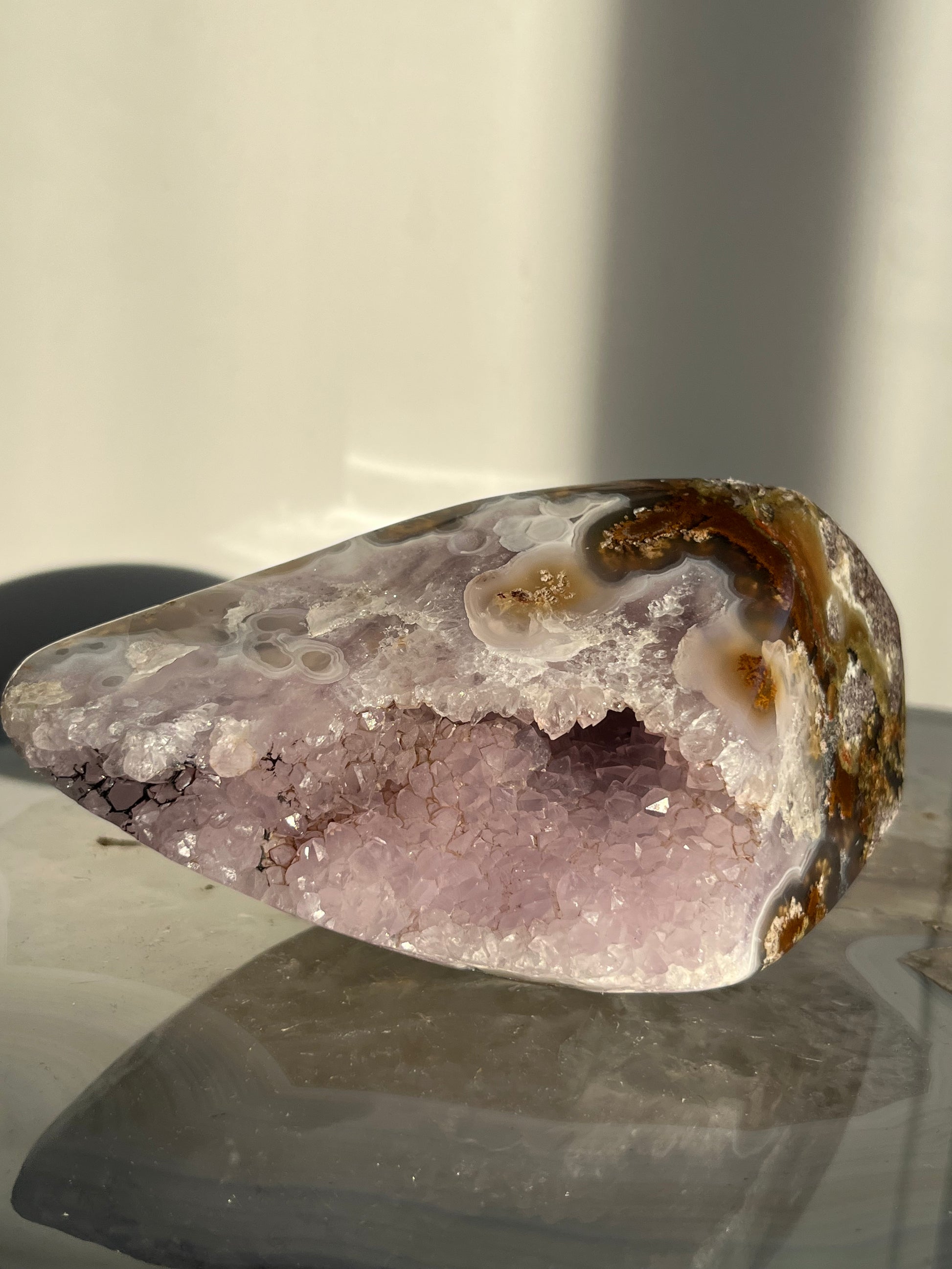 Nebula Agate introduces calm into your energetic field. In this calm state, you can self introspect in order to find out what it is that you really desire. With a regulated nervous system, you open yourself up to new possibilities and feel safe to explore your heart’s true passions.