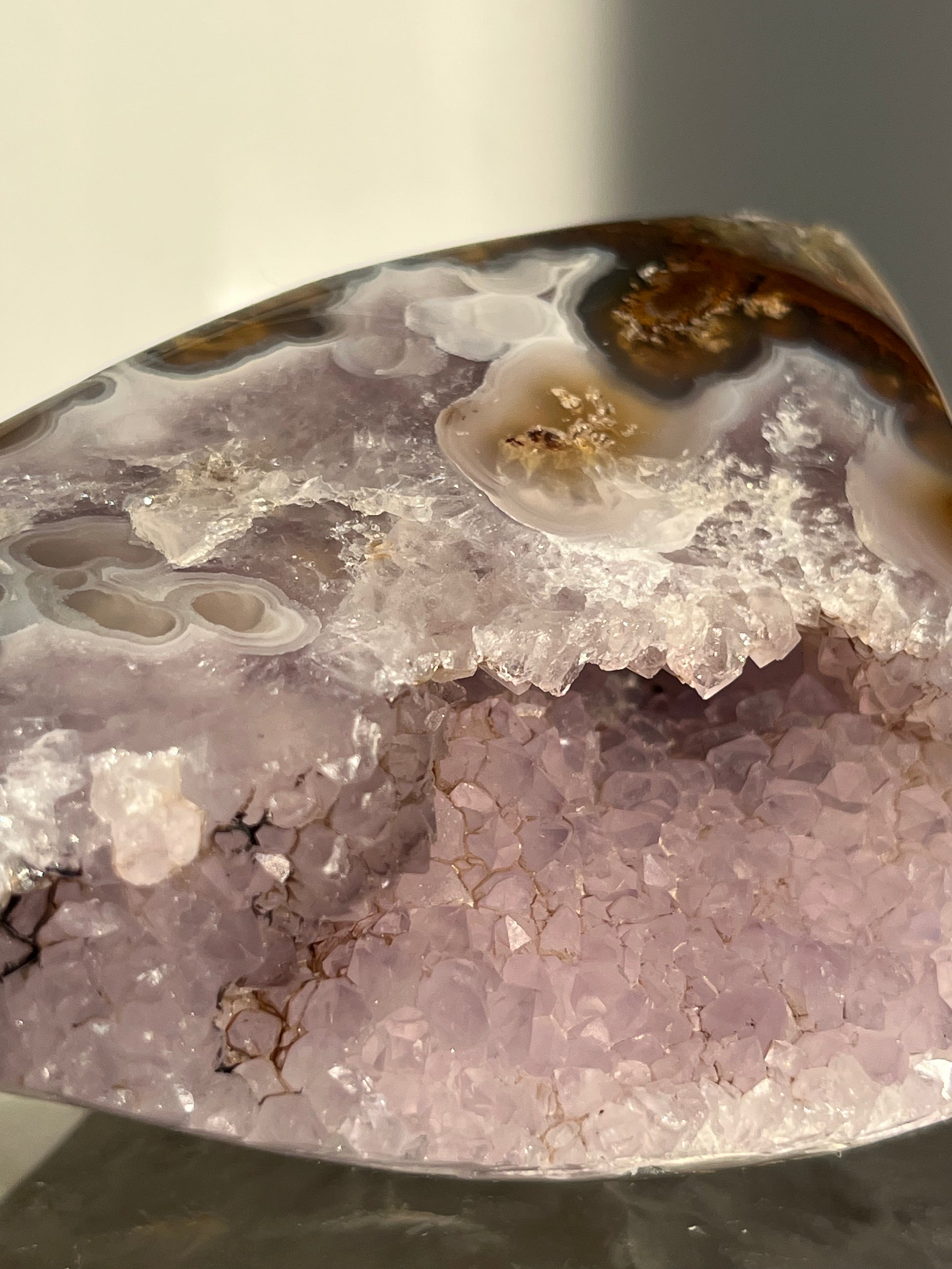 'Nebula Sanctuary' Nebula Agate and Multicoloured Scenic Moss with Amethyst Freeform with Dendritic Inclusions B