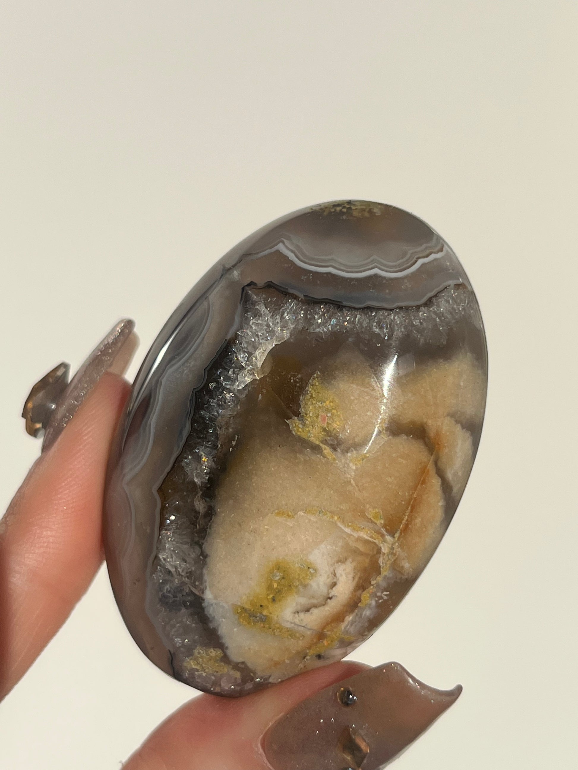 Nebula Agate introduces calm into your energetic field. In this calm state, you can self introspect in order to find out what it is that you really desire. With a regulated nervous system, you open yourself up to new possibilities and feel safe to explore your heart’s true passions.