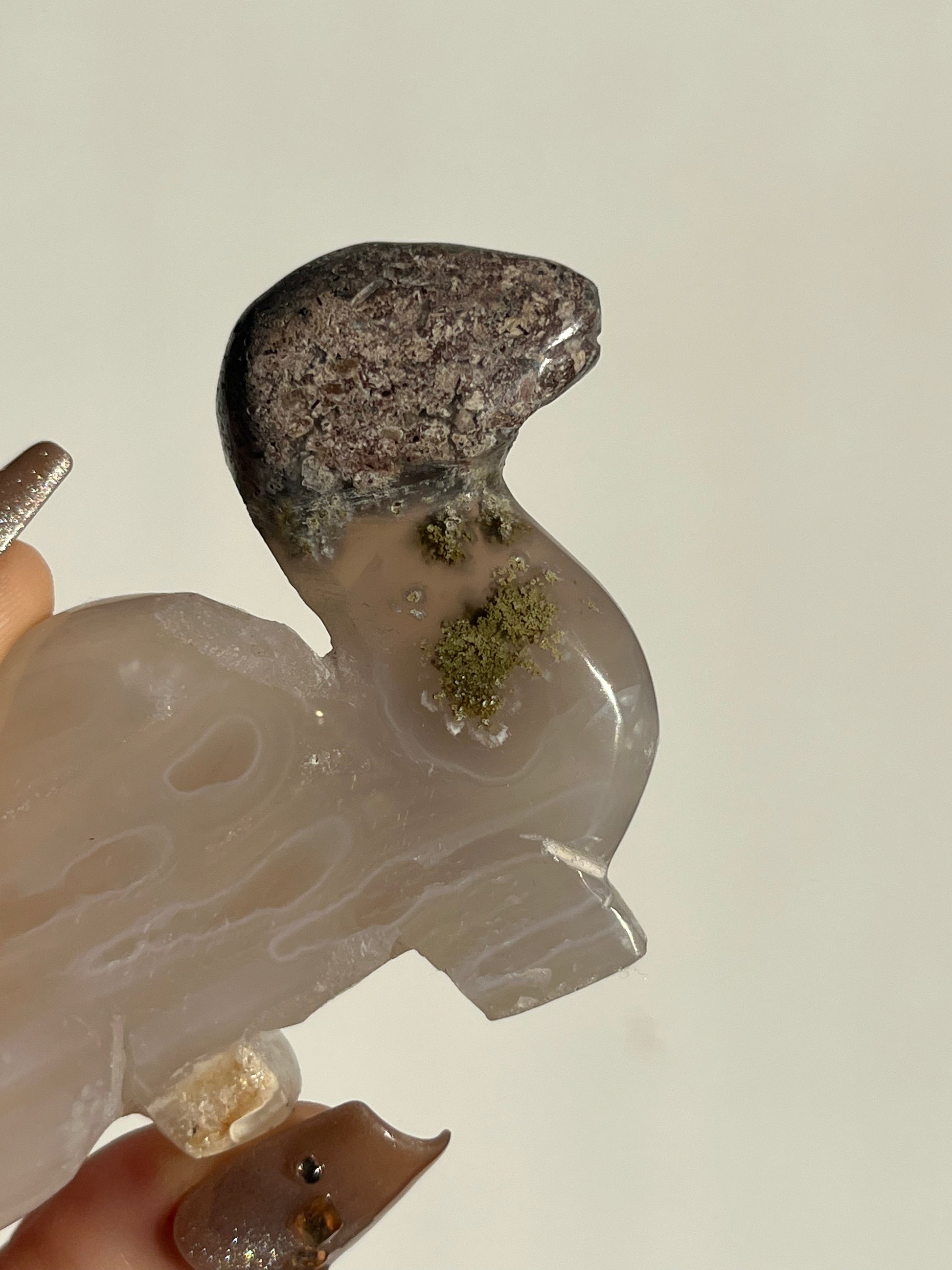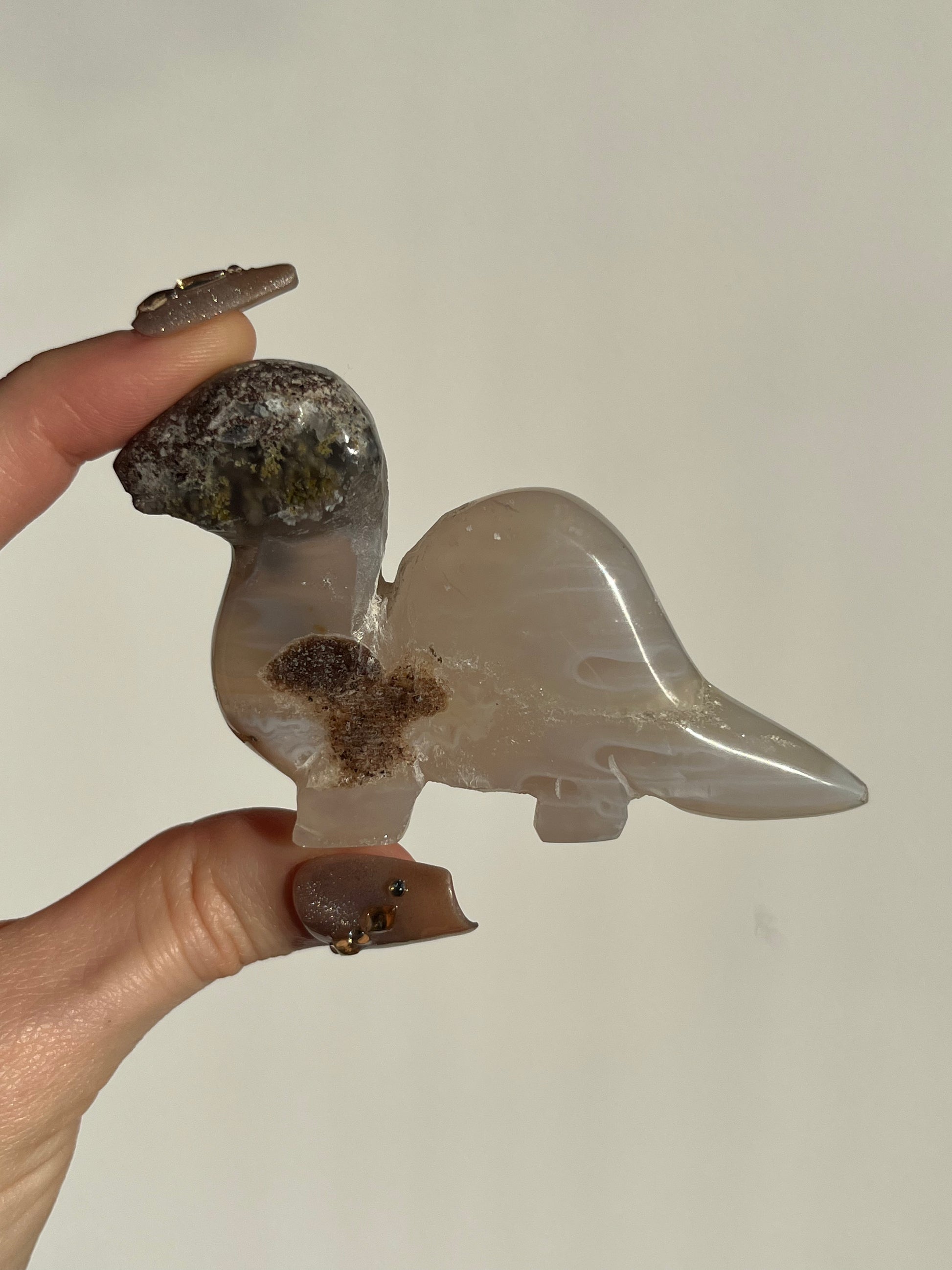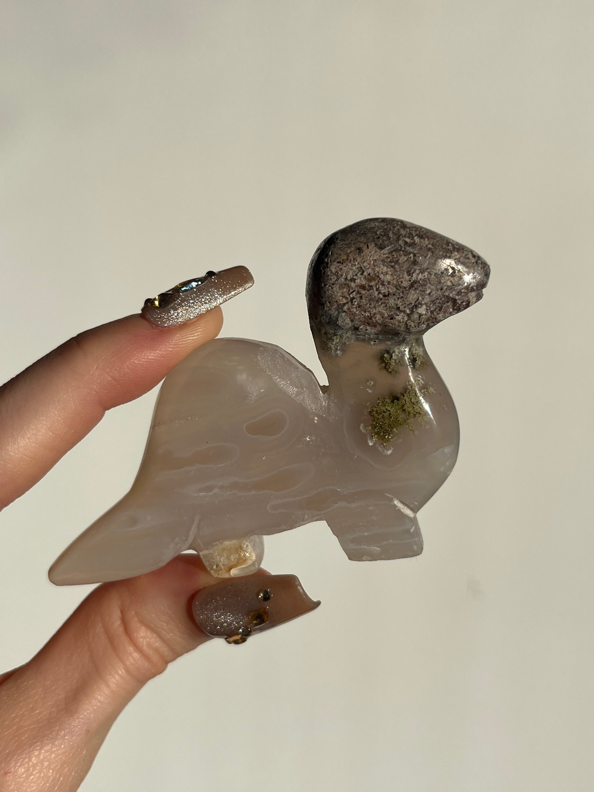 ‘Littlefoot’ Nebula Agate with Scenic Moss Dinosaur Carving A