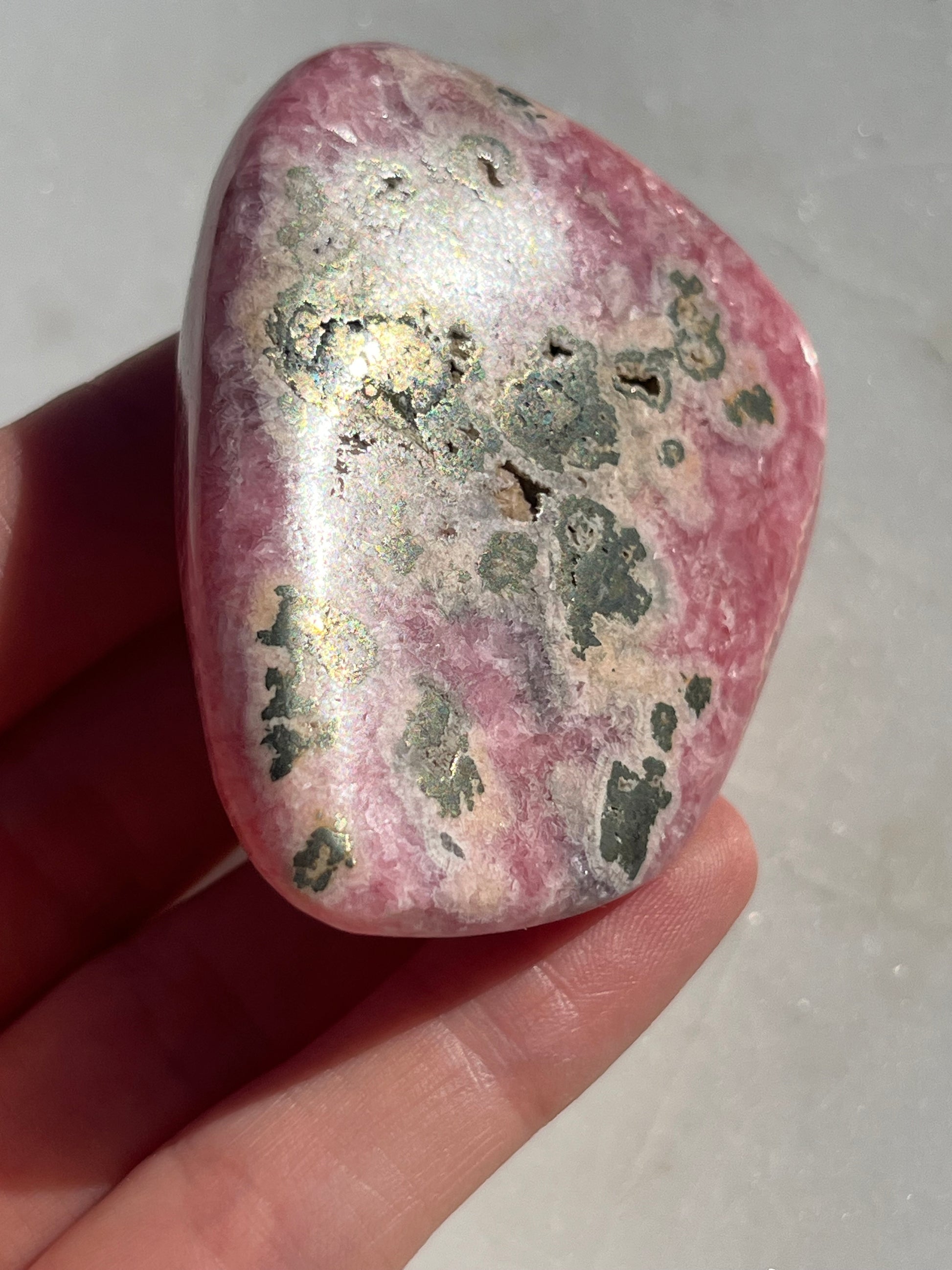 ‘Ixora’ Polished Rhodochrosite Freeform w/Pyrite #6