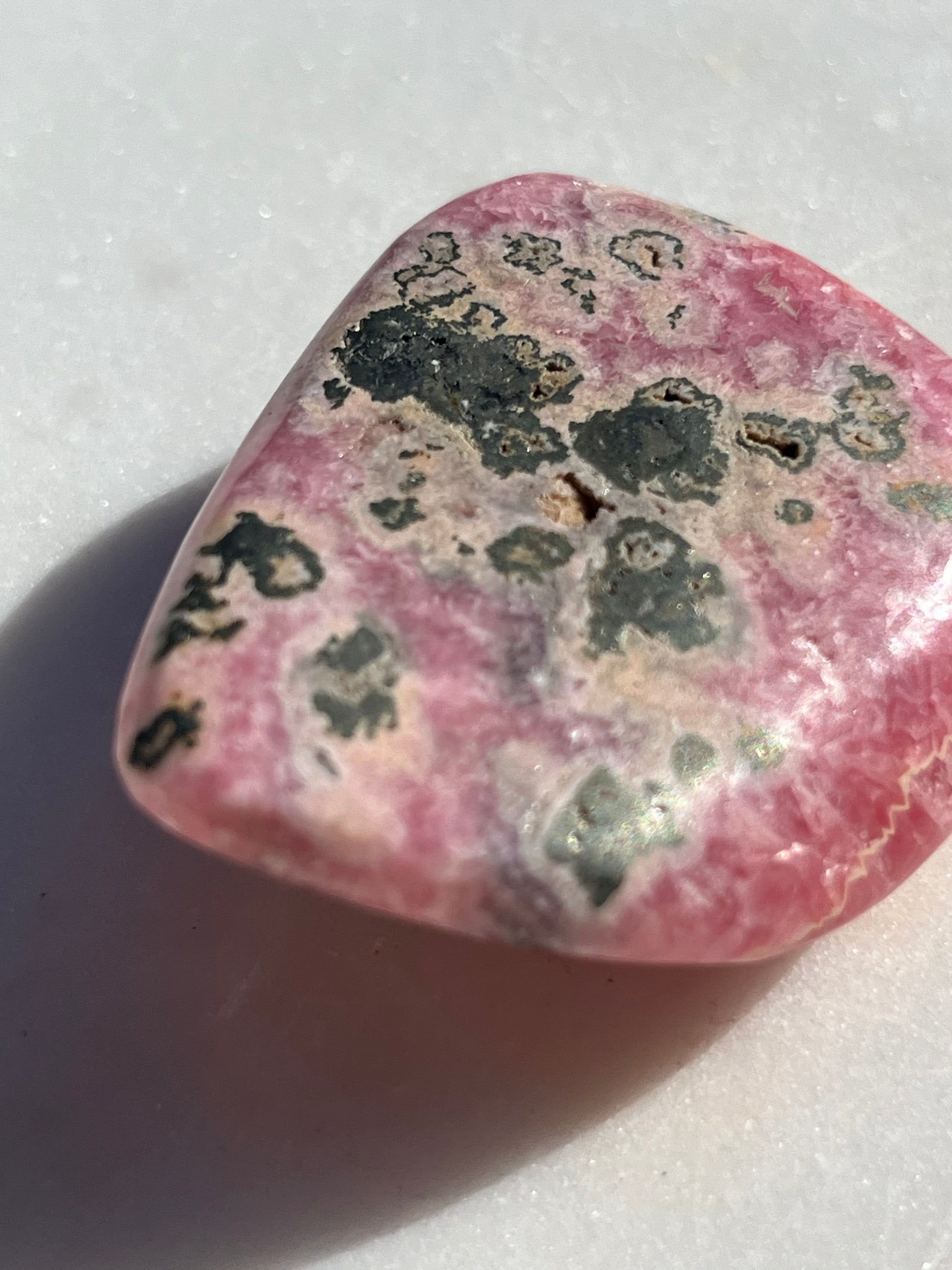 A stone of compassion, inner truth & transformation, Rhodochrosite has the ability to create space for your inner child healing & prosperity.
