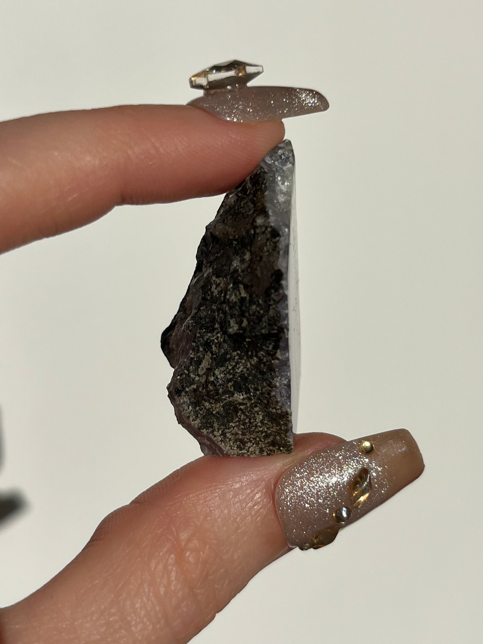 This rare crystal blends calm intuition with grounded renewal. Purple chalcedony soothes the mind and opens creative flow, while moss inclusions root energy in growth and resilience.
