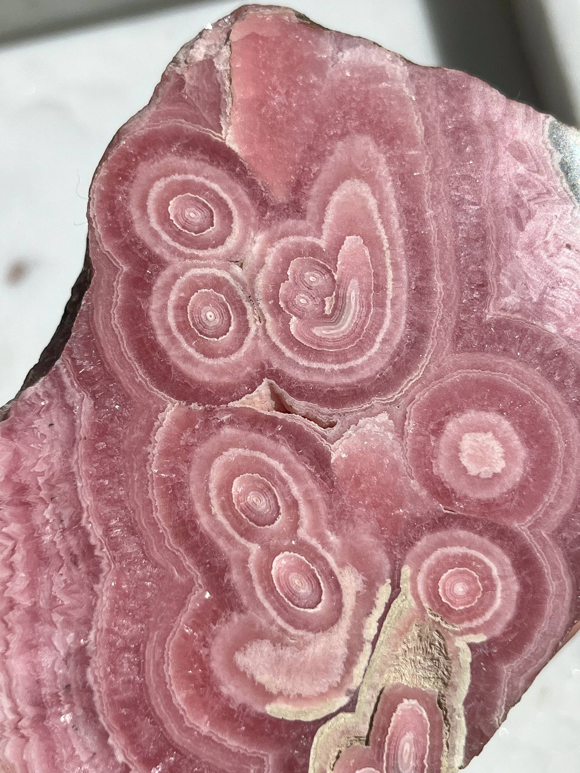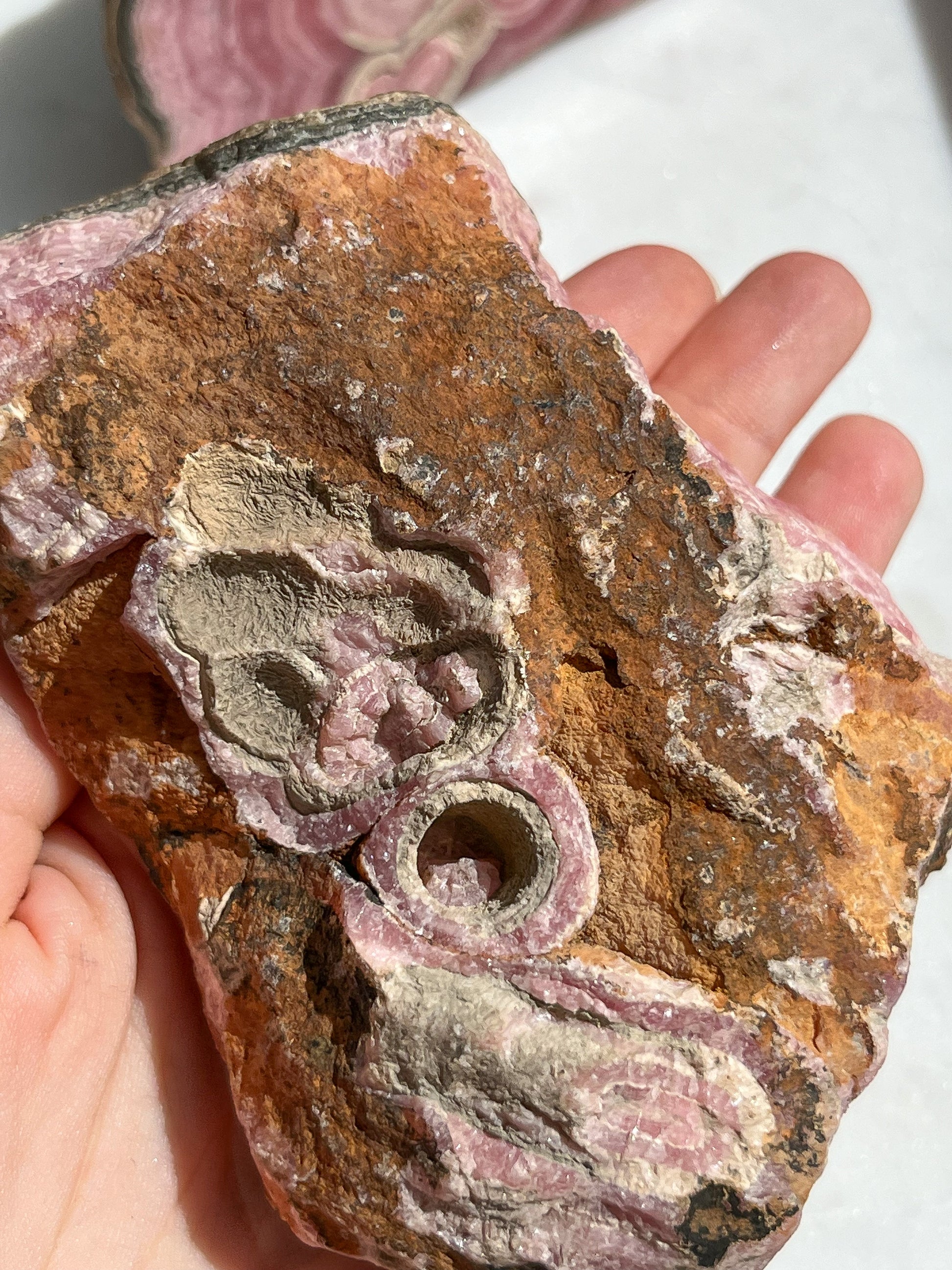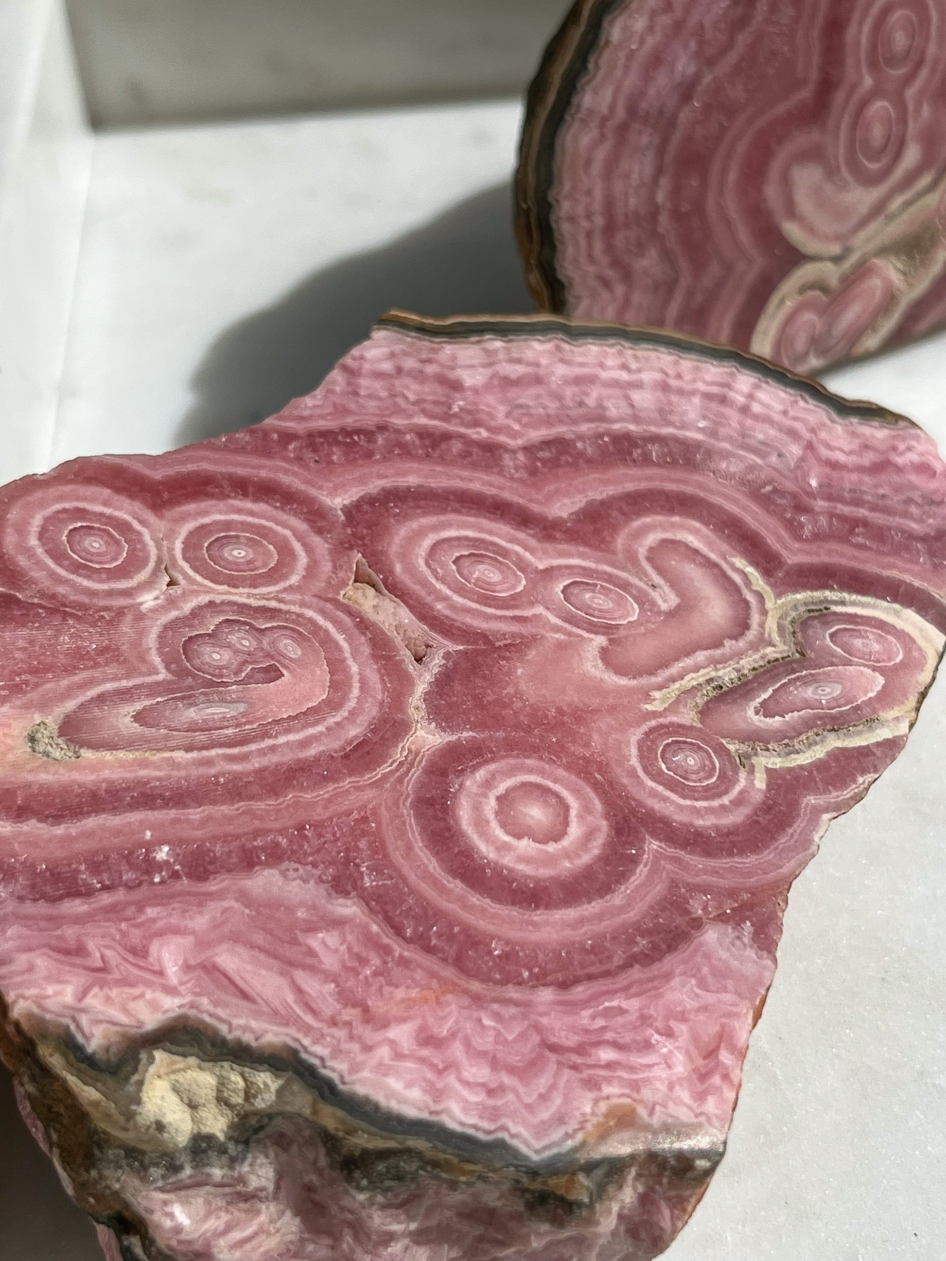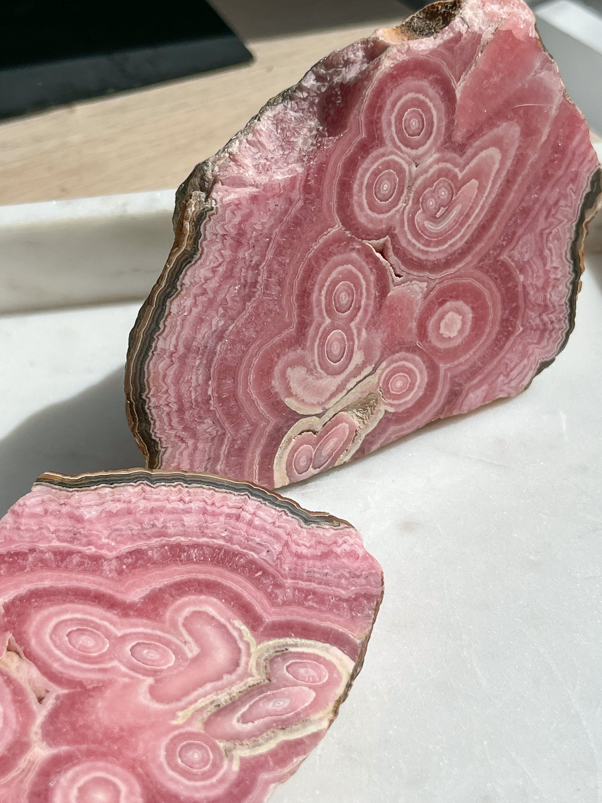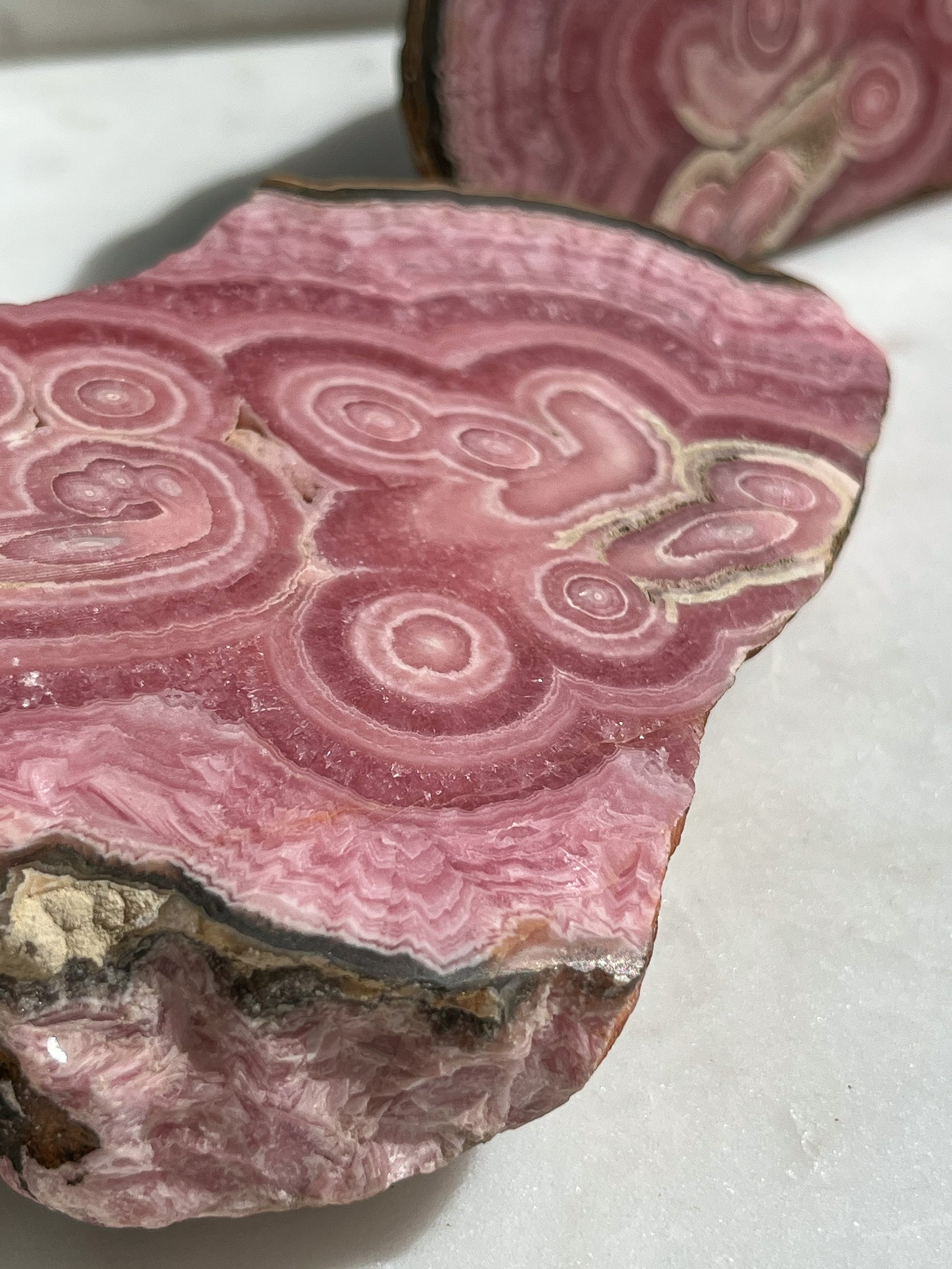 Rare 1980s Rhodochrosite Stalactite Eye Slab Pair