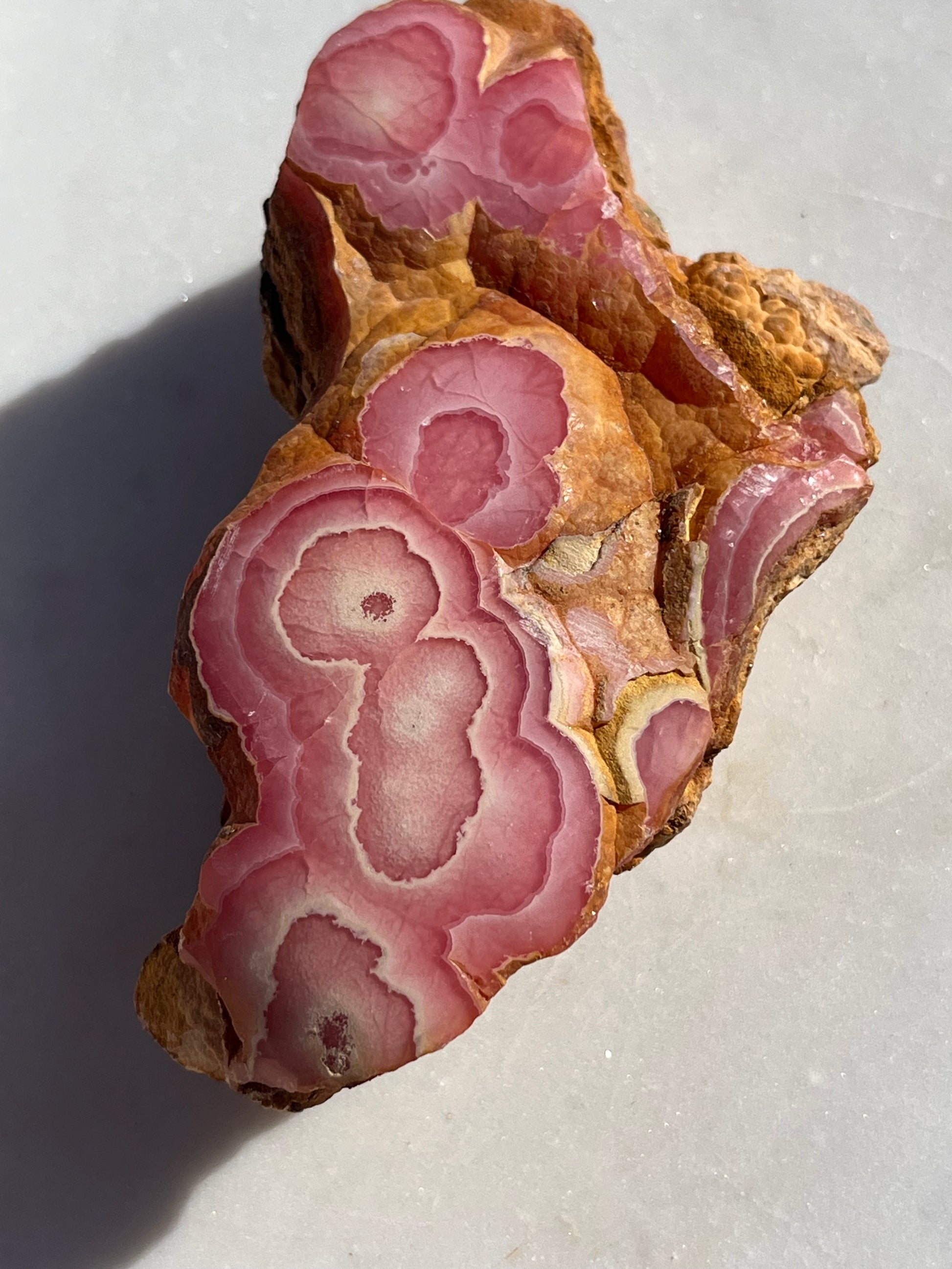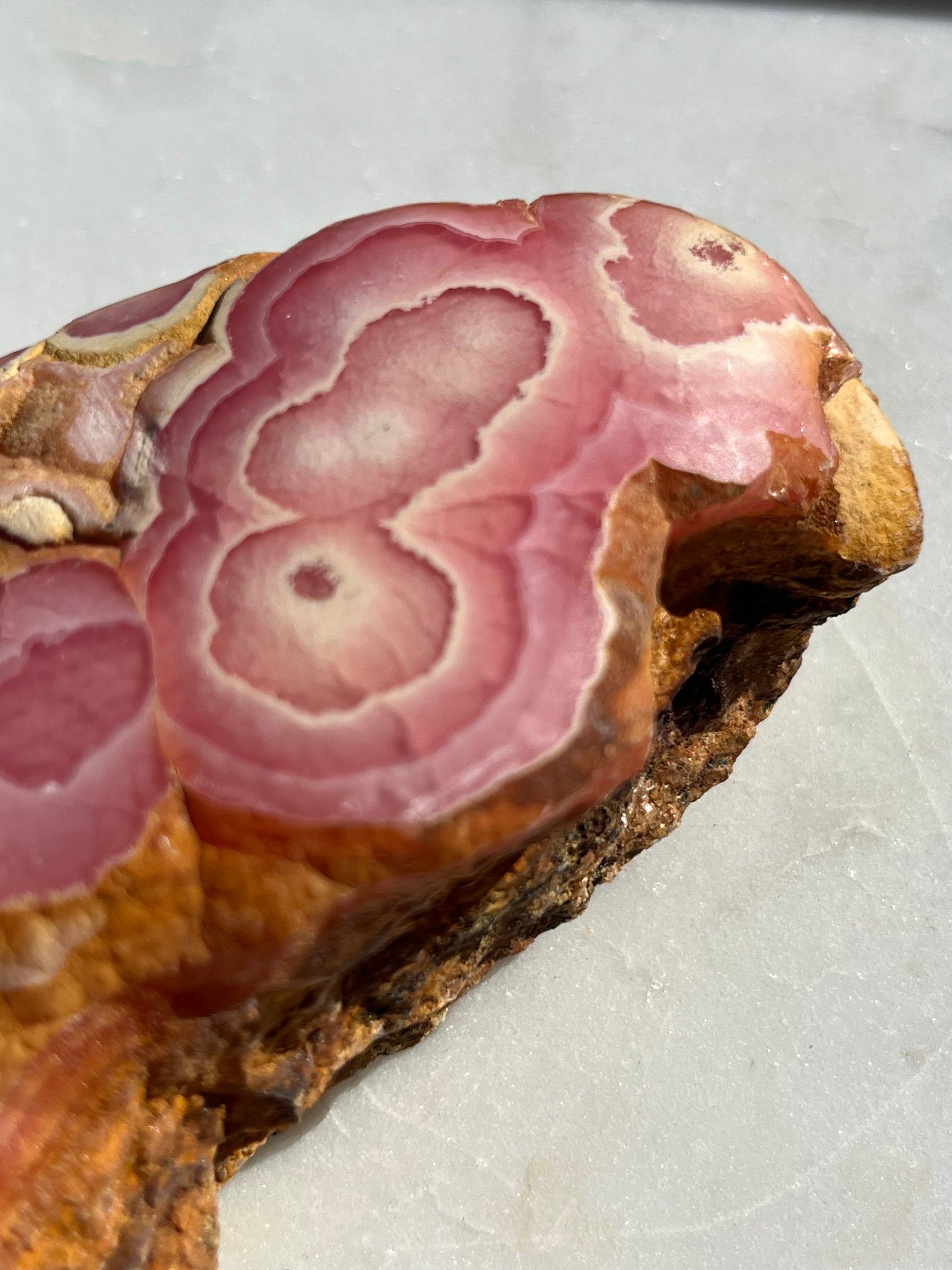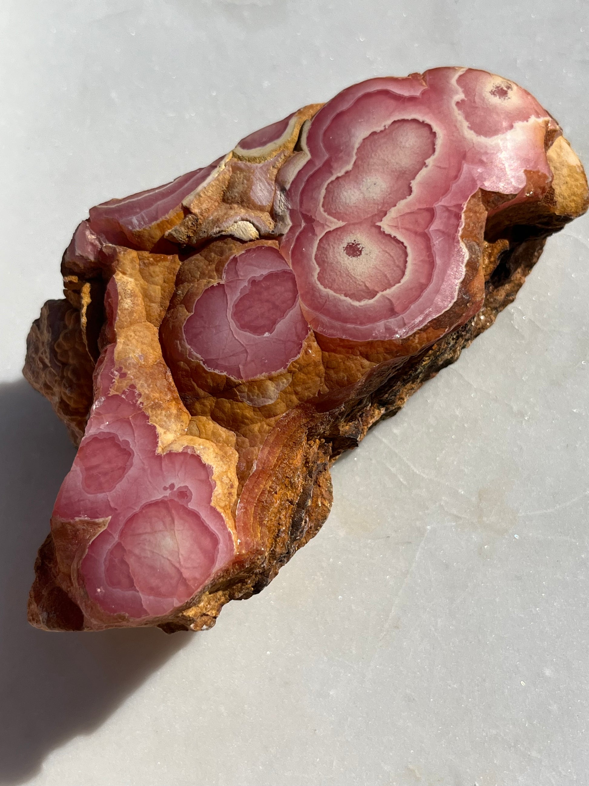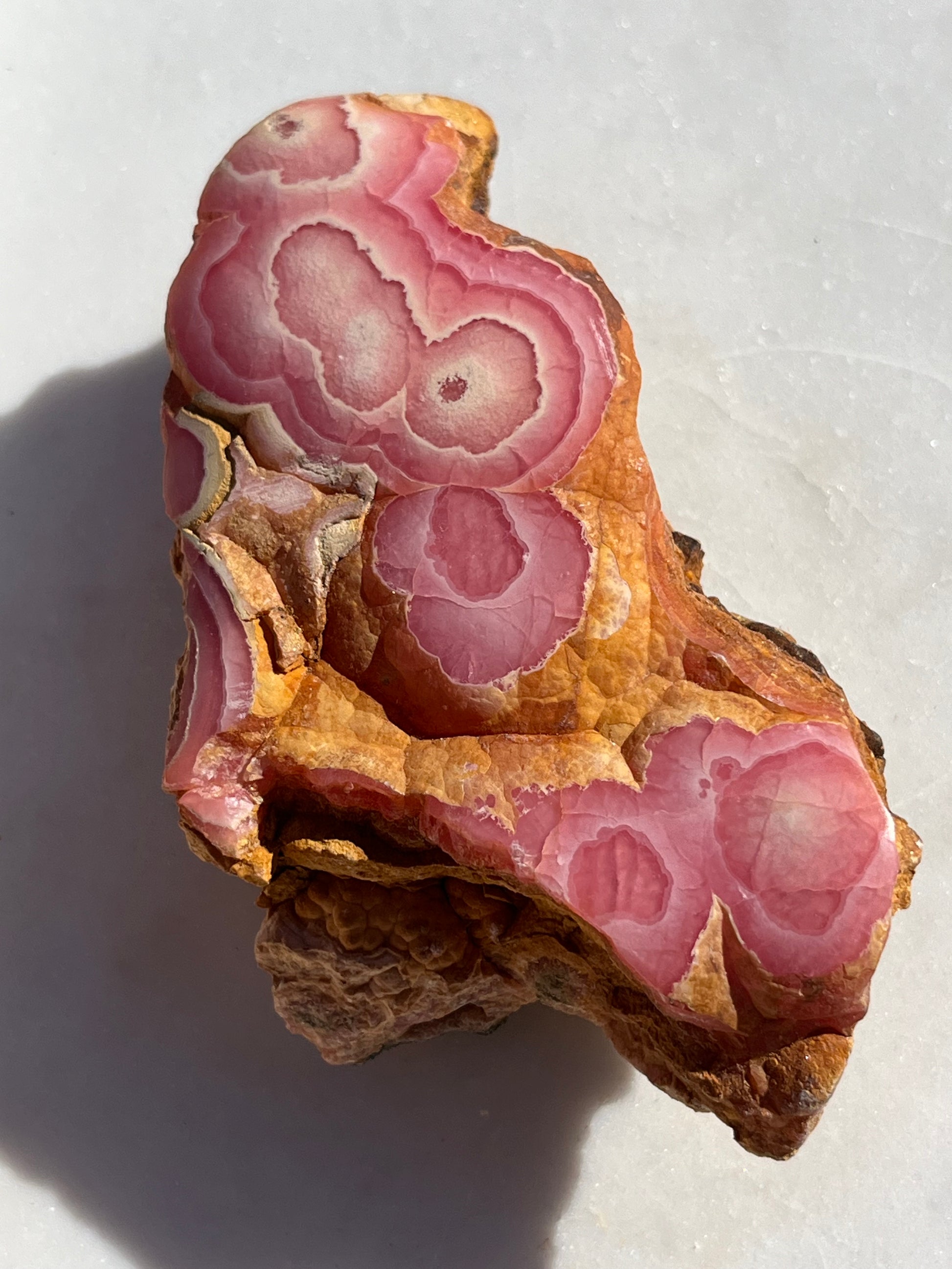 ‘Titania’ Rhodochrosite Freeform with Iron Included Matrix #8