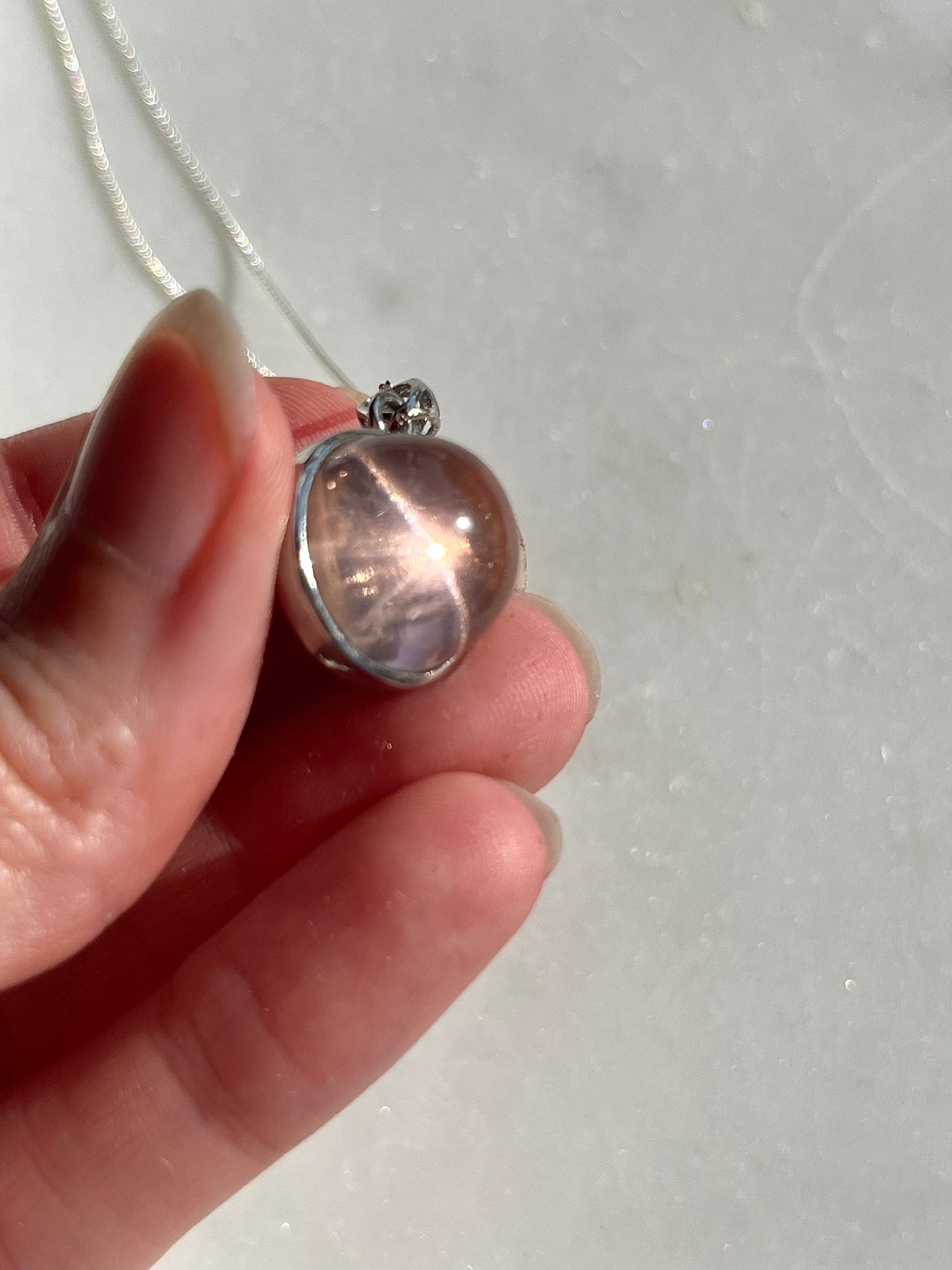 Star Rose Quartz Pendant & Chain (925 Sterling Silver)