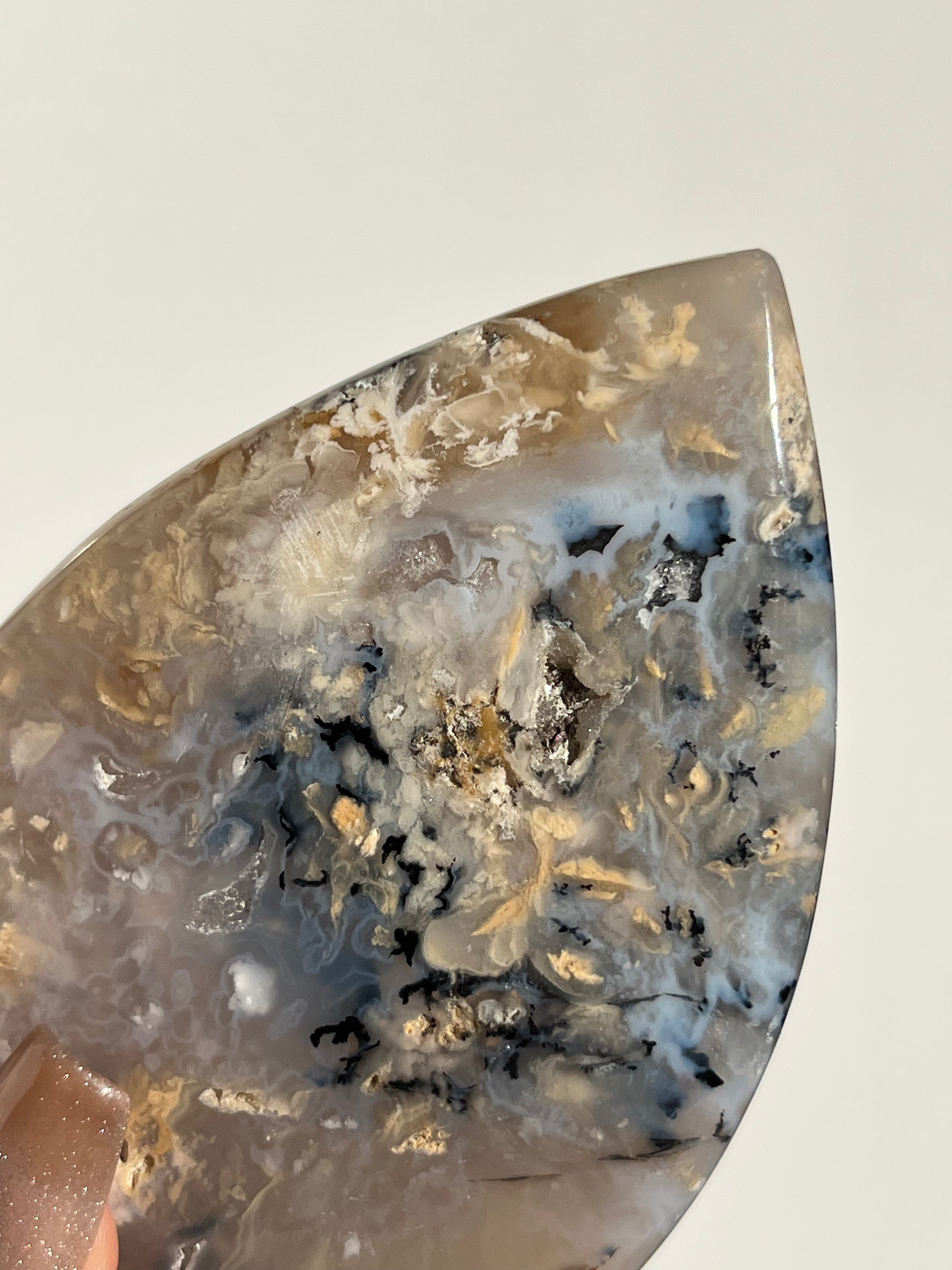 Found in Indonesia, these unique chalcedonies are prized for their warm tones and fern-like inclusions. Miniature landscapes sculpted by nature.