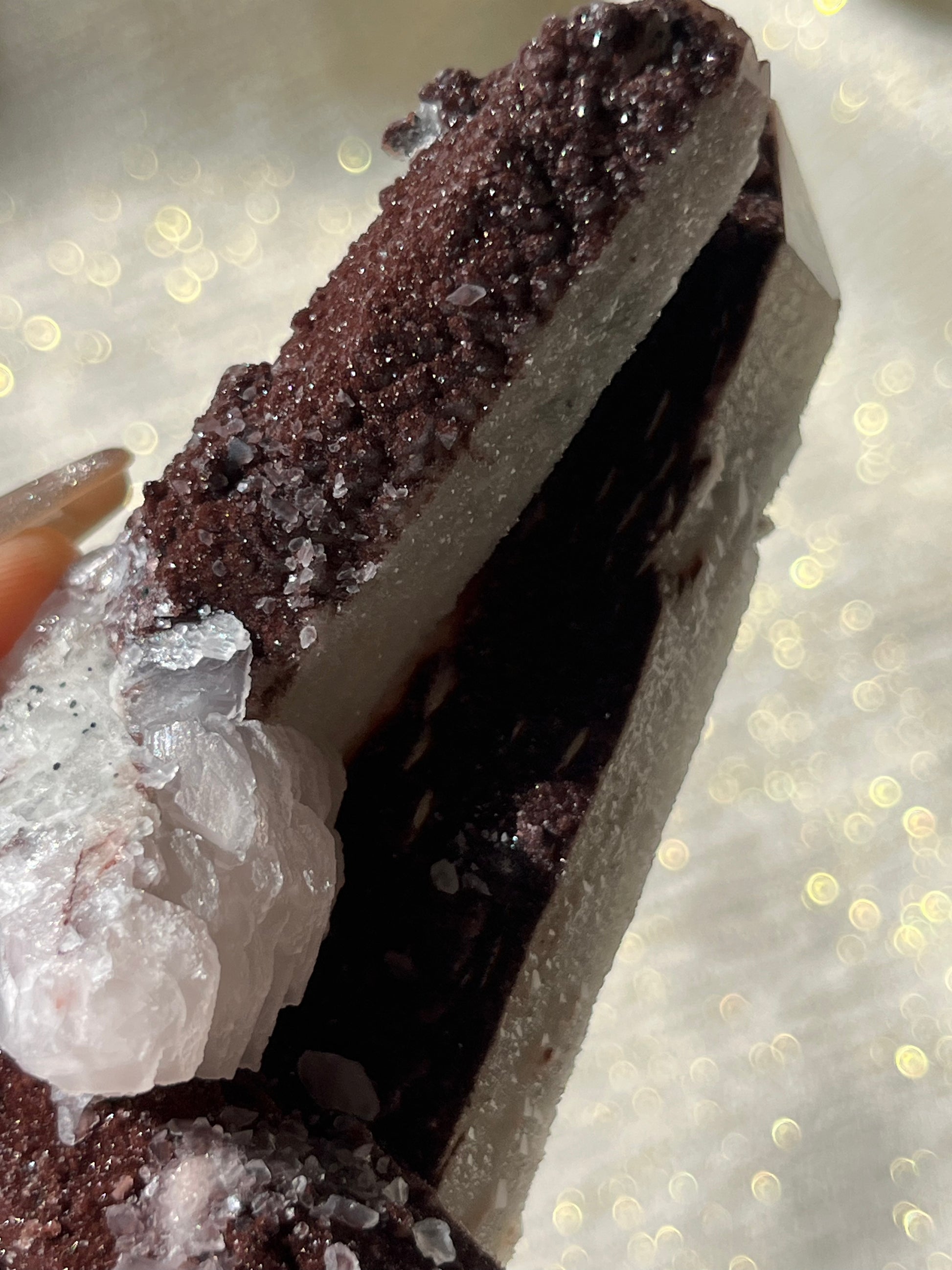 Twilight Plum Quartz with Sakura Blossom Calcite Meaning