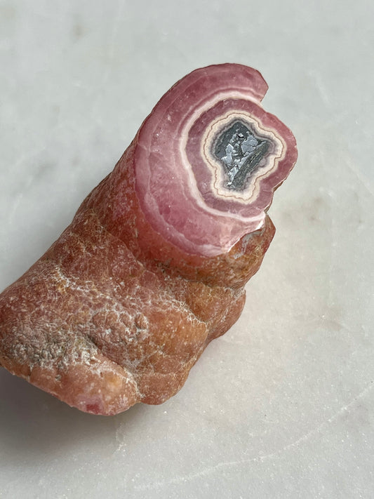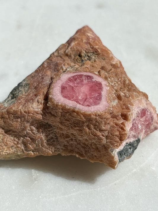 罕见 1980 年代红纹石标本,带氧化锰核心 #48