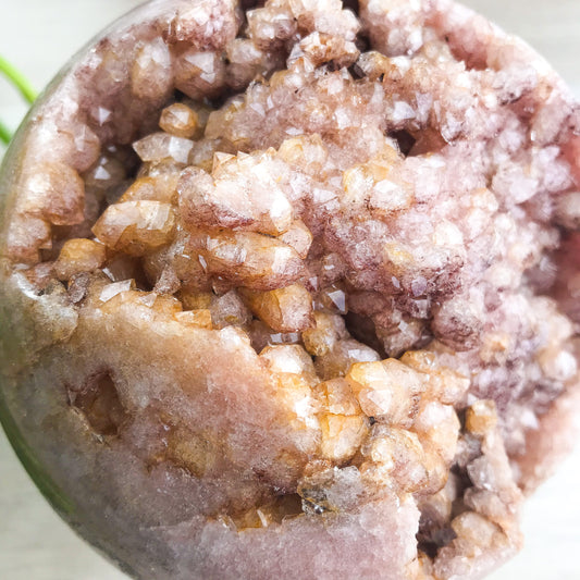 XL 闪亮粉色紫水晶球带淡紫色紫水晶和圆形花朵图案