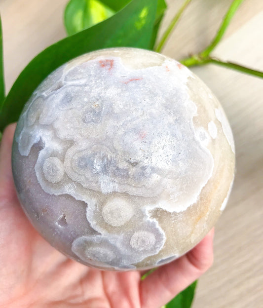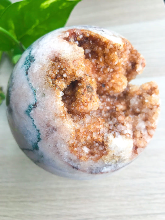 粉色紫水晶闪亮球体配碧玉和类血石英晶洞