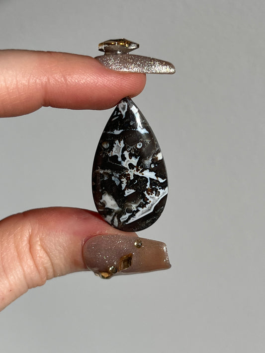 Agatised Black Petrified Wood and Marcasite Cabochon (You Choose)