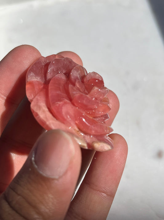 Gemmy Gel Rhodochrosite Rose Carving #2