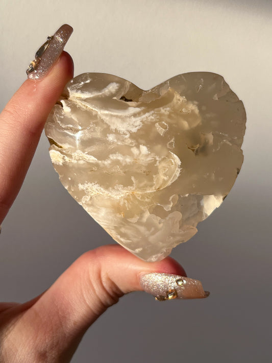 Druzy Flower Agate Heart Carving (You Choose)