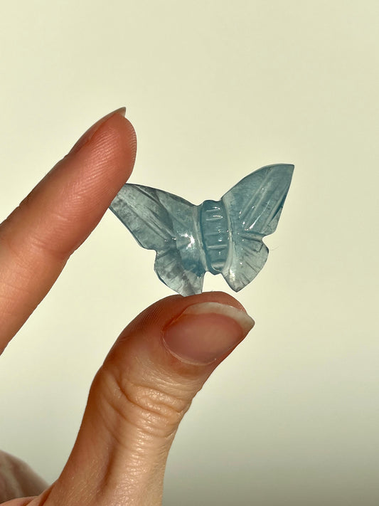 Lemurian Aquatine Calcite Butterfly Carving