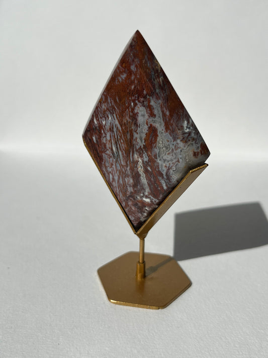 Red Moss Agate Diamond Carving on Stand H