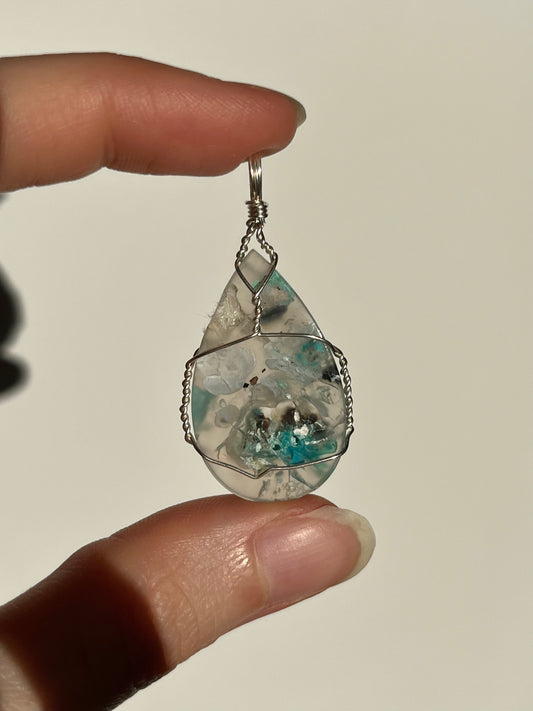 天然铜和硅孔雀石玉髓绕线吊坠(14kt 镀金)#B